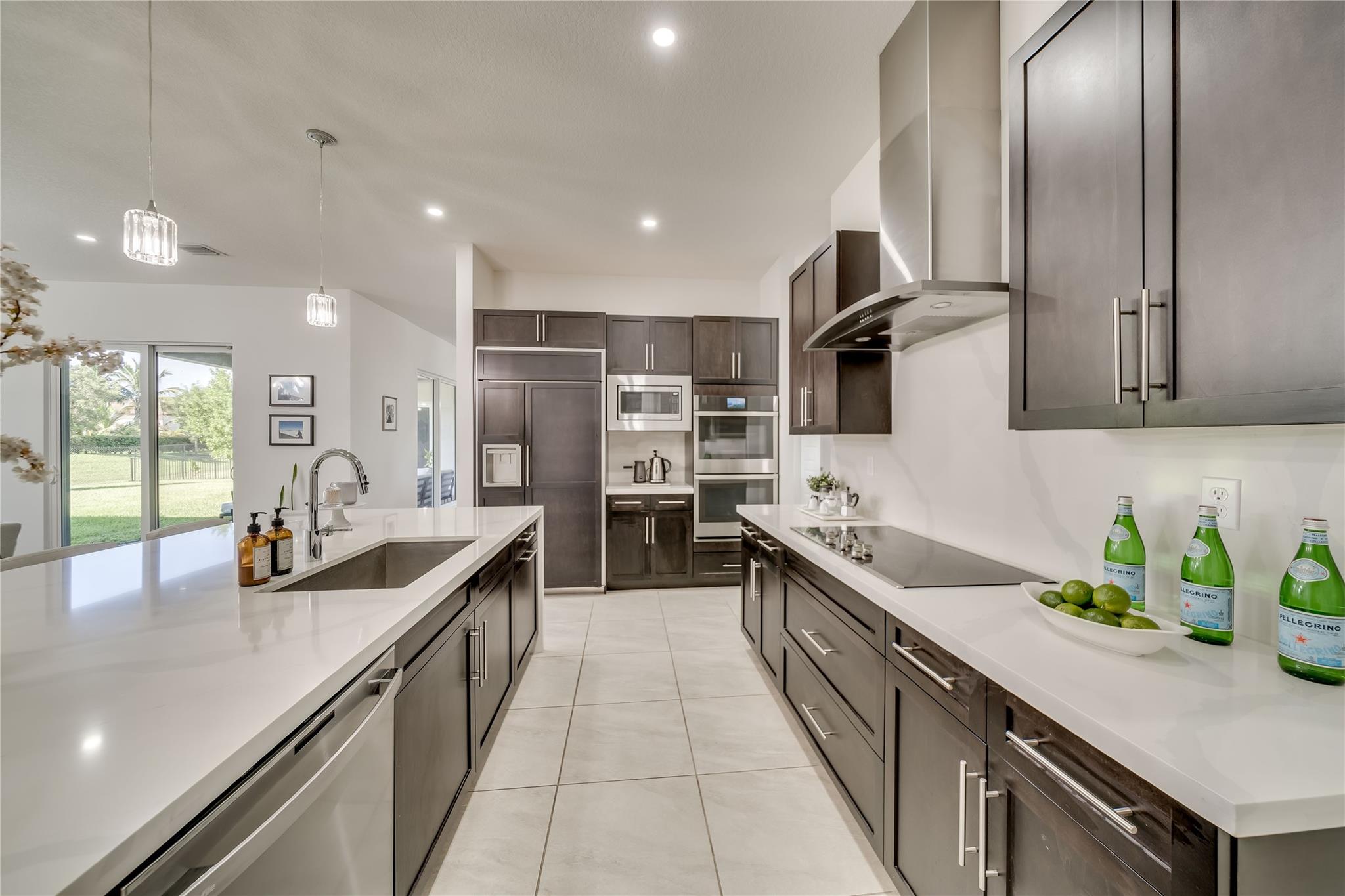Own in one of South Florida's most exclusive developments, Sierra Ranches. Lennar built 79 homes in this exclusive community. You will find a very modern interior design w/ porcelain flooring throughout, upscale finishes & open floor plan with tons of natural light. The kitchen is a chef's dream w/ ample cabinet space, walk in pantry, oversized island, top of the line stainless appliances and quartz. There are 5 bedrooms all with full baths & walk-in closets + a media room & den. The yard space has a covered terrace for entertaining & there is plenty of room for a large pool. The home is situated perfectly on the lot with plenty of space in the front where you will find an oversized driveway with a split 3 car garage. Just bring your toothbrush!
