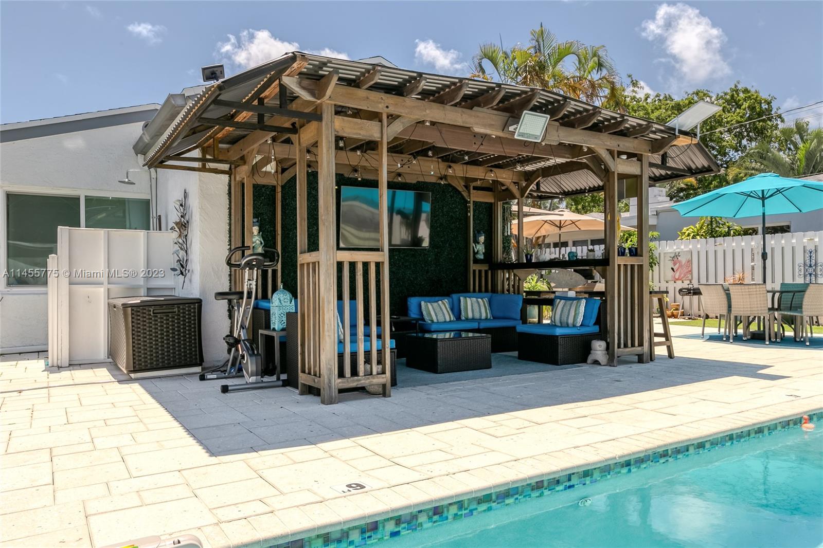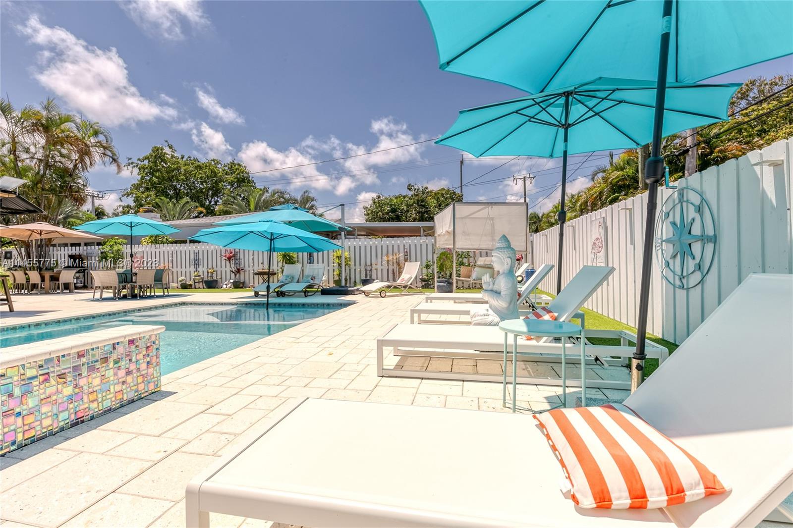 A Piece of Paradise in the heart of East Hollywood. Outside Summer Kitchen w/ Granite Counter, Boutique resort style at its most elegant, Salt Water Heated Pool Jandy/Aqualink; LED Lights, New Pavers throughout, Beautiful Landscaping, Double glass entrance, Hurricane proof Doors/Windows; New Porcelain Tile in Living Areas with New Wood Floors in Bedrooms. Completely Newer 2022 Daikin A/C, SS Appliances.