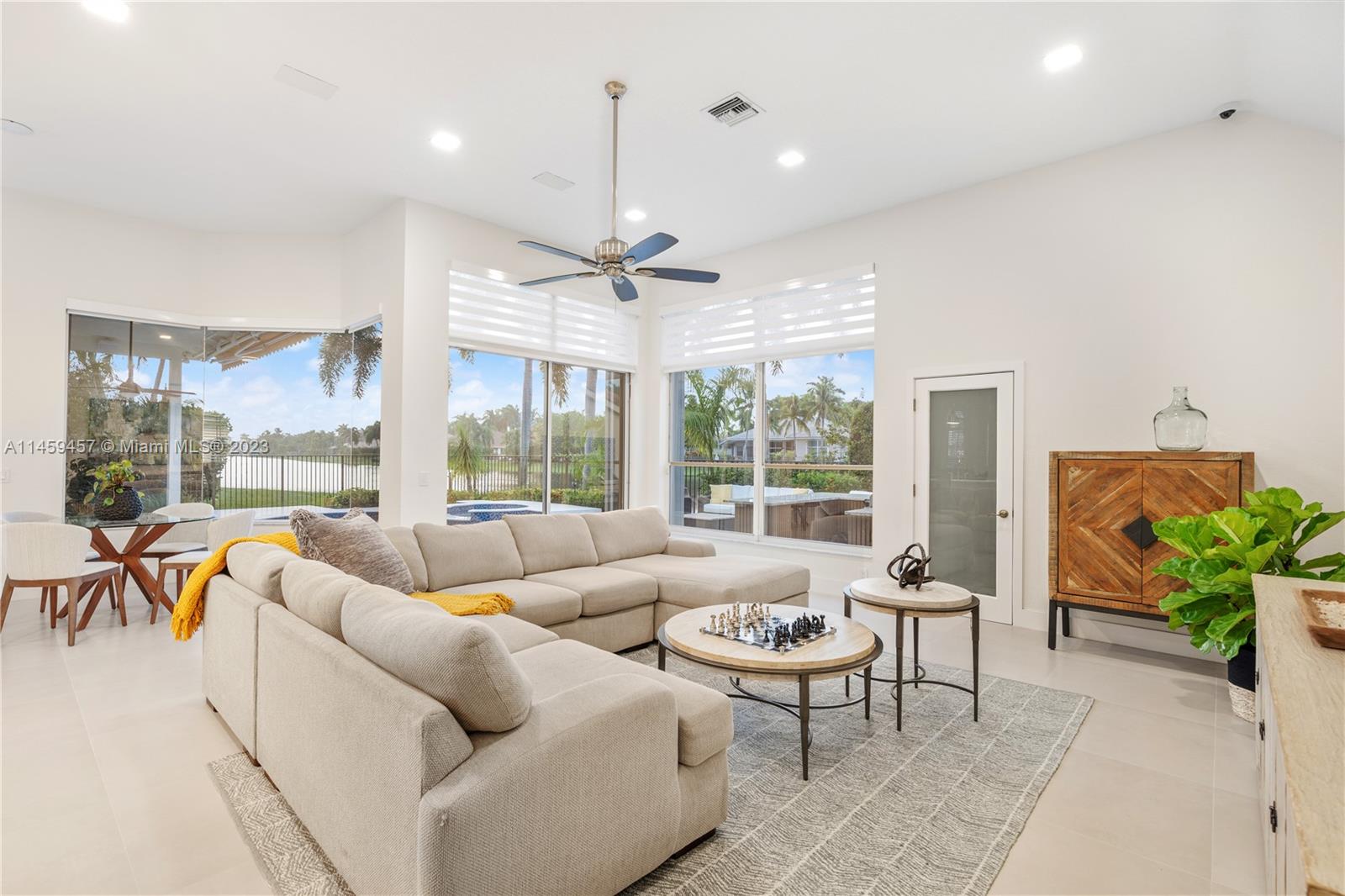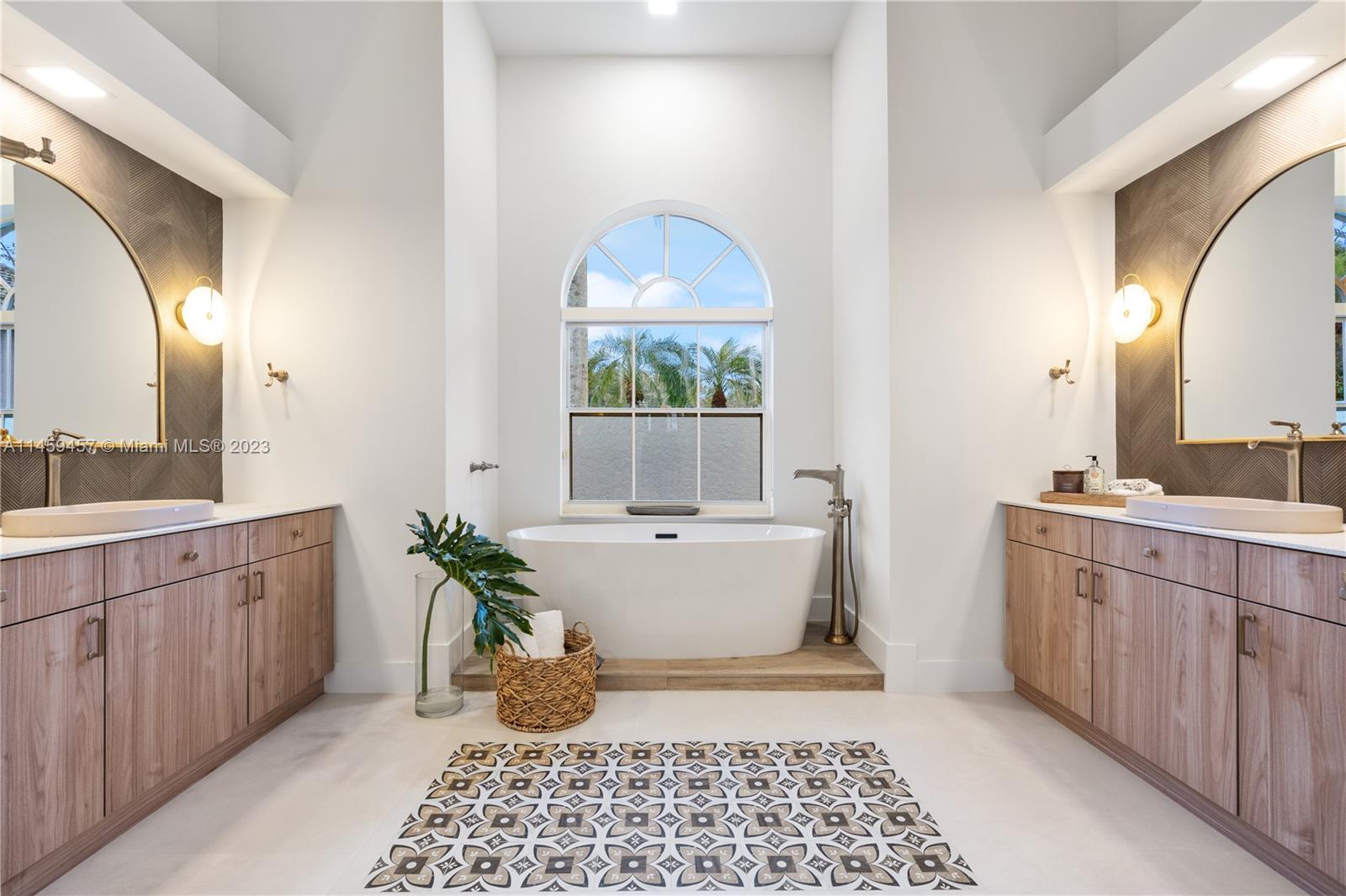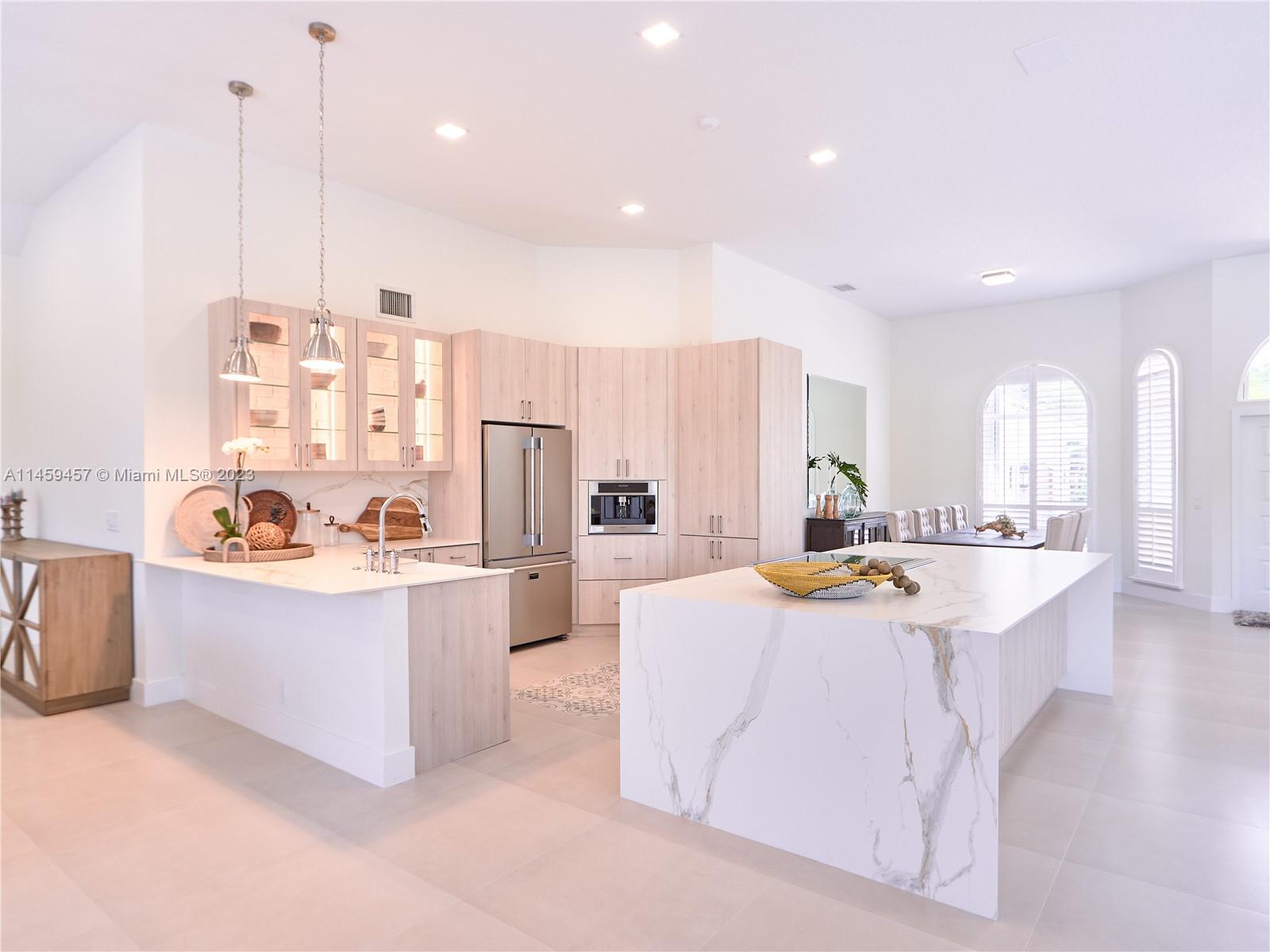 Fully Renovated modern smart home w/a twist of Cartagena remembrance; seamlessly blends cutting edge technology w/the vibrant spirit. From the moment you step inside, you'll be transported to a world where contemporary luxury meets the rich cultural heritage. The home's exterior features a sleek, minimalist design w/clean lines & a predominantly white facade. Upon entering, you are greeted by a grand foyer illuminated by state of the art Lutron LED lighting. The living spaces are open w/windows that offer panoramic lake views. Smart windows treatment, Sonos sound & cameras. The kitchen is a culinary masterpiece w/top of the line Italian appliances,wine dispenser & cooler. Vibrant white rustic mosaic wall accent & unique bathrooms title & designs. Summer Kitchen & mosaic pool and Jacuzzi.