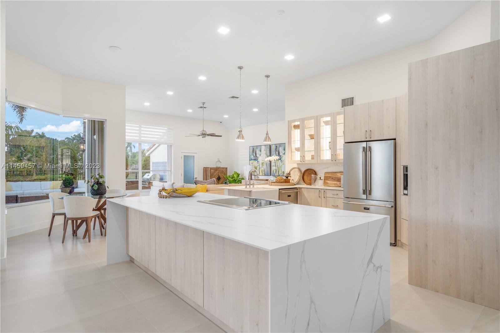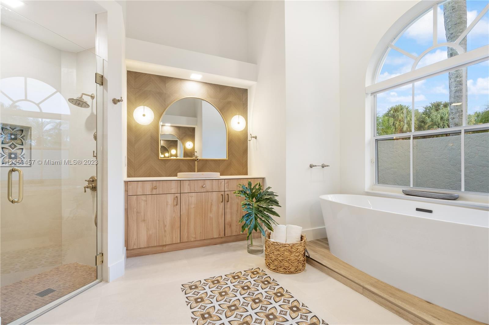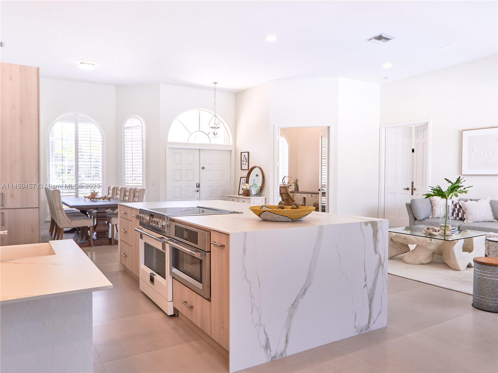 Fully Renovated modern smart home w/a twist of Cartagena remembrance; seamlessly blends cutting edge technology w/the vibrant spirit. From the moment you step inside, you'll be transported to a world where contemporary luxury meets the rich cultural heritage. The home's exterior features a sleek, minimalist design w/clean lines & a predominantly white facade. Upon entering, you are greeted by a grand foyer illuminated by state of the art Lutron LED lighting. The living spaces are open w/windows that offer panoramic lake views. Smart windows treatment, Sonos sound & cameras. The kitchen is a culinary masterpiece w/top of the line Italian appliances,wine dispenser & cooler. Vibrant white rustic mosaic wall accent & unique bathrooms title & designs. Summer Kitchen & mosaic pool and Jacuzzi.