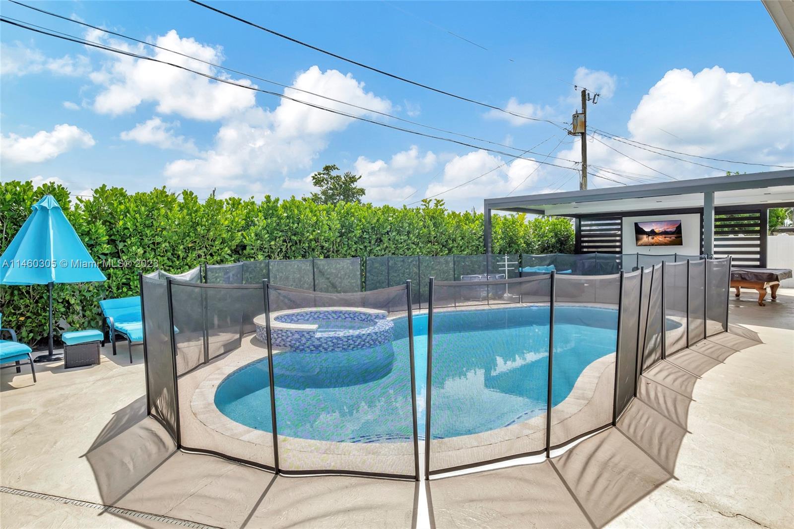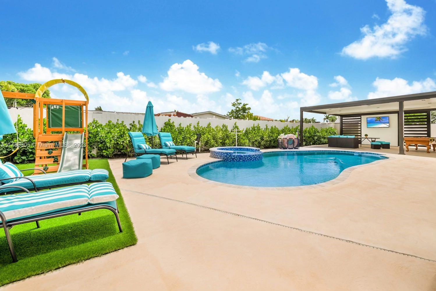 Beautiful and spacious 5/3 pool home in Miami Dade Unincorporated Palm Springs North. The house is excellent, the backyard better with two covered terraces and a lovely pool with spa. The property is located close to I-75 and Palmetto Expressway. Accordion shutters for storm protection. Two AC Units. City natural gas for gas tankless water heater and pool gas water heater. High-efficiency appliances. Modern sprinkler system with a well for the water. No rental restrictions. Enjoy the benefits of being right next to Miami Lakes without the City restrictions and Taxes. Parking boats or RVs are permitted.