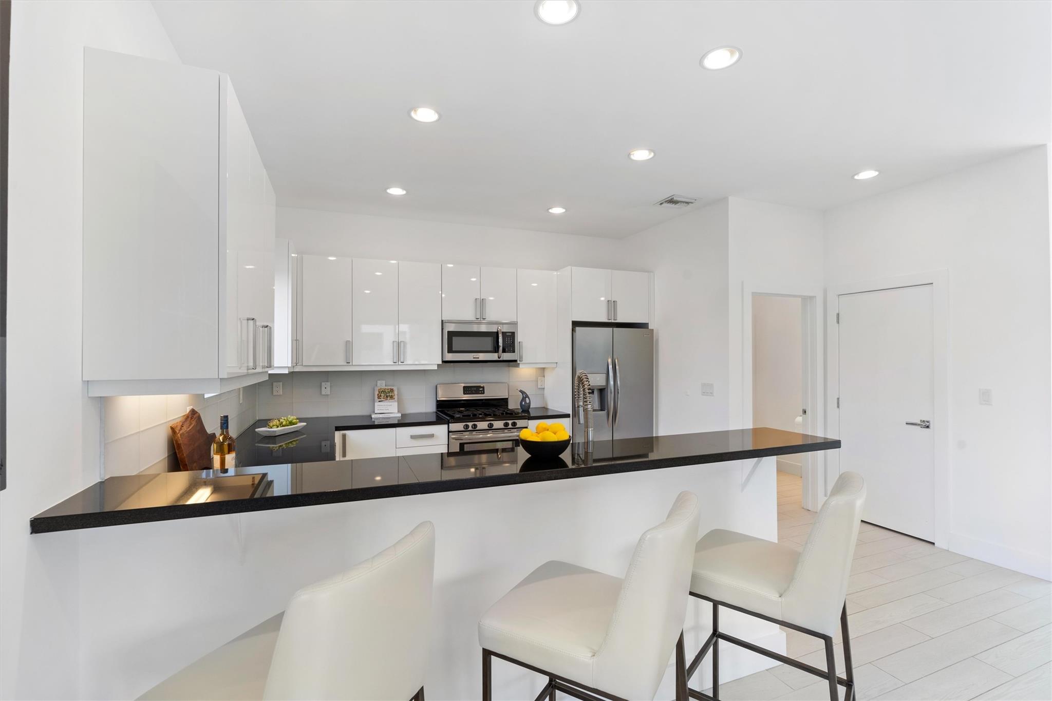 Modern luxury townhome in Victoria Park with no HOA. This rare townhome features 3 BD/3.5 BA with volume ceilings, 4 outdoor spaces, and private driveway with 2 car garage. Main floor features open concept living and dining, custom kitchen perfect for entertaining, sliders to 2 outdoor terraces, and powder room. Top floor has a primary suite with walk-in closet, luxurious bath with walk-in shower and soaking tub, and guest suite with terrace. First level has a full guest suite, garage, storage, and side yard. Enjoy outdoor living in the yard with room for grilling, entertaining, or a small spa. This corner unit home has only 1 unit attached and allows for plenty of natural sunlight from an abundance of windows and 3 exterior balconies. Short walking distance to parks, Las Olas & more.