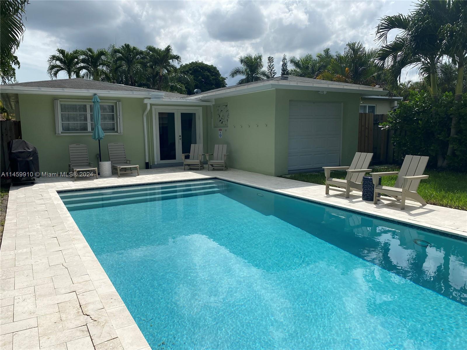 Move in Ready! Beautiful 2BR 2BA + 1 Car Garage, with a great open-concept design. Light & Bright. Remodeled, New Concrete Floors throughout. Fantastic New Chefs Kitchen with Gas Cooking, Center Island, Breakfast counter, Quartz countertops, lot's of space, great for family gatherings/entertaining. Seperate laundry room, Tankless water heater, Hurricane protection/Accordion Shutters. Private fenced in Tropical backyard with a modern style Headed Saltwater Pool and it comes with an outdoor shower. This home is located within the desirable Hollywood Lakes, 2 blocks from the Lake and near the Beaches and Boardwalk, Golf Course, Hollywood Downtown, Casinos & Shopping.
