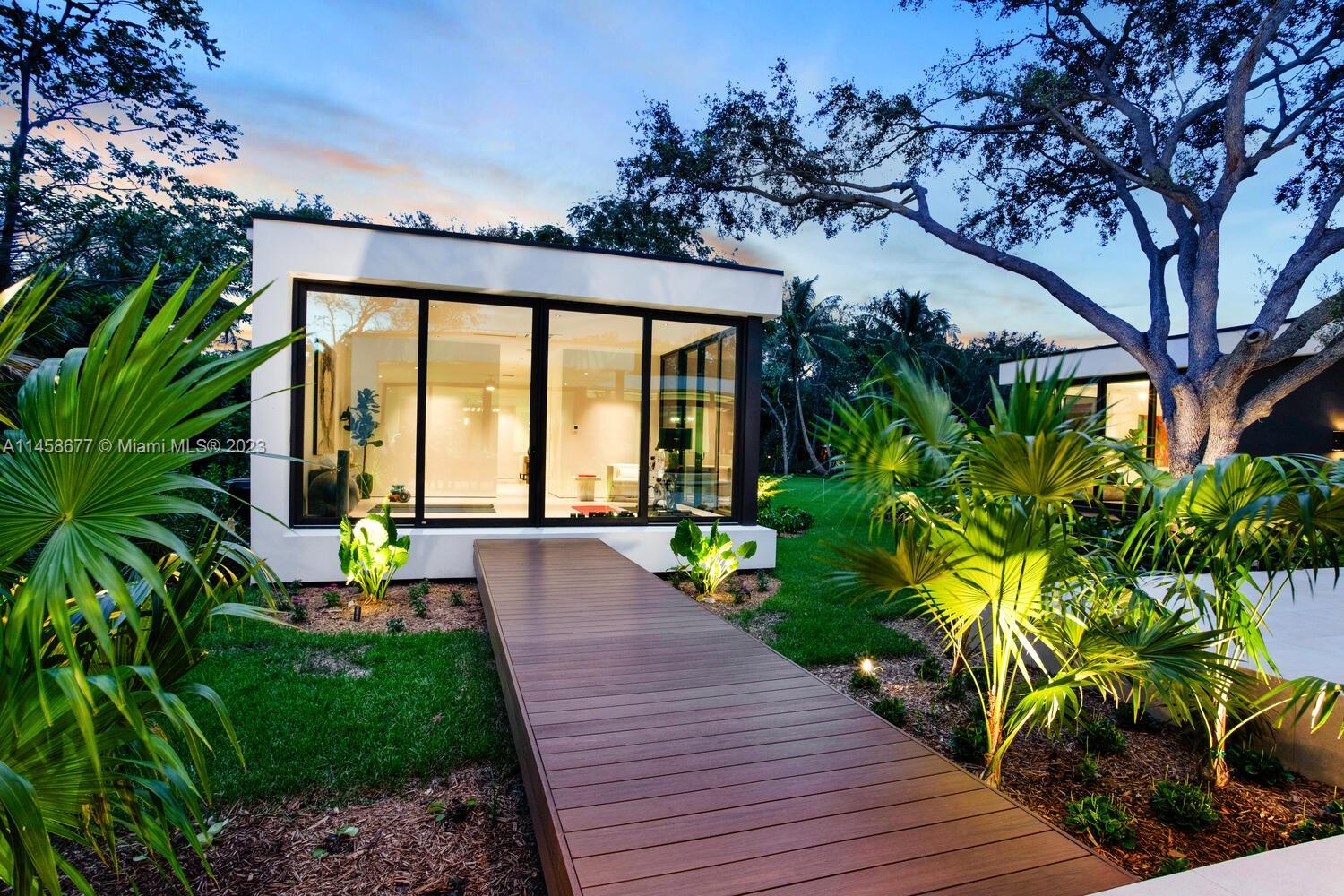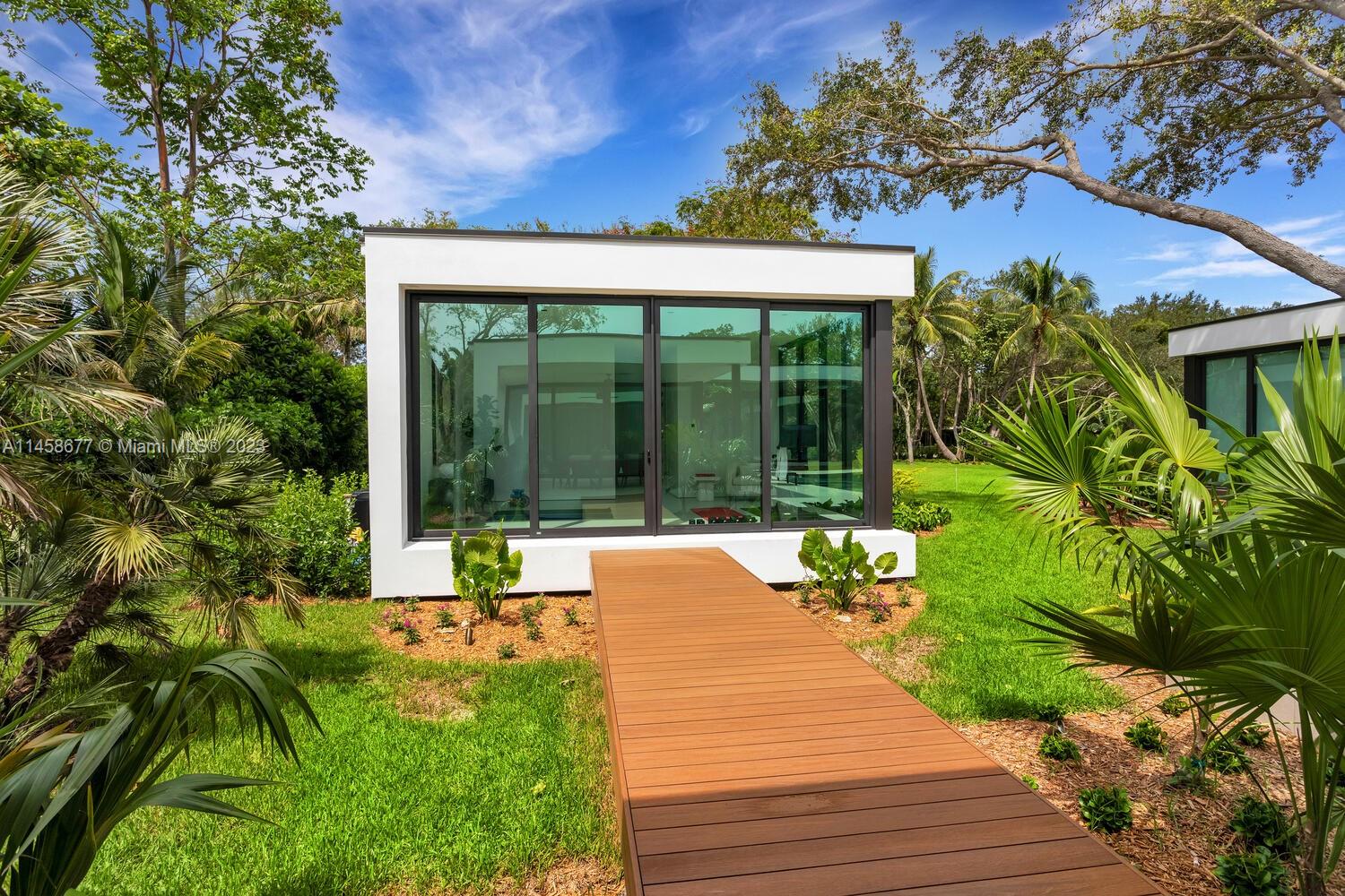 This stunning modern construction in Pinecrest is situated on a spacious 39,639 sqft corner lot. This impressive property boasts a 6-bed, 6.5-bath main residence, a detached VIP Suite perfect for guests, heated modern pool with a hot tub & a 2-car garage. Exceptional Miacuccina finishes grace all interior doors, kitchen, closets, vanities & millwork, showcasing the highest-quality craftsmanship. The floors feature stunning 24*48 sandstone silk porcelain tiles & the kitchen dazzles with Calacata Mystery Gold Quartz countertops complemented by Lieber, Miele & Askor appliances. Simplify your life with the state-of-the-art Control 4 smart system, allowing effortless control with a mere touch. Additional amenities include: generator ready, electric blackout curtains & an outdoor summer kitchen.