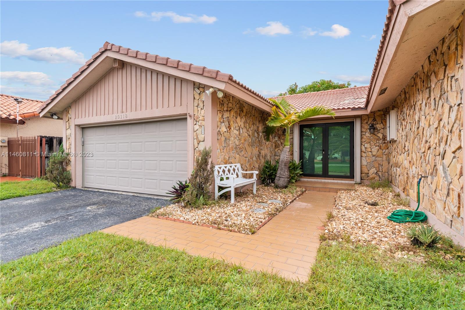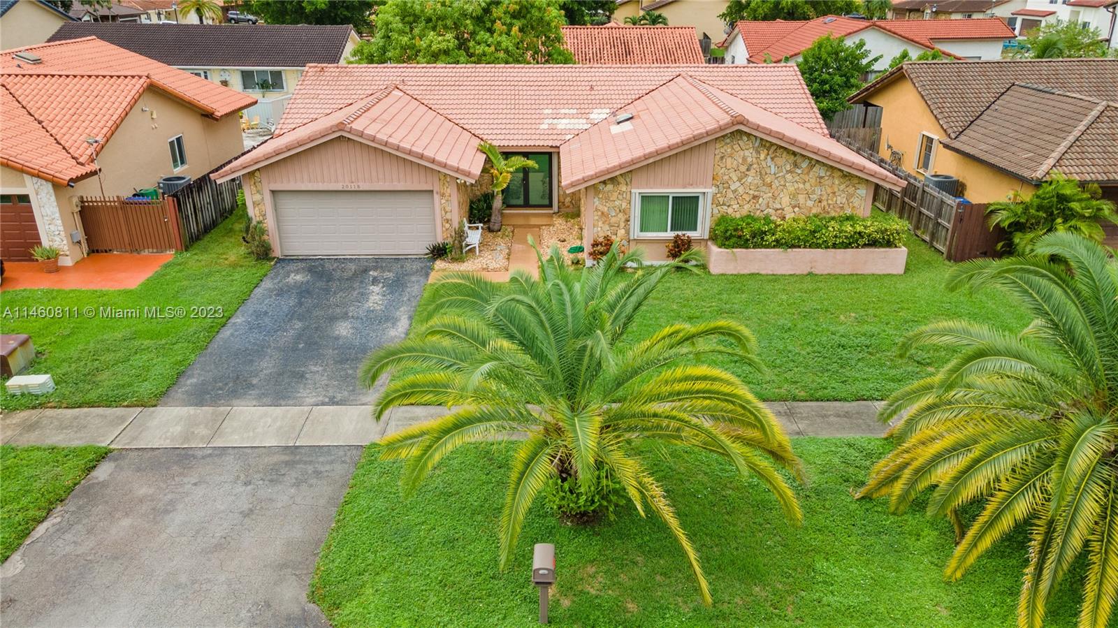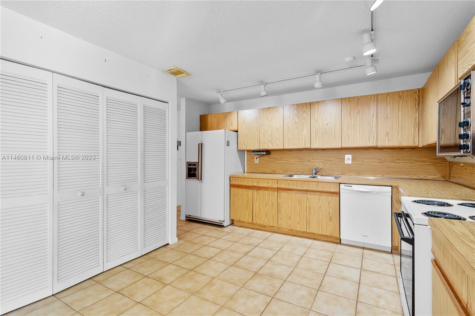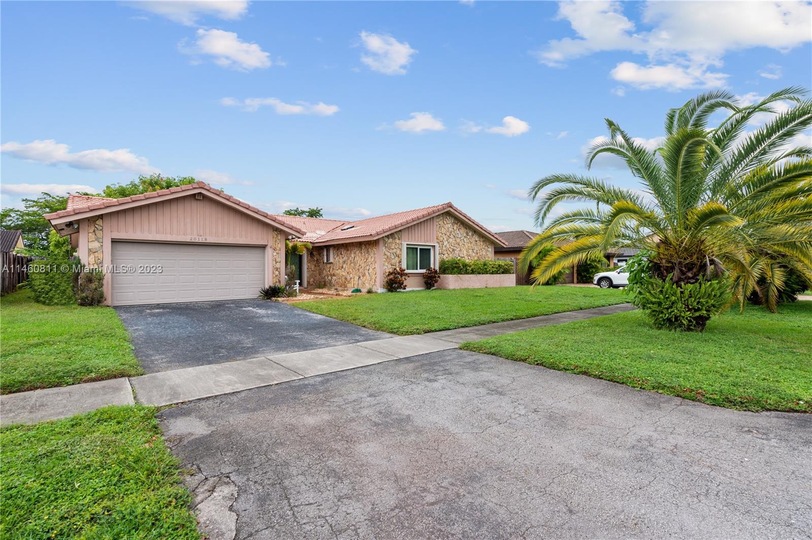 Spacious home on a dead-end street features 4 bedrooms (split floor-plan), 2 bathrooms, 2-car garage, updated front double-door entry, foyer, formal living and dining room, spacious kitchen with pantry and open to the family room, skylight, separate laundry room, carpet and tile throughout, complete hurricane protection with a combination of impact glass and accordion shutters. The spacious primary bedroom features a double-door entry, platform area, and an en suite with dual vanities, separate shower and tub, and a walk-in closet. Exterior features include a spacious patio partially covered, mango tree, and fully fenced back-yard. HVAC is 2004 and Roof Permit with city is dated 1994.