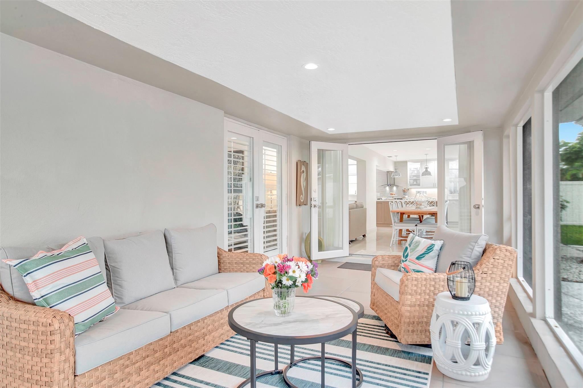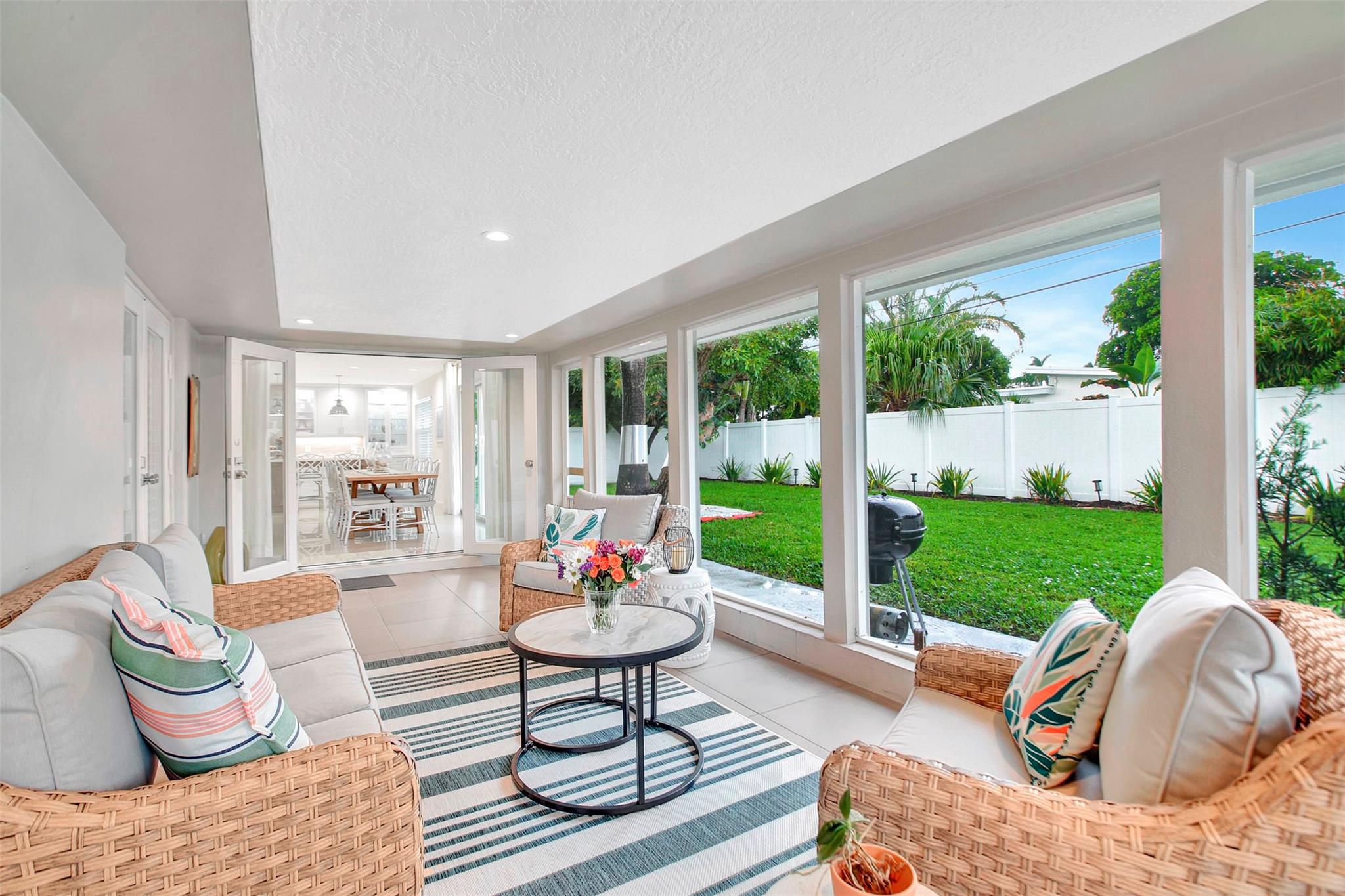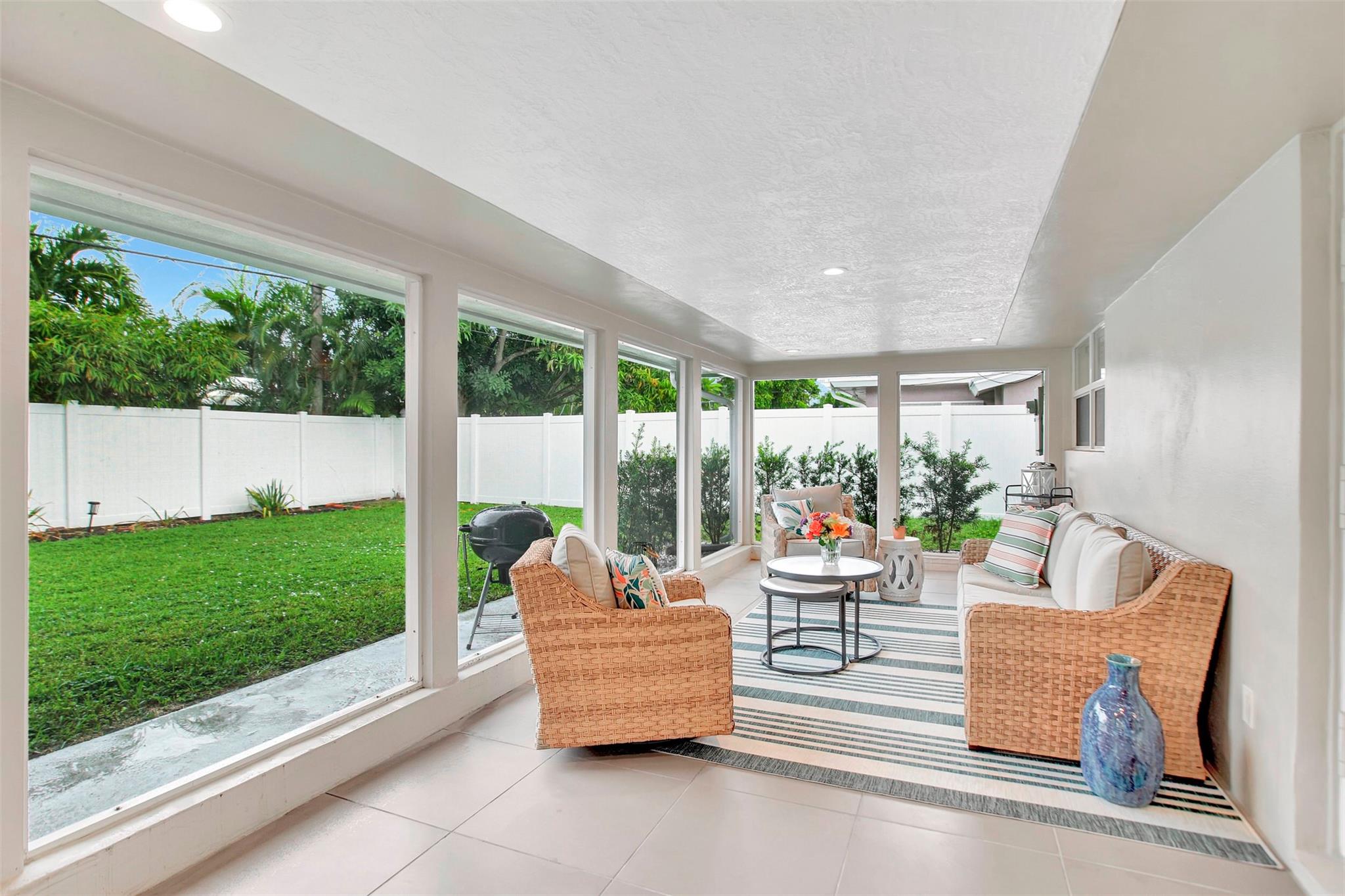 This meticulously maintained home is located in the gated, beachside community of Bel Air. The house features numerous updates, including a brand-new, beautiful kitchen with an extended island. You will enjoy the porcelain tile floors throughout the home, a practical interior laundry room, impact windows and doors for added safety, as well as a single-car garage. You will experience Florida living at its best with the spacious 24 x 10 screened room that extends the living space. The paver circular driveway adds curb appeal and provides plenty of parking spaces. There's room in the backyard for your personal touch, such as a garden or a pool. Pompano Beach offers a comfortable, coastal lifestyle. Make this house your home today.