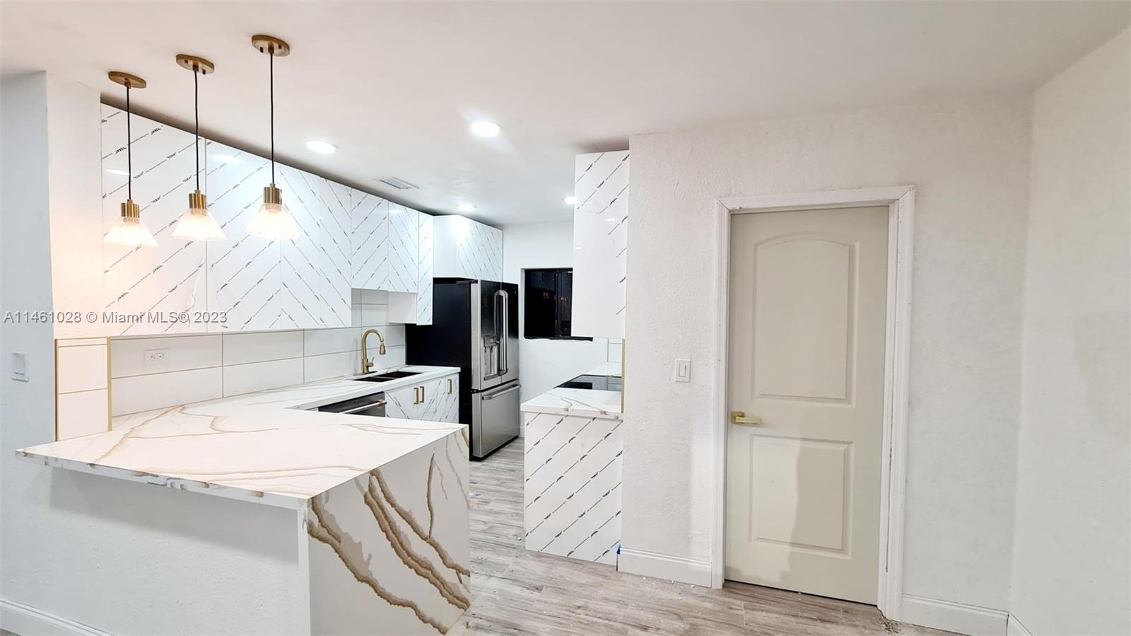 Fully remodeled 3 bedroom 2 bathroom home, located on a one-way street. This home has been completely remodeled and is ready for move in! It features an open floor plan, with a chef's style kitchen and custom acrylic cabinets and quartz waterfall countertops. It includes new Central AC throughout, halo recessed lights, hurricane impact windows and doors, and brand new upgrades including a new roof (2023), tankless water heater etc. The stainless steel appliances, washer & dryer connections, porcelain tile bathrooms, and luxurious vinyl wood floors truly make this home a turn-key investment for its future owner. Gated yard, privacy hedges for ample privacy! This home has ample parking and is located in a quiet neighborhood just east of the Turnpike