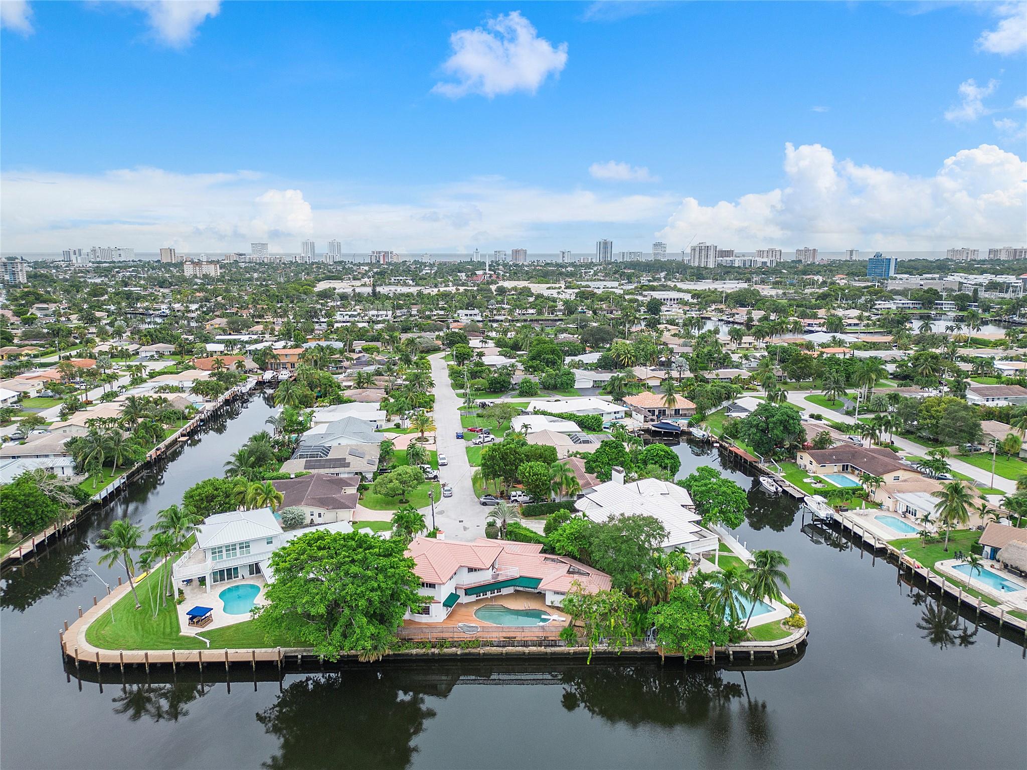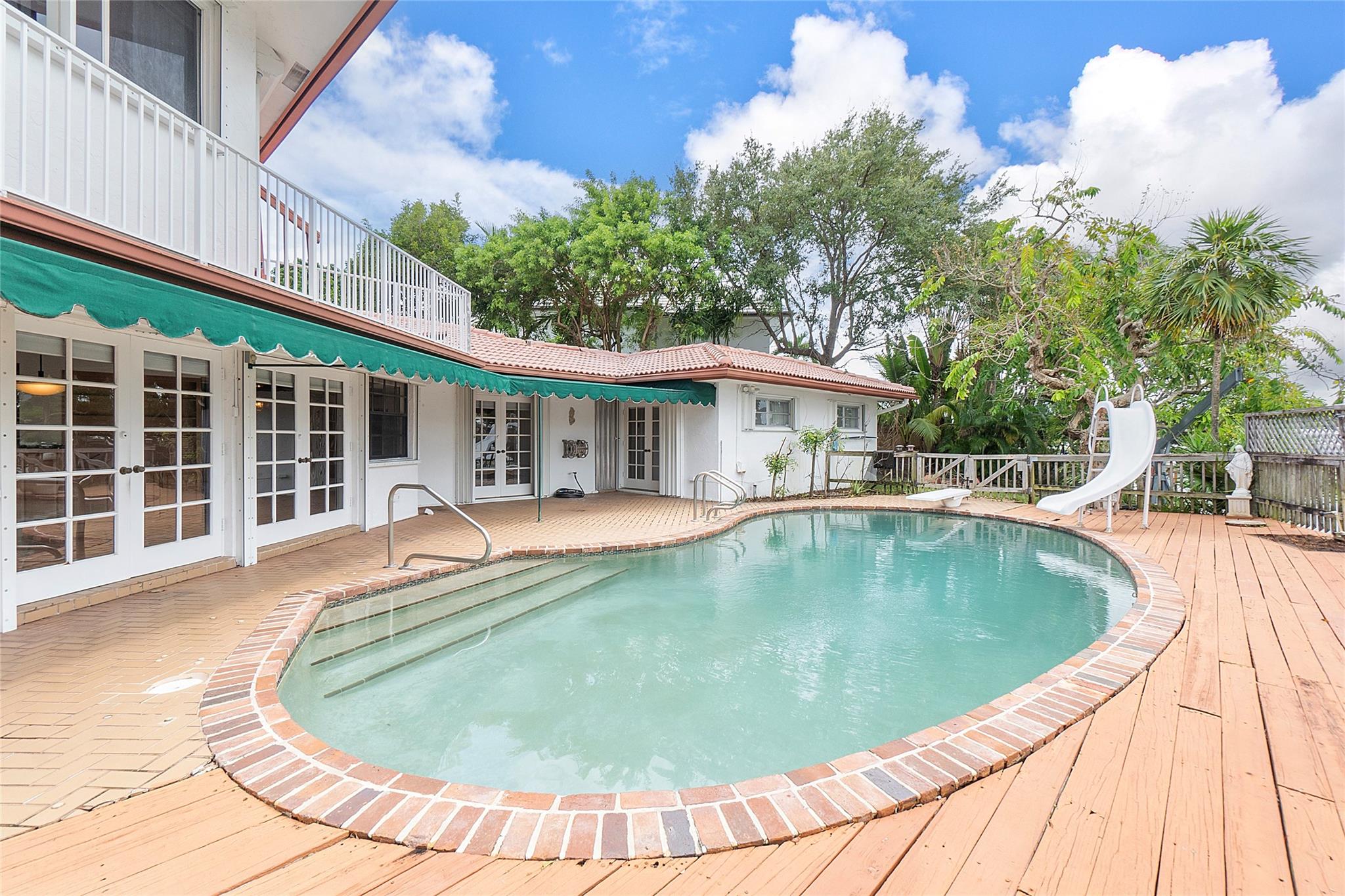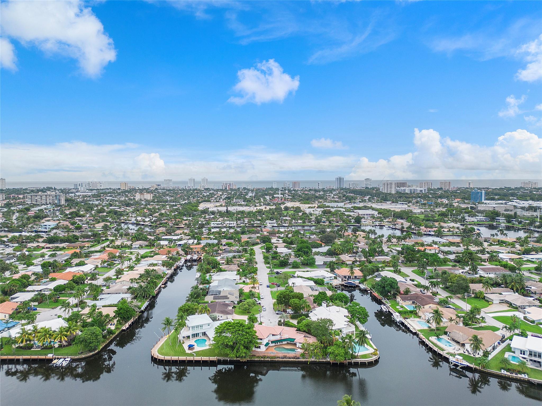 Views to die for! You may get lost in this special house with FOUR bedrooms, FOUR full baths. Neighborhood is a lovely, well-kept secret. Rarely available end of cul-de-sac lot on canal with one fixed bridge to Intracoastal and Ocean. Pool and spa with large deck and dock. Large open kitchen with a great design. Fireplace and Bar with pass thru window to pool deck. 3 bedrooms, 3 full baths and laundry room on first floor. Primary suite on the second floor with two HUGE closets, a big bathroom with spa tub, walk-in shower, toilet and bidet. Even a mini kitchen between the bedroom and sitting room. Two car garage. FOUR mile drive to beach! Close to restaurants, shopping, highways, golf, pickleball, the airport. Near great schools like Pine Crest. Come visit. Ready for you to make it yours.