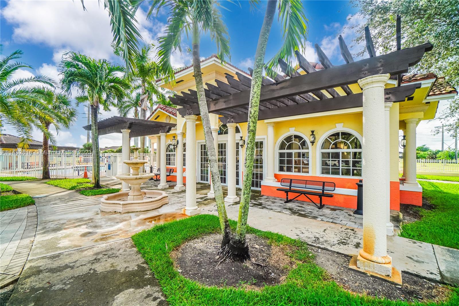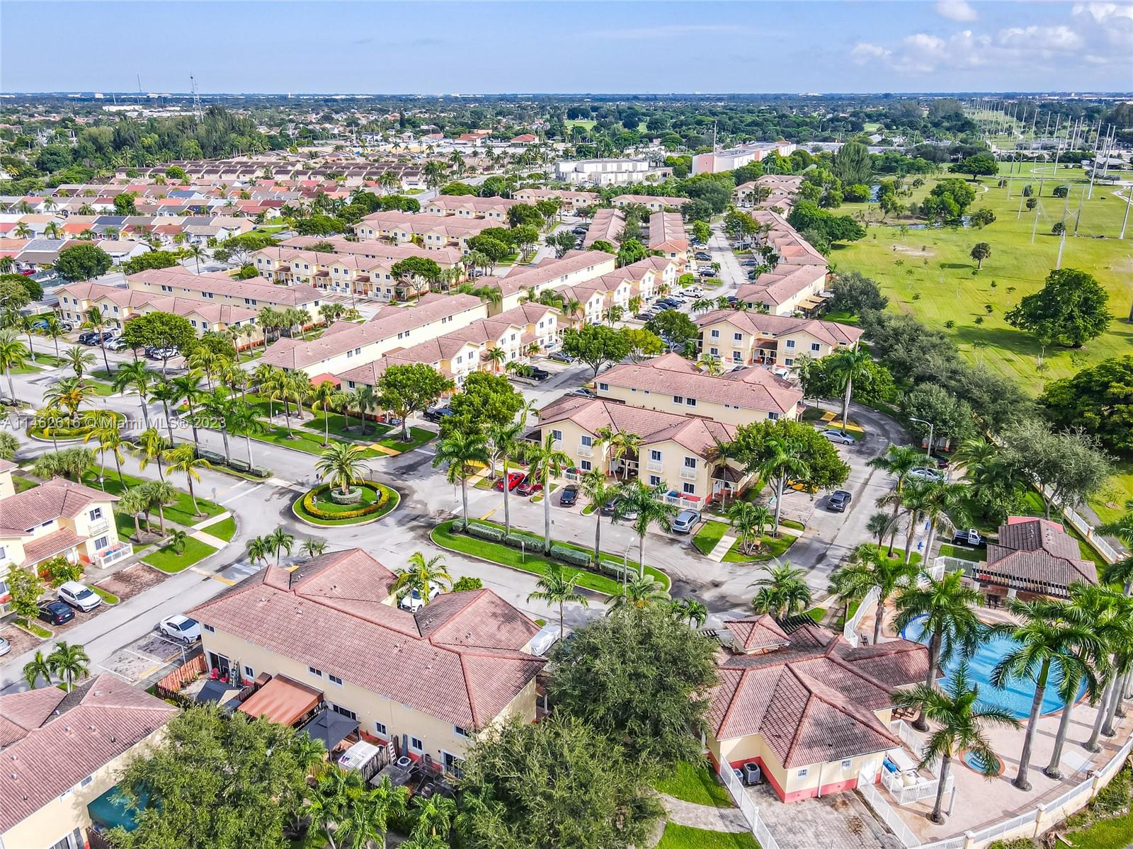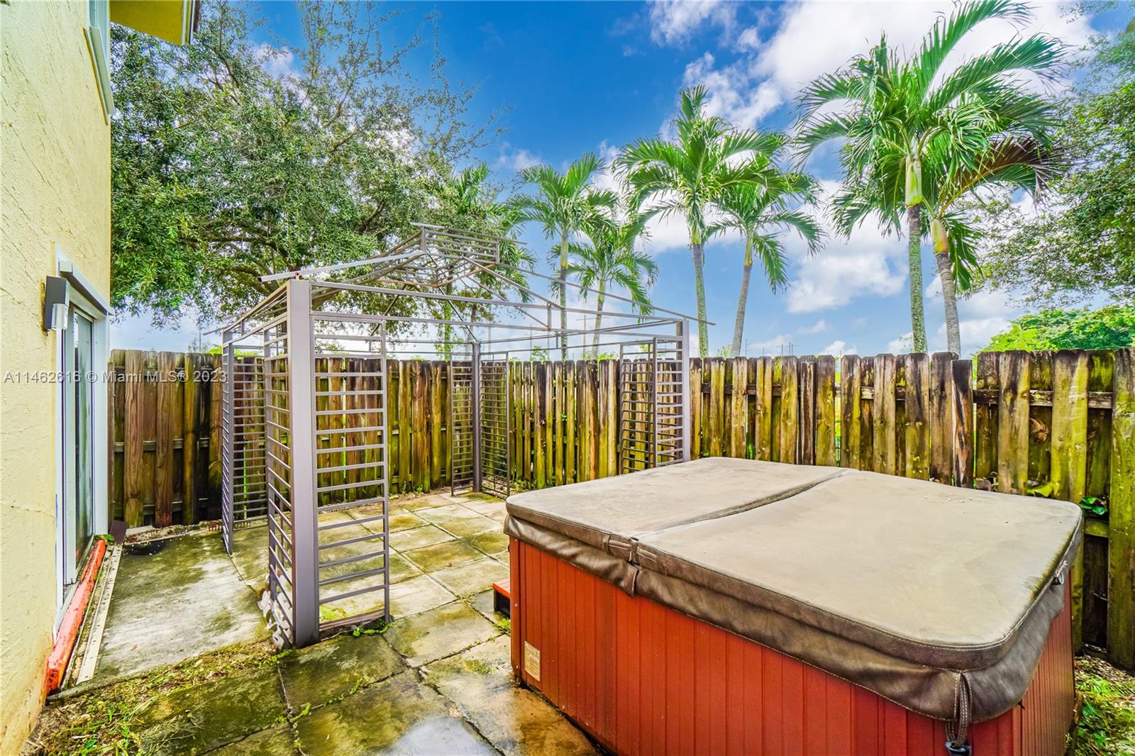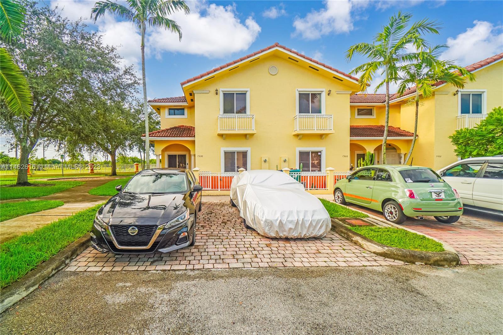 Spacious corner town-home/villa featuring 3 bedrooms and 3 full bathrooms. Ceramic floors, wood stairs, spacious kitchen with granite countertops and stainless steel appliances, Jacuzzi in privately fenced backyard. 2 parking spaces in-front of unit plus additional parking for visitors very close to property. One full en-suite bedroom with full bathroom on the first floor. Lowest association fee in the area only $160 per month for homeowners association, and it includes garbage and internet. Easy access not gated community. Prime location, close to supermarkets, schools and shopping centers, easy access to I-75, Palmetto and turnpike.