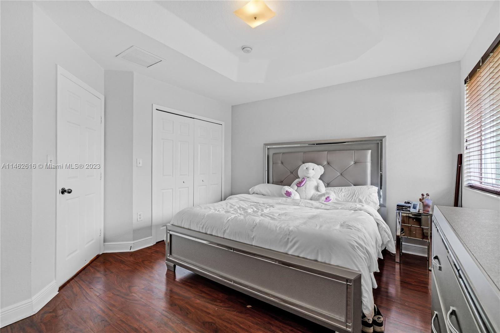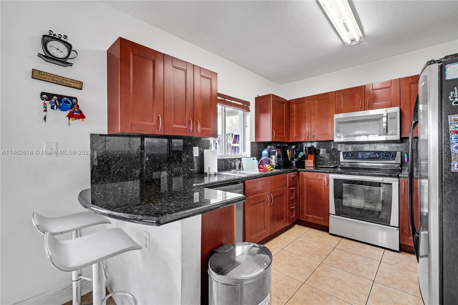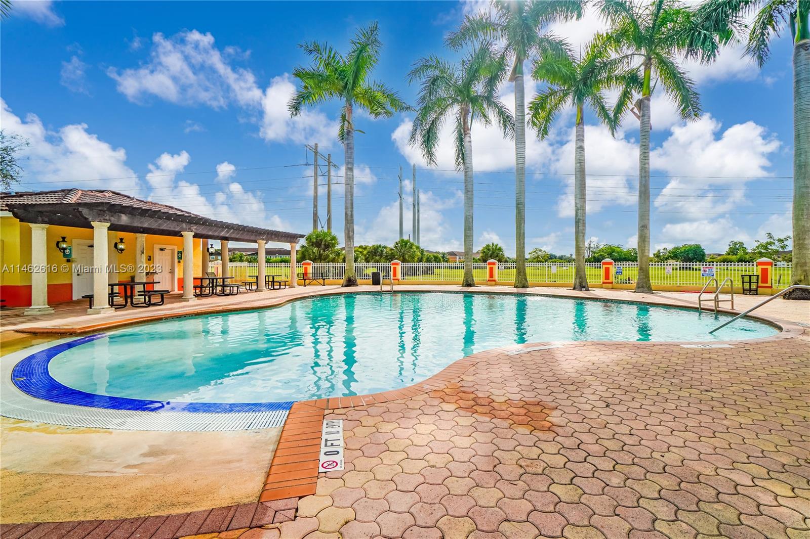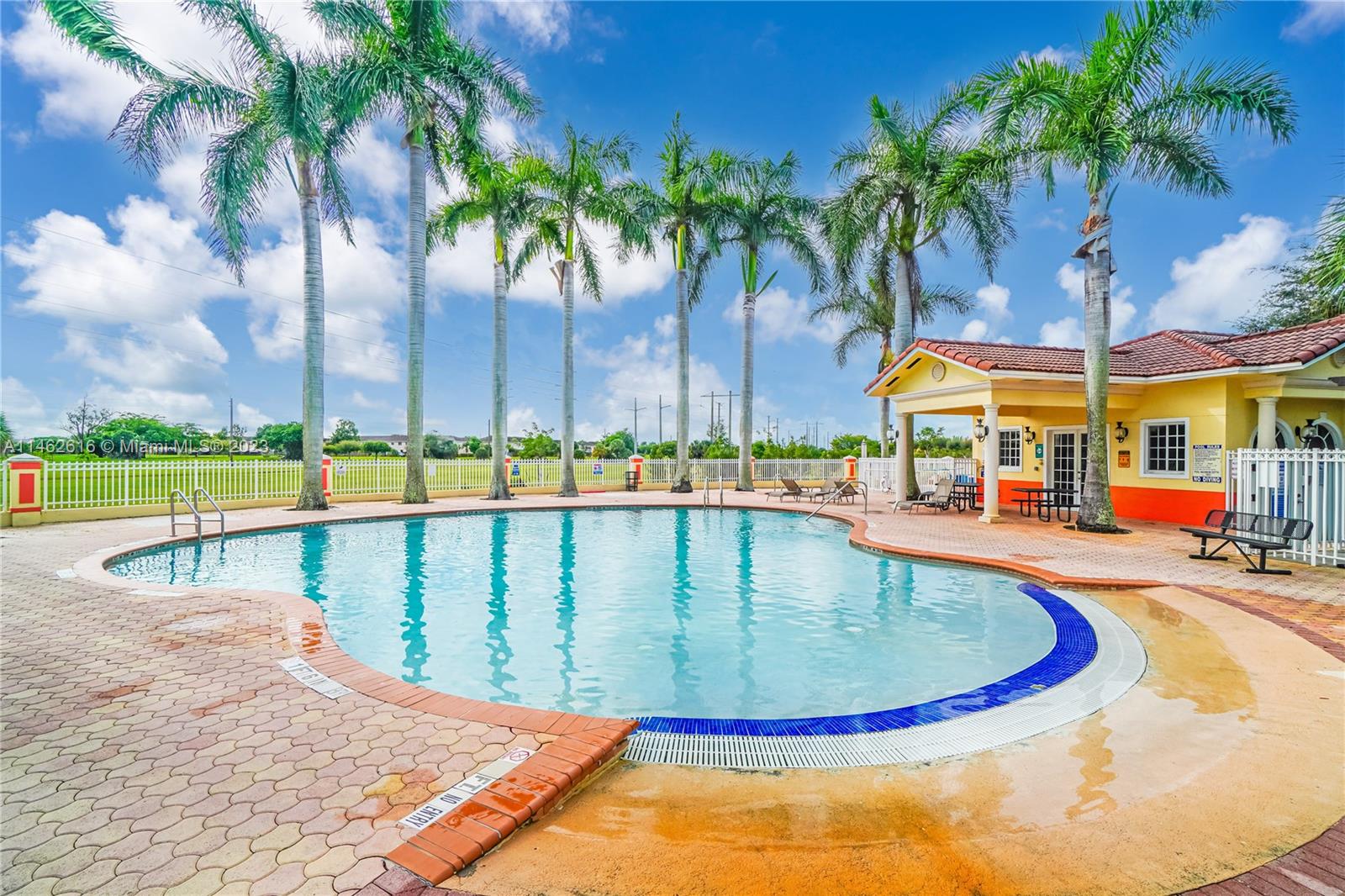 Spacious corner town-home/villa featuring 3 bedrooms and 3 full bathrooms. Ceramic floors, wood stairs, spacious kitchen with granite countertops and stainless steel appliances, Jacuzzi in privately fenced backyard. 2 parking spaces in-front of unit plus additional parking for visitors very close to property. One full en-suite bedroom with full bathroom on the first floor. Lowest association fee in the area only $160 per month for homeowners association, and it includes garbage and internet. Easy access not gated community. Prime location, close to supermarkets, schools and shopping centers, easy access to I-75, Palmetto and turnpike.