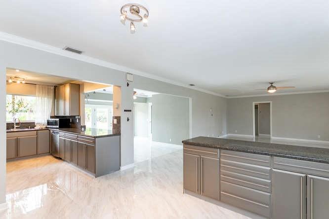 The best value currently on the market in Coral Ridge. Move right in to this 3/2 home walking distance to the beach, dining and Coral Ridge mall. This unique property offers a wide open floor plan with the dining, living and family room all combining into one space overlooked by the kitchen. There is a newly installed tile flooring throughout giving the home a very clean and consistent appeal. Other benefits include the 2 car garage, new AC unit and ductwork, partially replaced sewer pipes. The large lot is fully fenced with room for a pool and features a patio with covered awning. Huge interior laundry room.