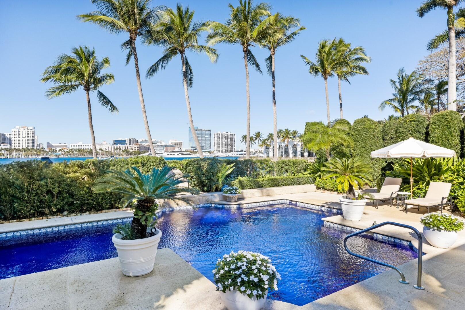 Fantastic Lakefront In-Town property with 200'+/- along the Intracoastal. Stunning water views throughout this one story estate. 8 bedrooms, 8 full baths, and 2 powder rooms split between main residence and guest house. The main estate features high ceilings, grand living room with fireplace, formal dining room, and family room with wet bar. Beautiful tropical landscaping surrounds terraces, swimming pool, and spa. Dramatic view of the kapok tree. Spectacular sunset, Intracoastal, and downtown views.