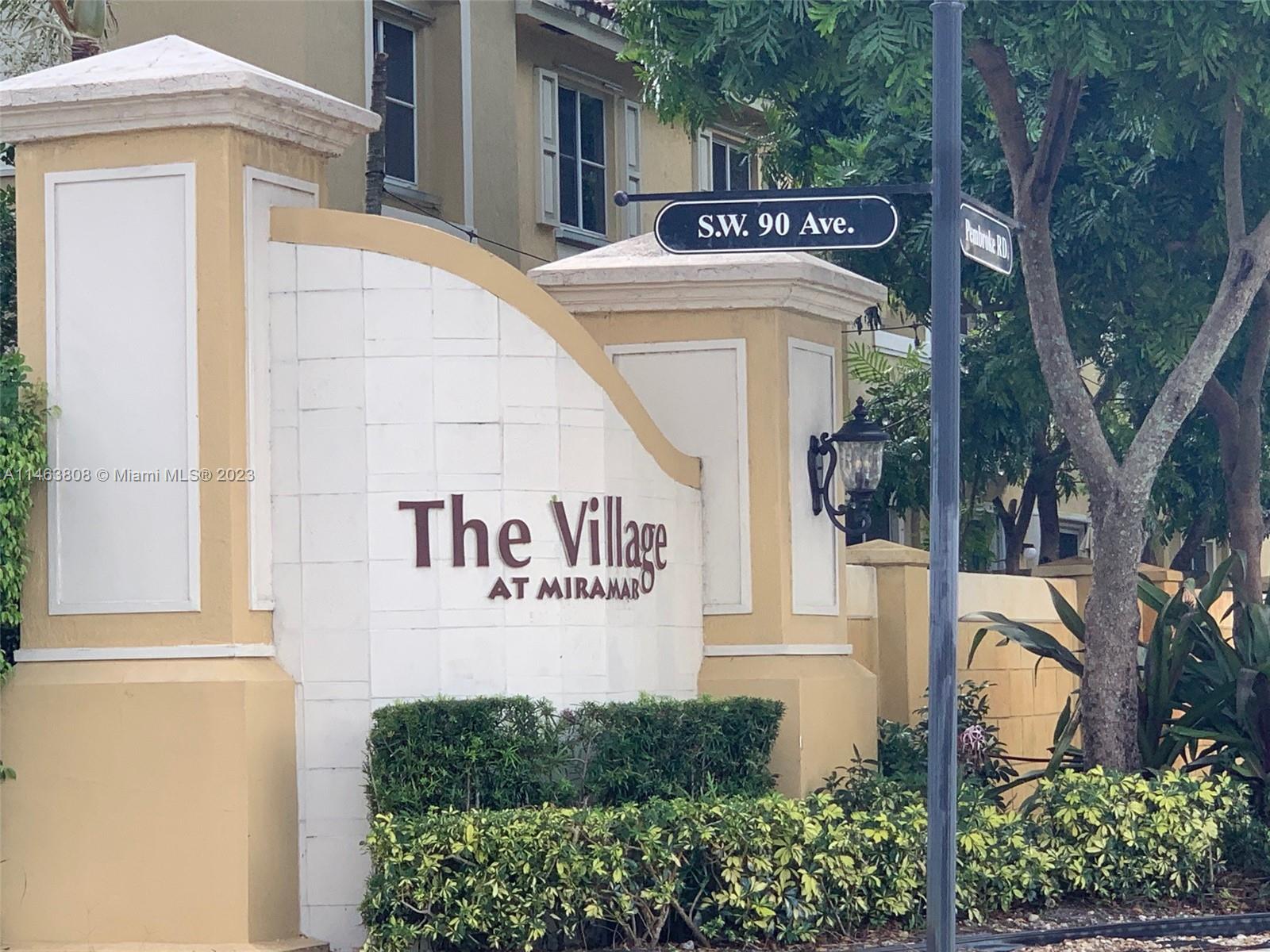 Beautiful Corner townhouse in the Village at Miramar. Updated house with tile flooring and laminated floors. Stainless steel appliances in the unit.Washer/Dryer in the unit. Large 3 Bedroom 2 ½ Bathroom. Large living room with dining area. Ample Closets including under the stairs.Patio is all pavers. Located in the heart of the Miramar with the child playground, clubhouse, and community pool
