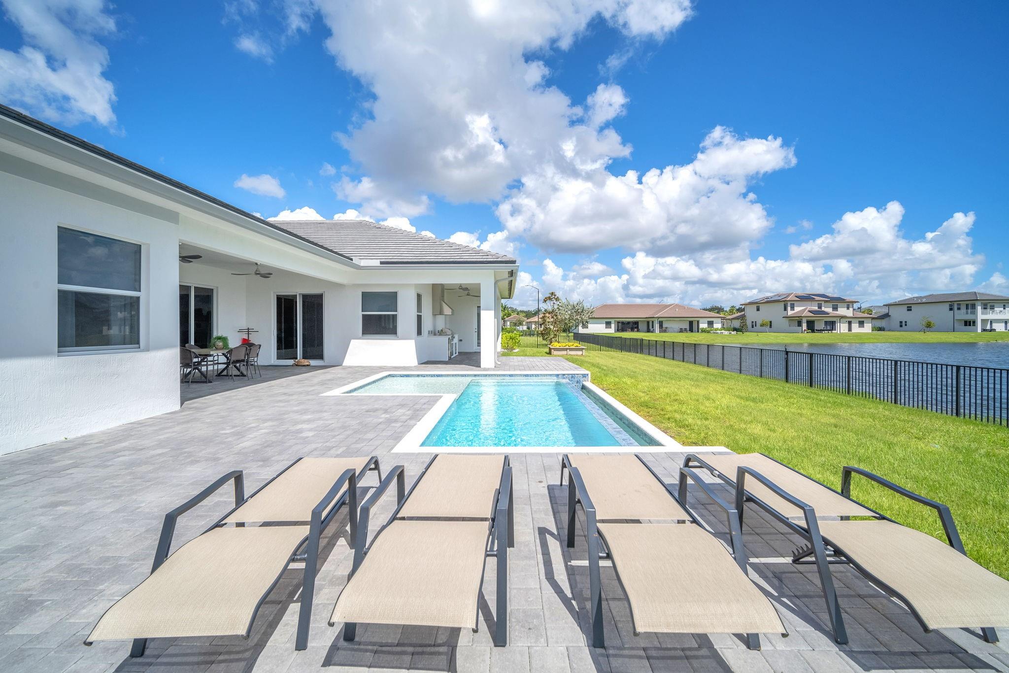 LARGEST 1 STORY WATERFRONT MODEL HOME in Sierra Ranches! 7 Bedrooms, 6 Bath, Summer Kitchen and Infinity Pool with Sundeck. This was 1 of the Model homes for WCI. Upgrades include Kitchen Cabinetry for a finished, floor to ceiling look, Modern Lighting, Premium Flooring, Top of the line appliances, quartz countertops and backsplash, Custom Entertainment Center with working fireplace, California Closets, Custom window treatments by Smith & Noble, Fenced In, Tesla Charger, Summer kitchen, Infinity Pool with Upgraded lighting, house alarm, Smart Garage and Front Doors and More. No need to look anymore, this home will meet and exceed all expectations. The moment you walk in, infinity pool leading you to the largest water view in Sierra Ranches. Must see, you will fall in love with this home.