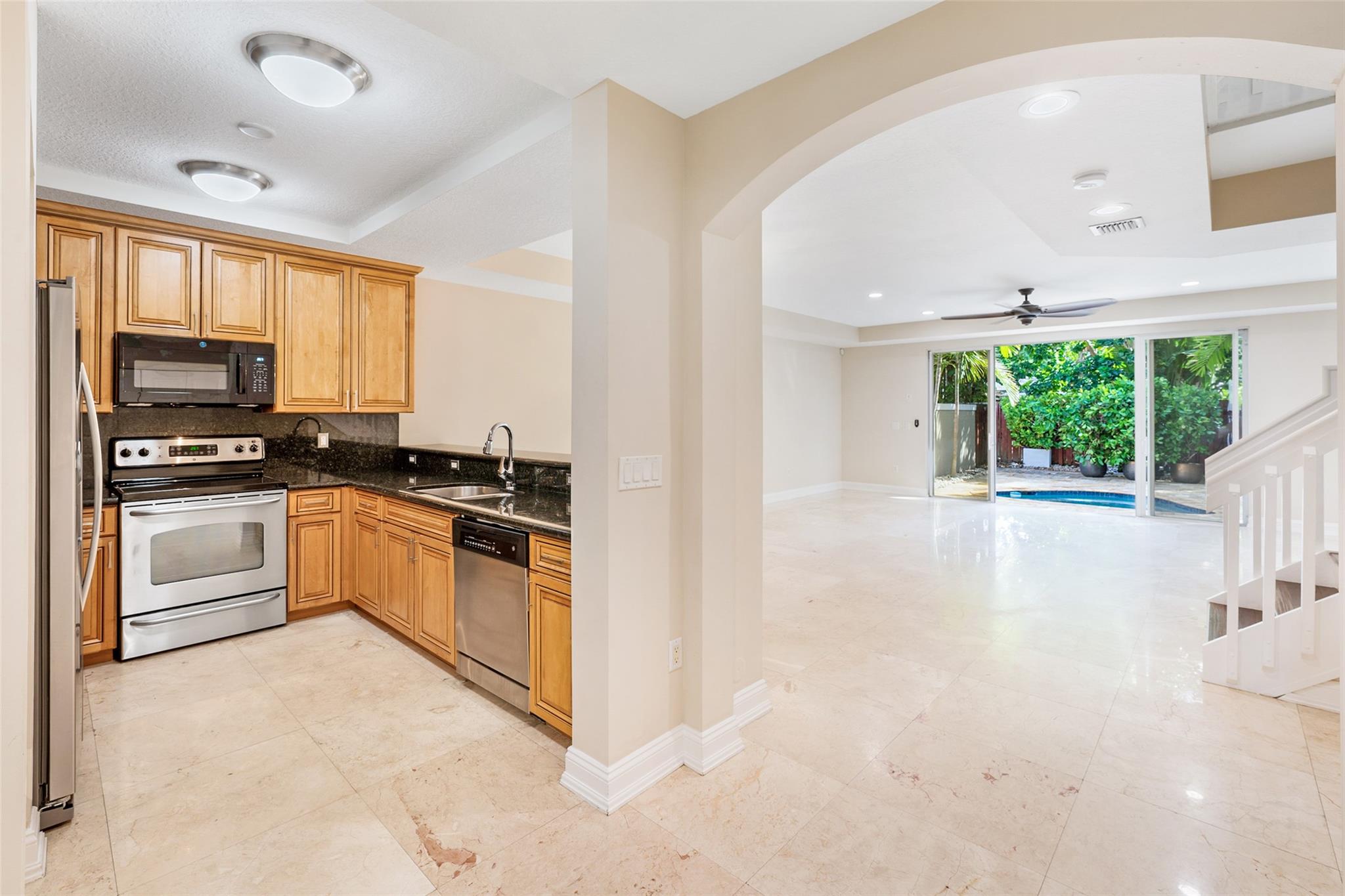 BEAUTIFUL CORAL RIDGE FEE SIMPLE TOWNHOME IN THE (A-RATED) BAYVIEW ELEMENTARY SCHOOL DISTRICT. TWO-STORY FEATURE 1ST FLOOR OPEN FLOOR PLAN. SPACIOUS LIVING AREA OPENING TO A FENCED PRIVATE POOL PATIO FOR MAXIMUM LIVING SPACE & ENTERTAINMENT. SOARING 9' CEILINGS AND 8' TALL DOORS. KITCHEN WITH GRANITE COUNTERTOPS, TALL WOOD CABINETS & ST. STEEL APPLIANCES. 2ND FLOOR SPLIT BEDROOM FLOOR PLAN. LARGE PRIMARY BEDROOM W/BALCONY, BUILT-IN CLOSET, LARGE BATHROOM WITH HIS/HER VANITY, JETTED TUB & SEPARATE SHOWER. MARBLE AND HARDWOOD FLOORS THROUGHOUT, 1 CAR GARAGE & PAVED PRIVATE DRIVEWAY W/PARKING FOR 4 CARS. LESS THAN A MILE TO FT LAUDERDALE BEACH, WALKING DISTANCE TO SHOPPING, DINING & THE INTERCOASTAL. PERFECT FOR FULL-TIME, 2ND HOME RESIDENCE OR INVESTMENT WITH FAVORABLE RENTAL RULES *LOW HOA