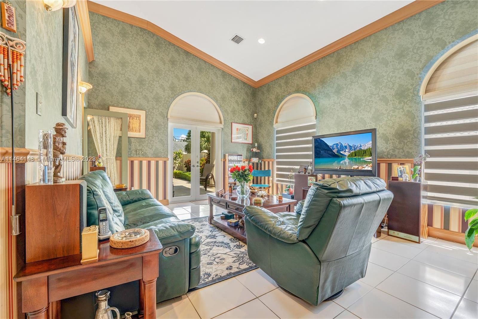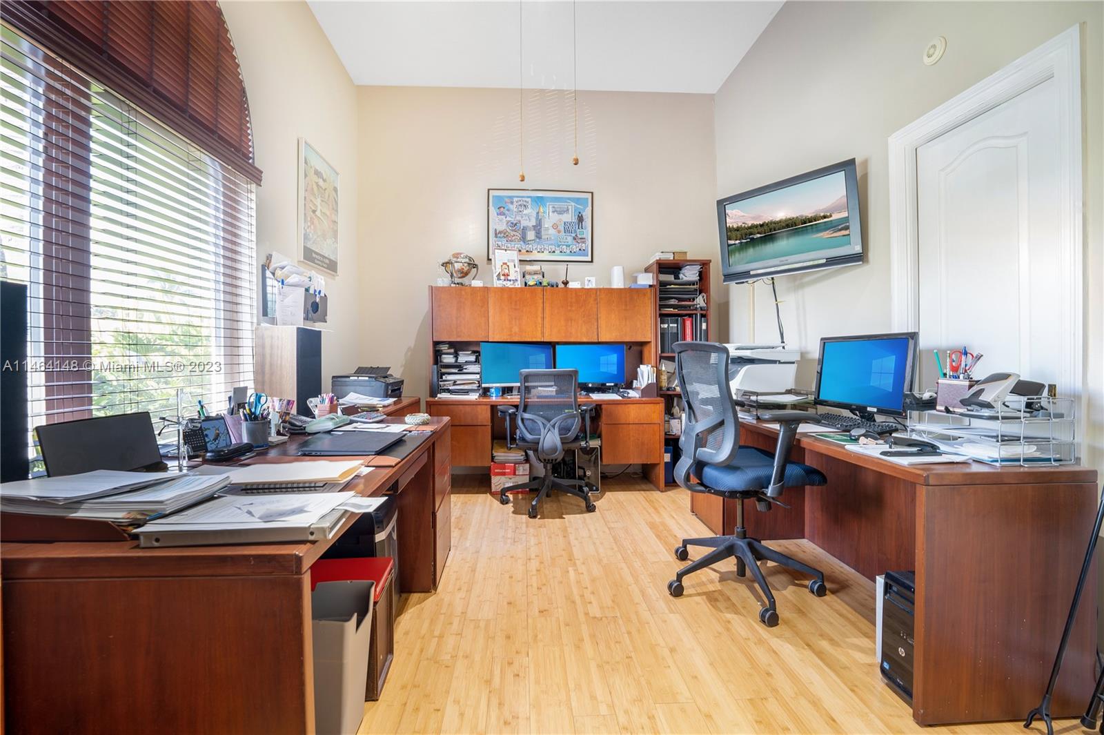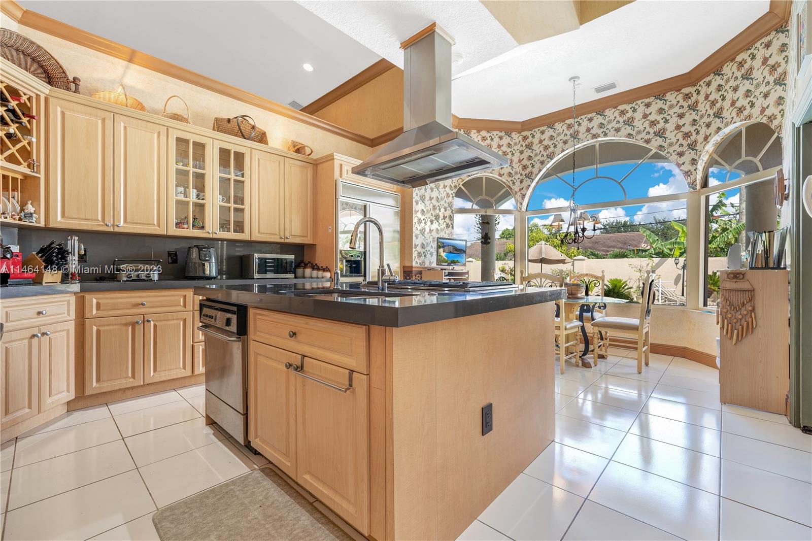 Gorgeous 3 bedroom 3 baths house without association in Doral in the quiet neighborhood of Vanderbilt. Completely concrete fenced on an almost 10,000 sq. ft. lot. and 3,625 sq. ft. of construction. This property has been fully upgraded, with high and vaulted ceilings. Impact windows, extremely well-maintained, high-end appliances, and finishes. The kitchen overlooks the covered terrace, the pool, and the rest of the patio. A very ample 2-car garage with additional space for cabinetry and shelves. Very close to A+ schools, shopping, and major highways.
