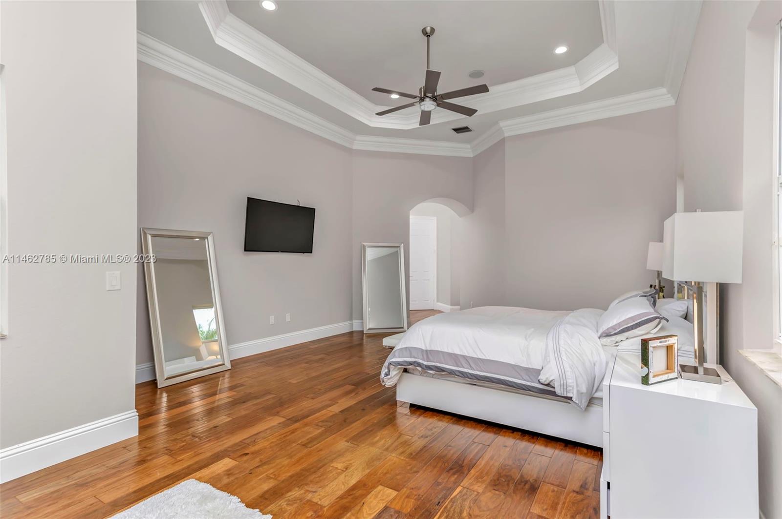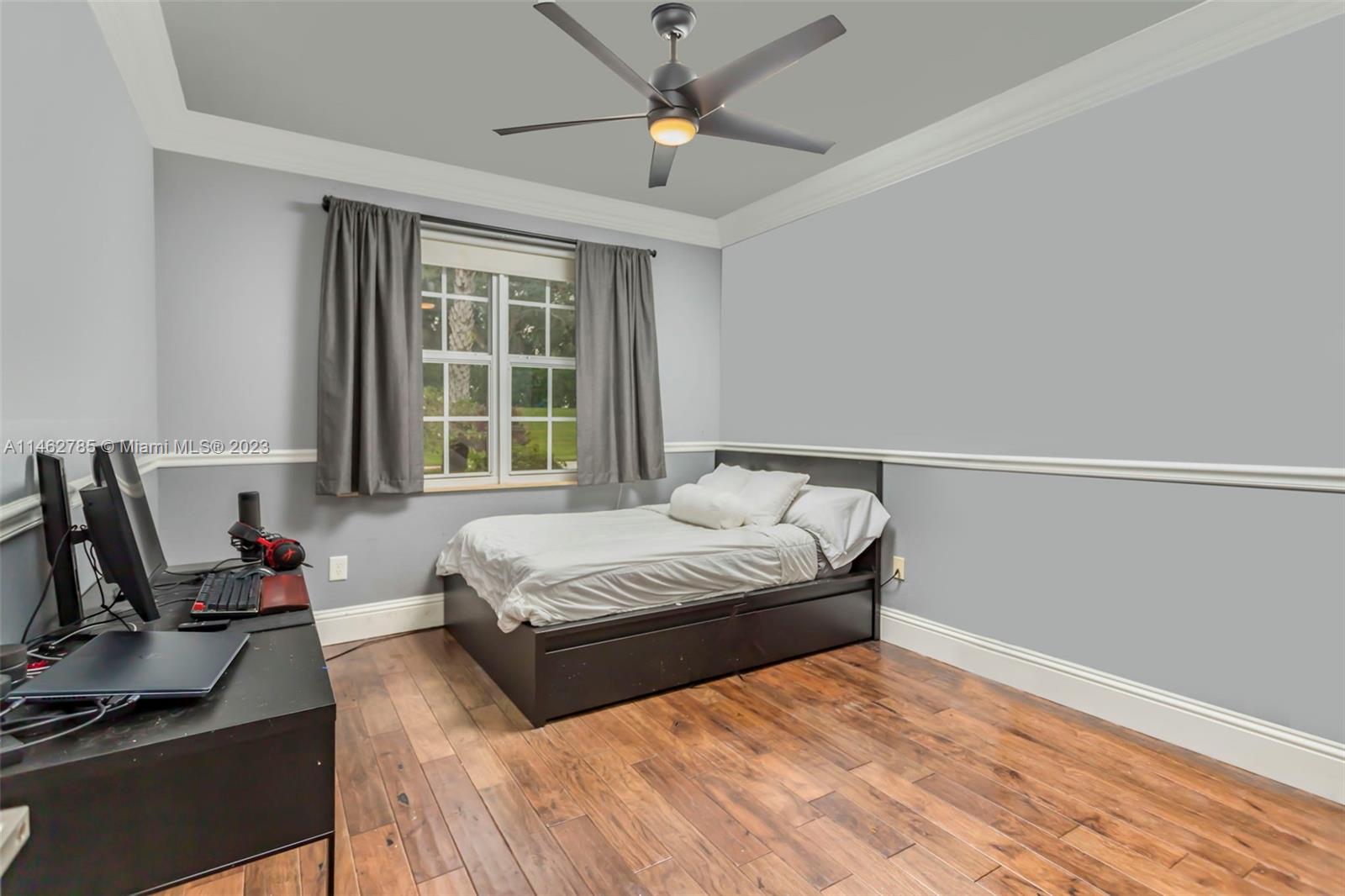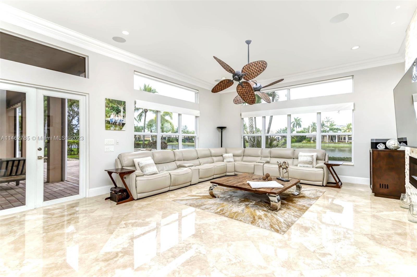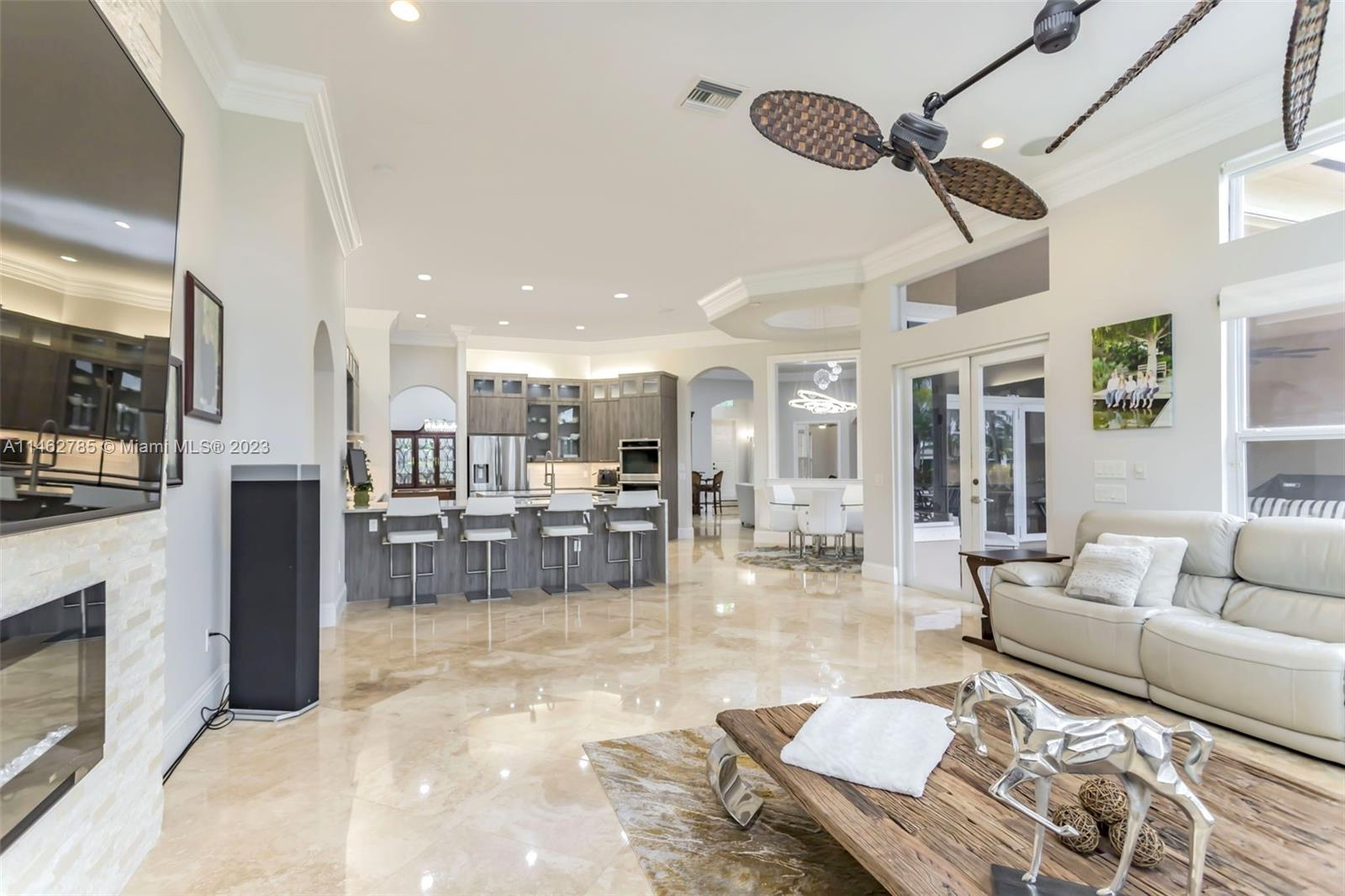 Gorgeous remodeled home, 5 beds, plus office, plus music/workout room. Home has impact windows & large accordion shutters on patio to protect outdoor furniture. Kitchen fully remodeled w real Quartzite stone countertops w waterfall edges, all new stainless steel appliances, sink & faucet. Travertine floors throughout common areas & handscraped wood floors in bedrooms. Bedrooms have custom closet cabinetry. All new modern chandeliers & ceiling fans throughout. Newer ACs & water heater. 1 full bath & half bath just remodeled. Brand new remote controlled blinds in family room. Primary bedroom has 2 large walk in closets & 2 large bathrooms. Huge pool w Jacuzzi, huge backyard. Lush landscaping. Garages w new epoxied floors. Surround sound speakers throughout. Pickle ball/tennis/playgrounds.