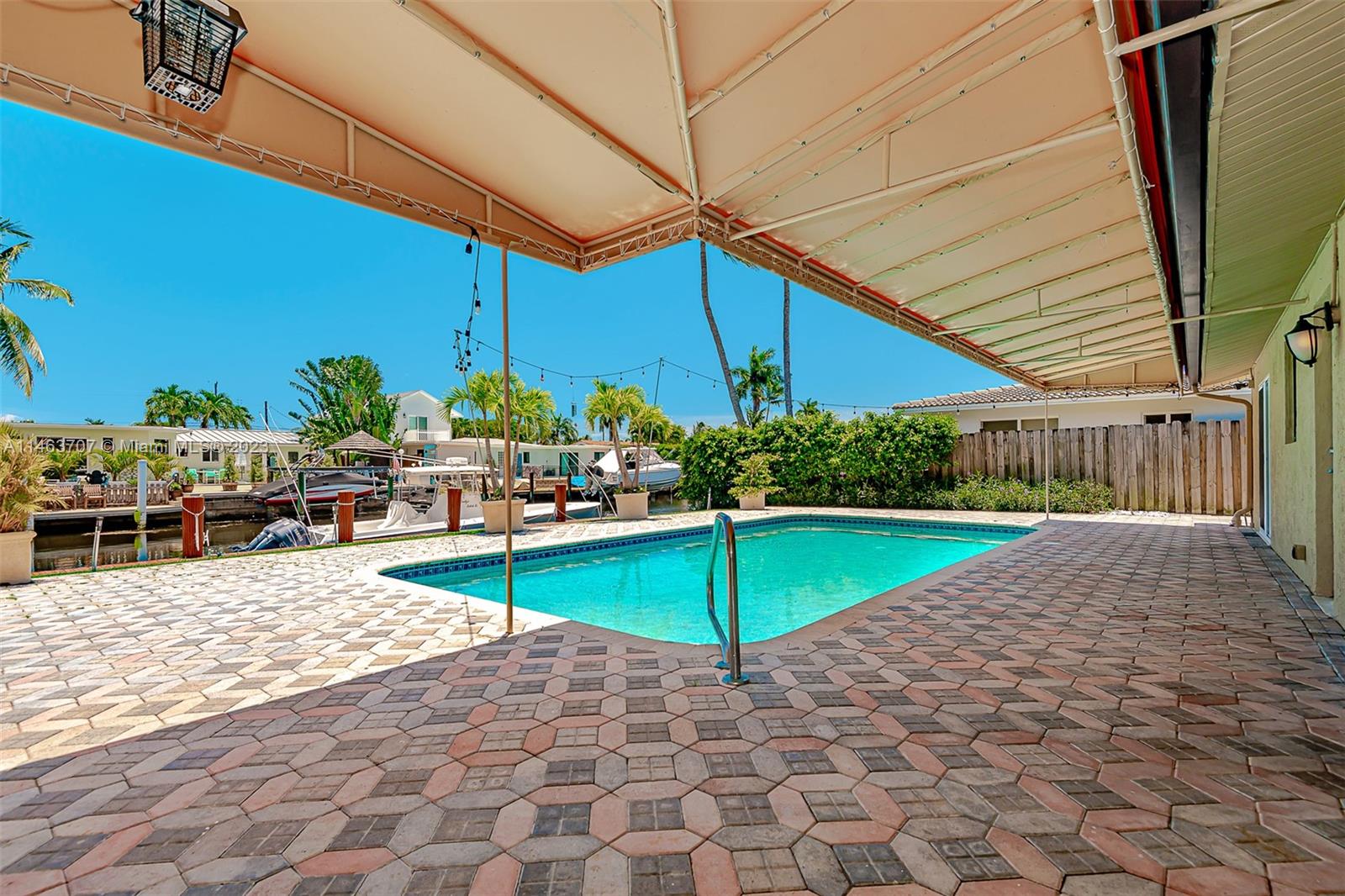 Calling all boaters check out this beautiful home , 70ft on the water with ocean access. 3 bedrooms and 2 bathrooms, with an inground swimming pool. Updated kitchen has travertine floors, dark cabinets, and granite countertops. For all the cooks out there, this kitchen has a gas cooktop with grill, high end. Tankless gas water heater. All impact windows and doors, including garage door, helps with insurance costs. Roof 2009. Cabana bath that leads to covered patio and swimming pool, fenced back yard. Large boat dock for boating to the ocean, with 2 fixed bridges. Both bridges have the same clearance, brand new 5th Ave bridge, see photo in listing, 2nd bridge is Federal Hwy.