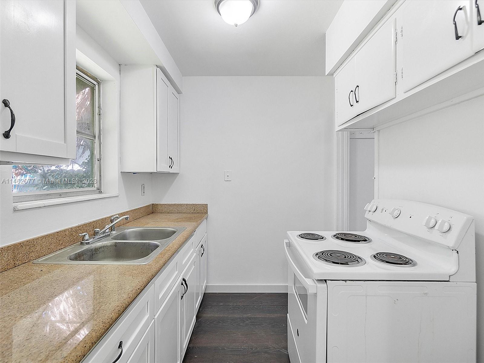 Single family home with 3 bedrooms and 2 Bathroom in Fort Lauderdale with no HOA! Renovated floors with wood laminate and tile. Freshly painted. Kitchen with wood cabinets, and granite countertops. The open floor plan seamlessly connects the living room, dining area, and kitchen, providing an ideal layout for gatherings and daily living. Separate utility room for laundry equipment. Step outside to enjoy Florida's sunshine and breezy evenings in the huge backyard, perfect for hosting barbecues, playing with pets, or gardening. There's plenty of room for outdoor furniture and a potential pool or garden. Driveway fit 2 cars. Brand new A/C units. Shutters in all the windows. This property is conveniently located Est to I-95, close to Downtown Ft Lauderdale and the Beach.