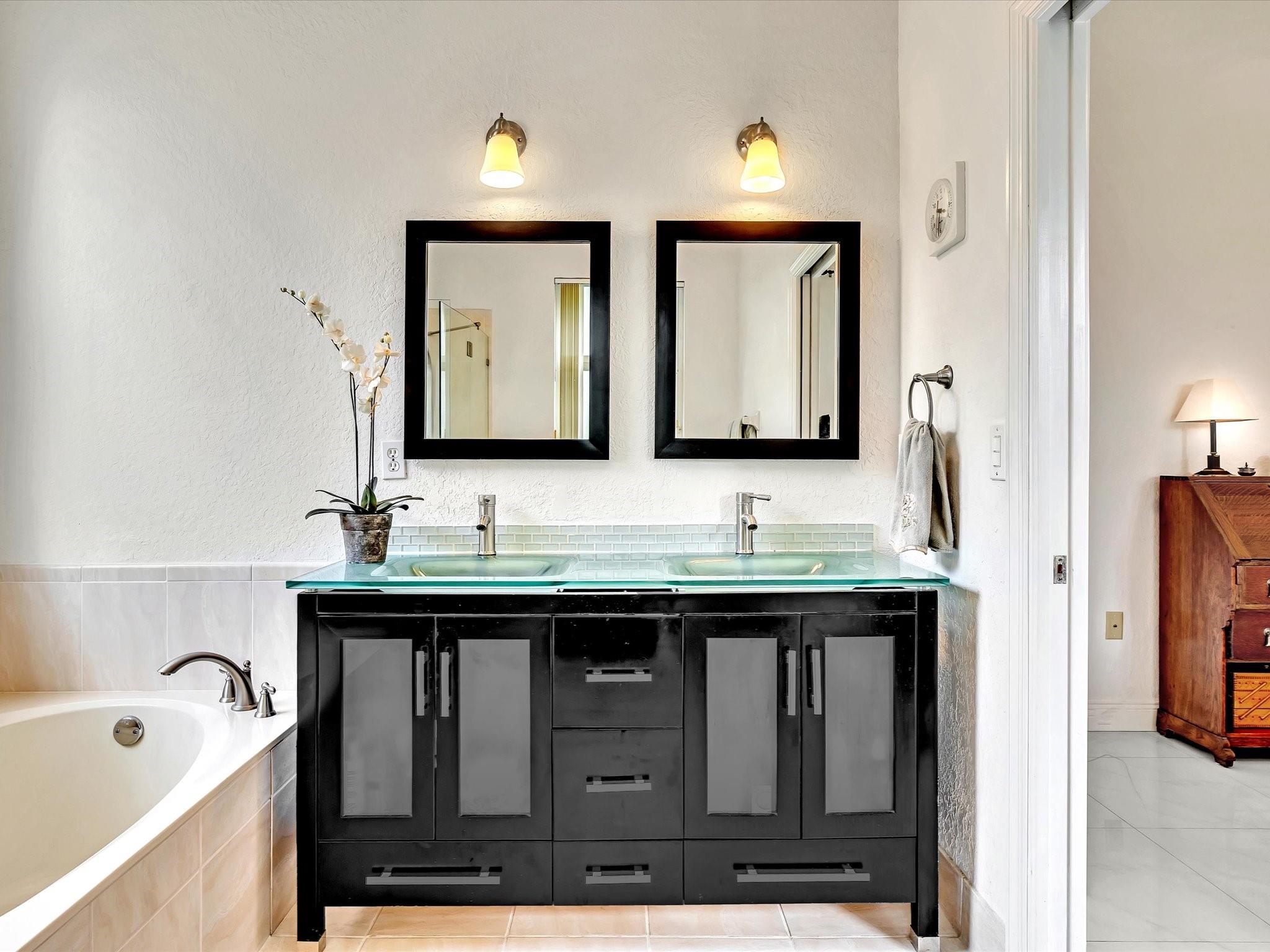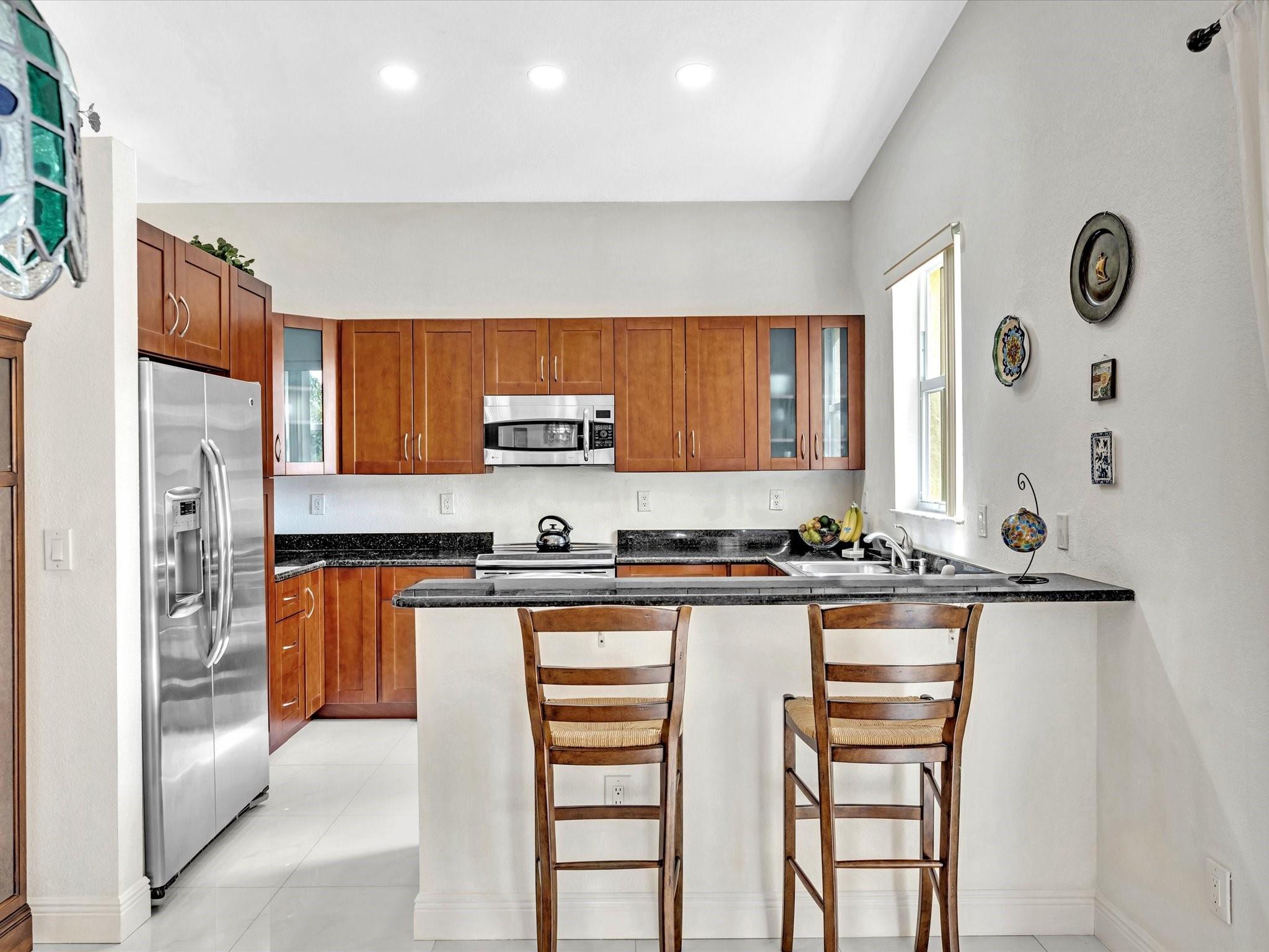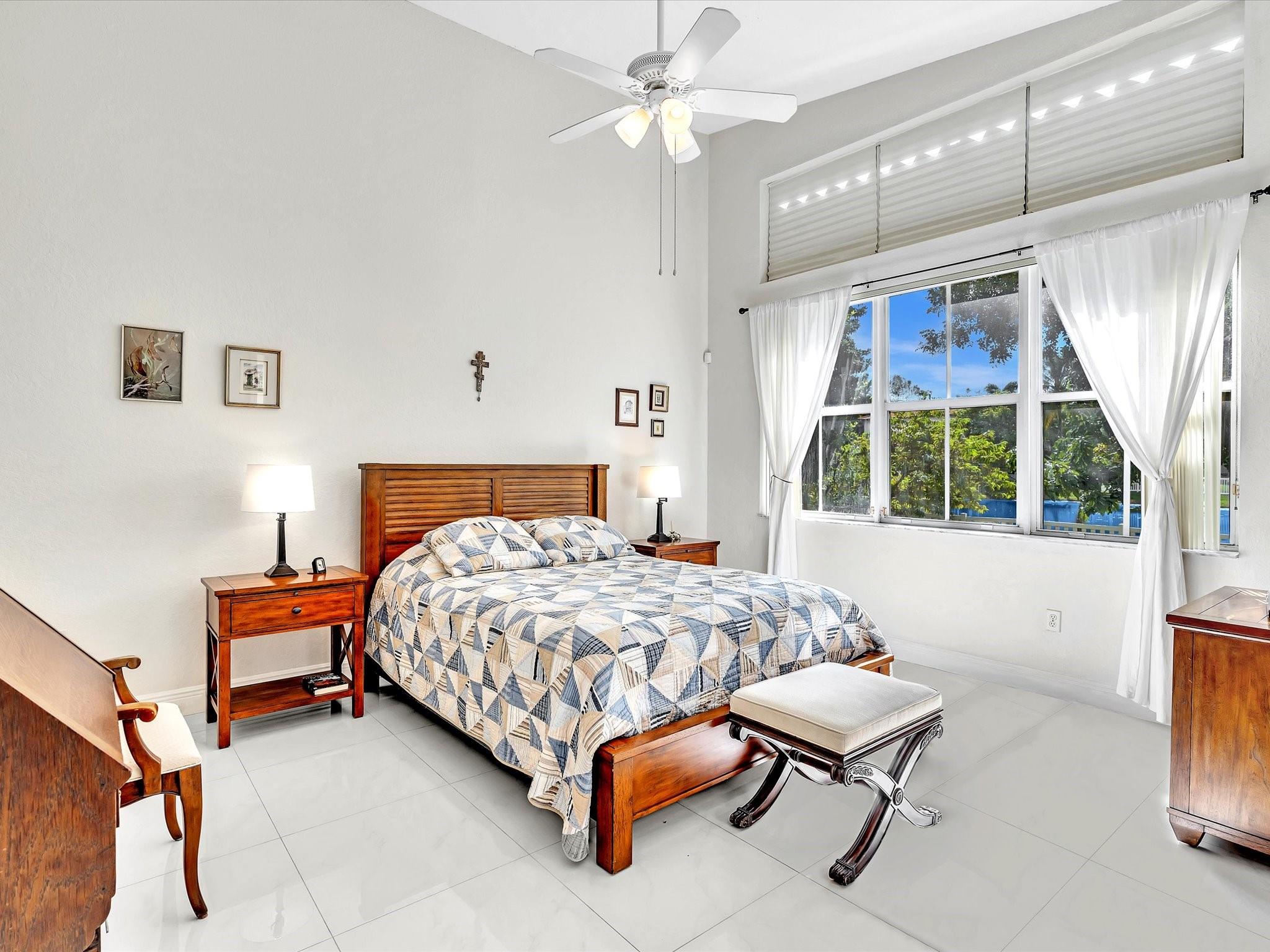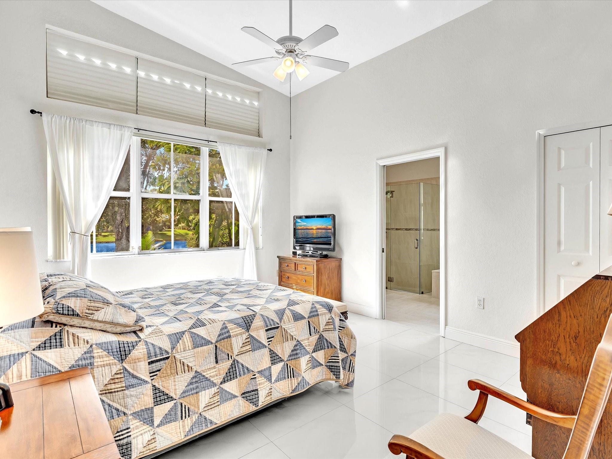 Welcome to your perfect oasis! This meticulously updated lakefront home has a gourmet kitchen with rich wood cabinets including 3 lazy-susan's, stainless appliances with a double oven & granite counters. Spacious primary bedroom ensuite has a walk-in closet with Elfa shelving and a bathroom with an updated dual sink vanity, spa shower & soaking tub. The fenced yard has fruit trees and a screen enclosed patio providing front-row seats to breathtaking sunsets over a tranquil lake for those who appreciate the serenity of lakeside living. This pristine home has gorgeous white porcelain tile, volume ceilings & neutral paint throughout. Recent updates include a tankless water heater, sprinkler system which draws from the lake, garage door motor and springs all replaced in 2021.