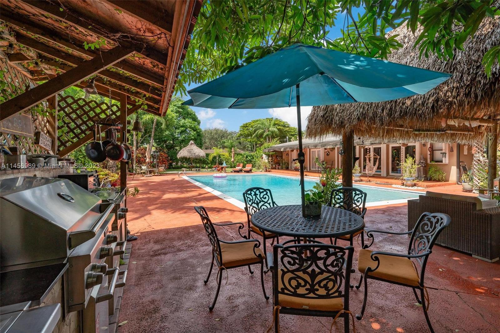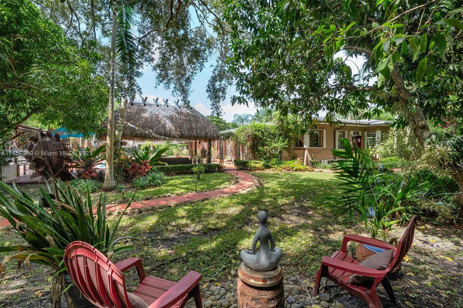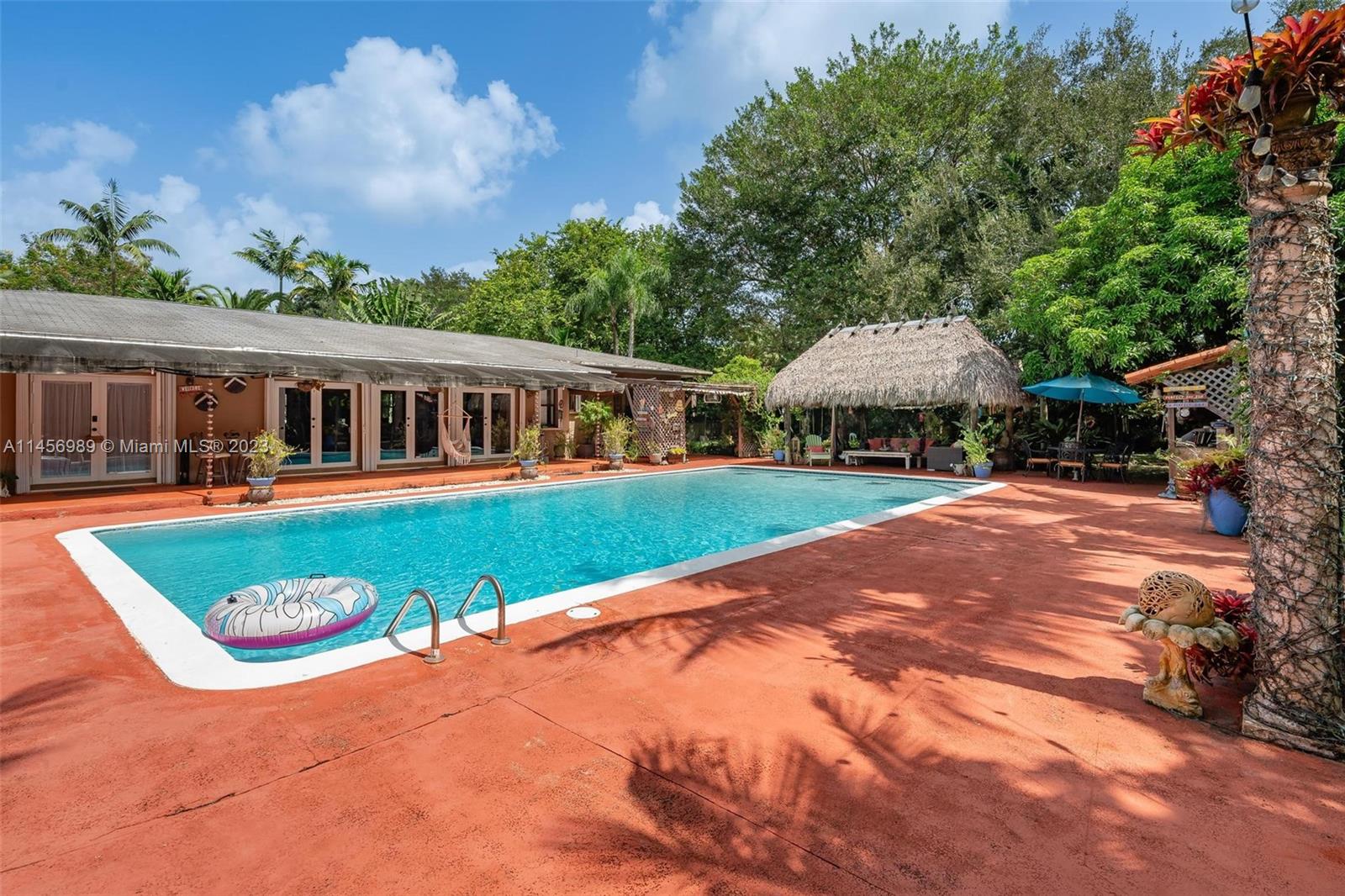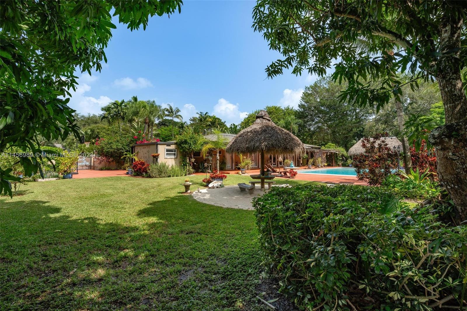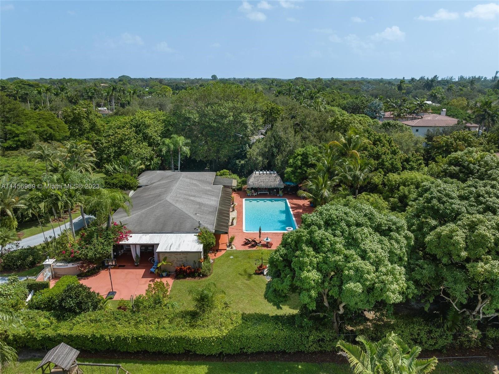 Paradise on Earth! Experience this amazing, one-of-a-kind resort style Villa in one of the most desirable & quiet area of Pinecrest. Surrounded by lush foliage, sweeping views of lavish gardens offering sanctuary of peace & tranquility. Estate offers remodeled Kit, 4 baths adorned w/ stone & marble. French doors offers views of sparkling pool, fruit trees &array of palms. Discover versatile 27X13 space perfect for office, theatre or wine cellar. Dual Master Suites, sitting area, volume ceiling, cedarwood closets, new A/C, X Zone. Your private Oasis complete w/ Tiki hut, hammock & summer kitchen perfect for leisure & entertainment. Embrace living space that surpasses tax roll. Expansion plans available. Centrally located w/ renowned schools, upscale shopping & fine dining. It will not last!