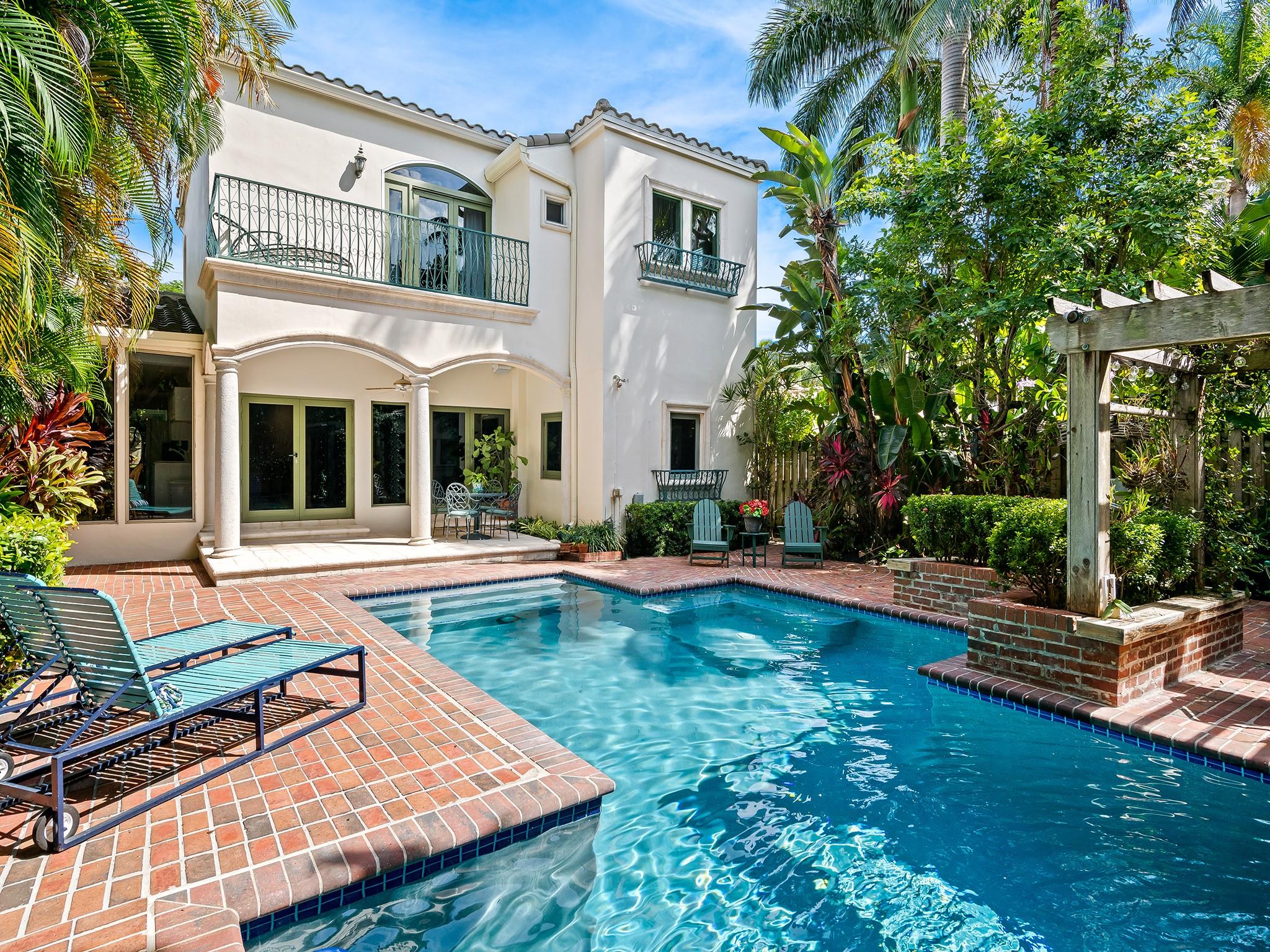 Perfectly situated in the highly desirable Idlewyld neighborhood, this charming & spacious 3 bed, 2.5 bath home w/ office, living, family,& dining rooms features; fabulous high ceilings, newer kitchen appliances, newer guest bath, fireplace, functional floor plan perfect for entertaining family & friends, and gorgeous lush expansive private poolside oasis w/ a gas grill, snack bar, & shed. The over sized pool was recently updated w/ tile, marcite, & showcases a water fall! Roof 2016. 2nd floor master suite with spa like bath & natural light! Idlewyld is a secret haven with sidewalks that offers walkability to beaches, dining, and shopping. 24 hour video surveillance cameras at both entrances, nightly patrol, and semi gated! Don't miss out! Address is also known as SE 26th Ave.