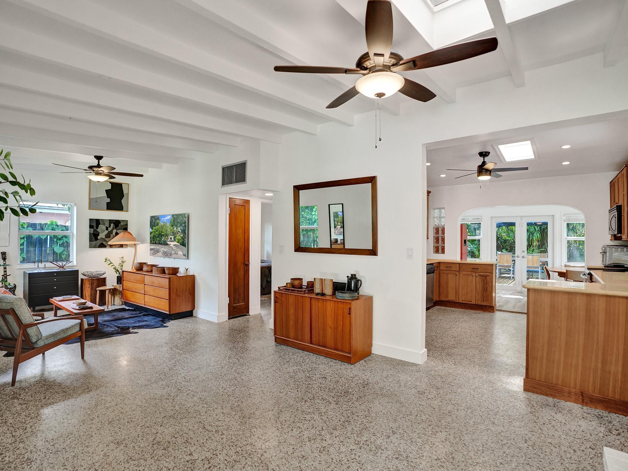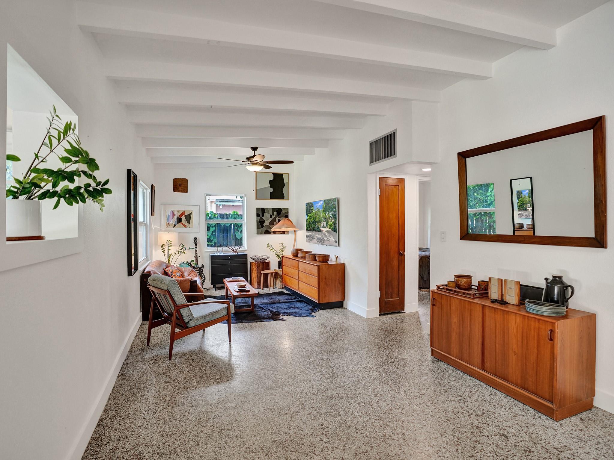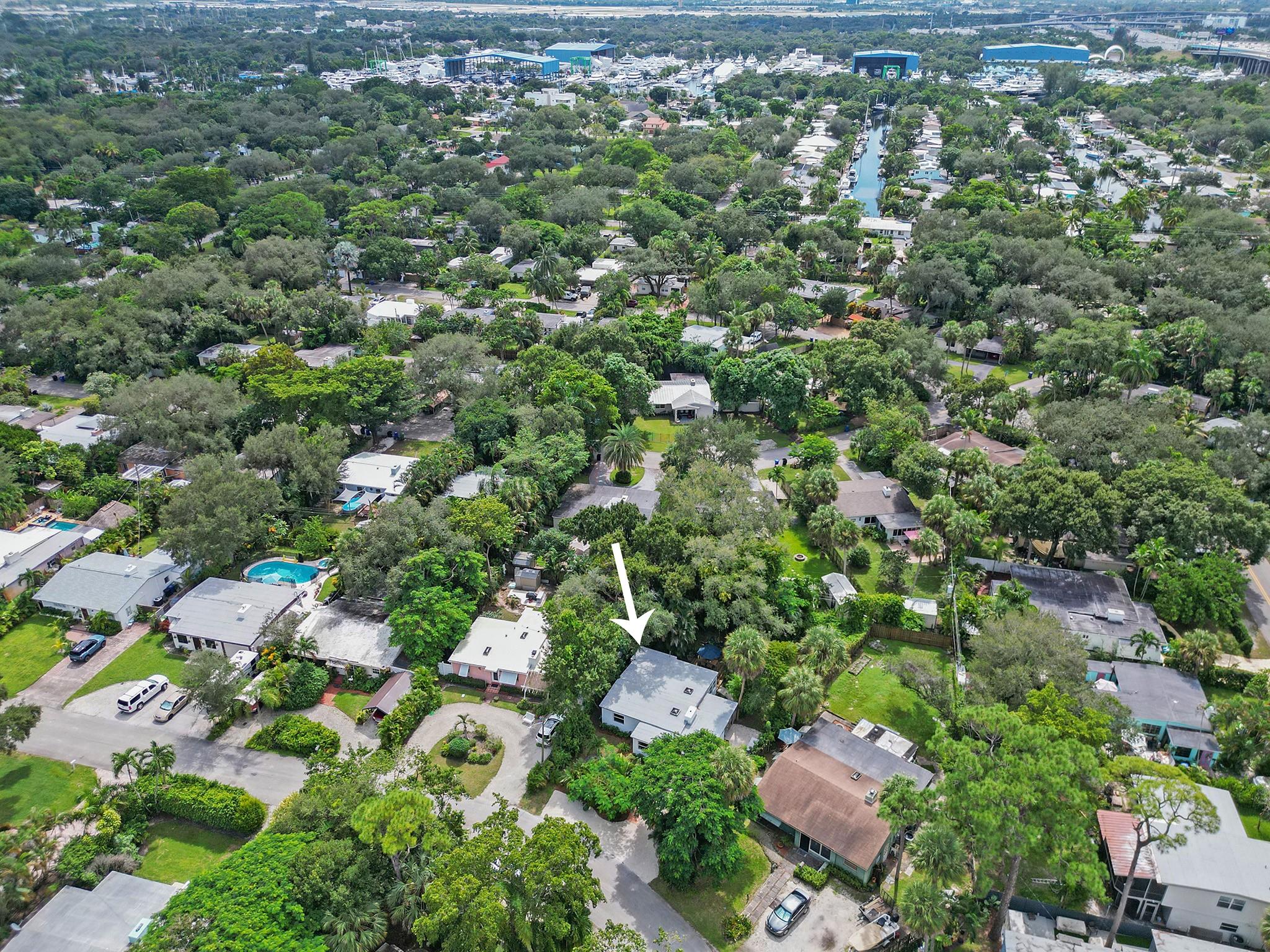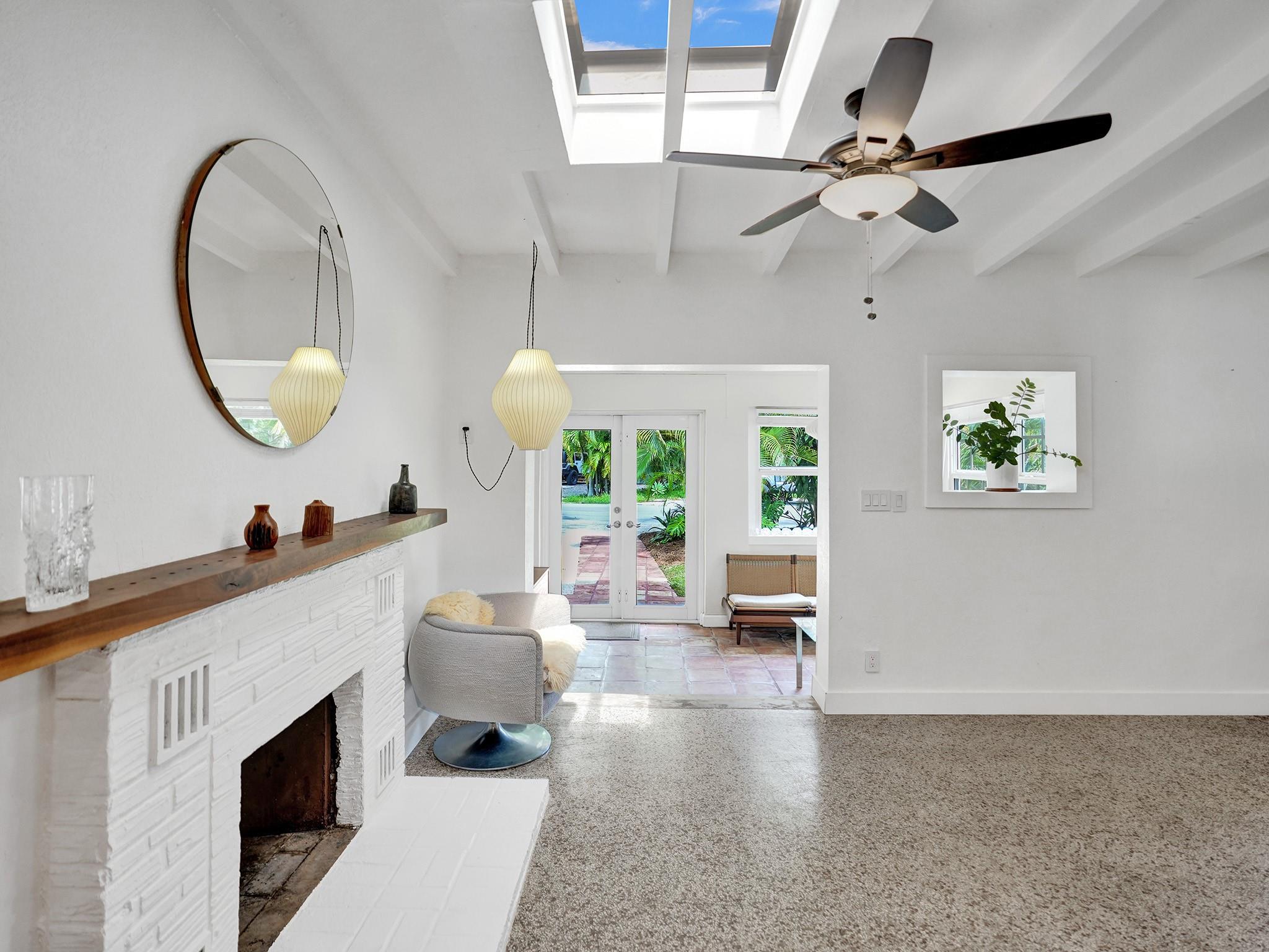 Mid Century Delight! 2 bed 2 bath Home in Sought After Shady Banks. Polished Terrazzo Floors, Exposed Beam/Vaulted Ceilings, Fireplace. Freshly Painted Interior& Exterior. New Roof 2023, Impact Windows/Doors. Big Open Kitchen w/ Great Storage. Tankless Water Heater(2022) Natural Light from the New Skylights. Primary Bedroom has Additional Sitting Area/Office Space w/ French Doors leading out to the Back Yard. Sunny Dining Area off the Kitchen Leads to Large Deck Area - Enjoy Morning Coffee & Evening Cocktails Big Backyard Surrounded by Mature, Tropical Landscape. This Home Offers the Perfect Tranquil Retreat but is Minutes from Downtown, Las Olas &the Beach. One Way In/Out, surrounded by the New River, No Through Traffic & 2 Parks Make this East Ft Lauderdale's Hidden Gem Neighborhood.