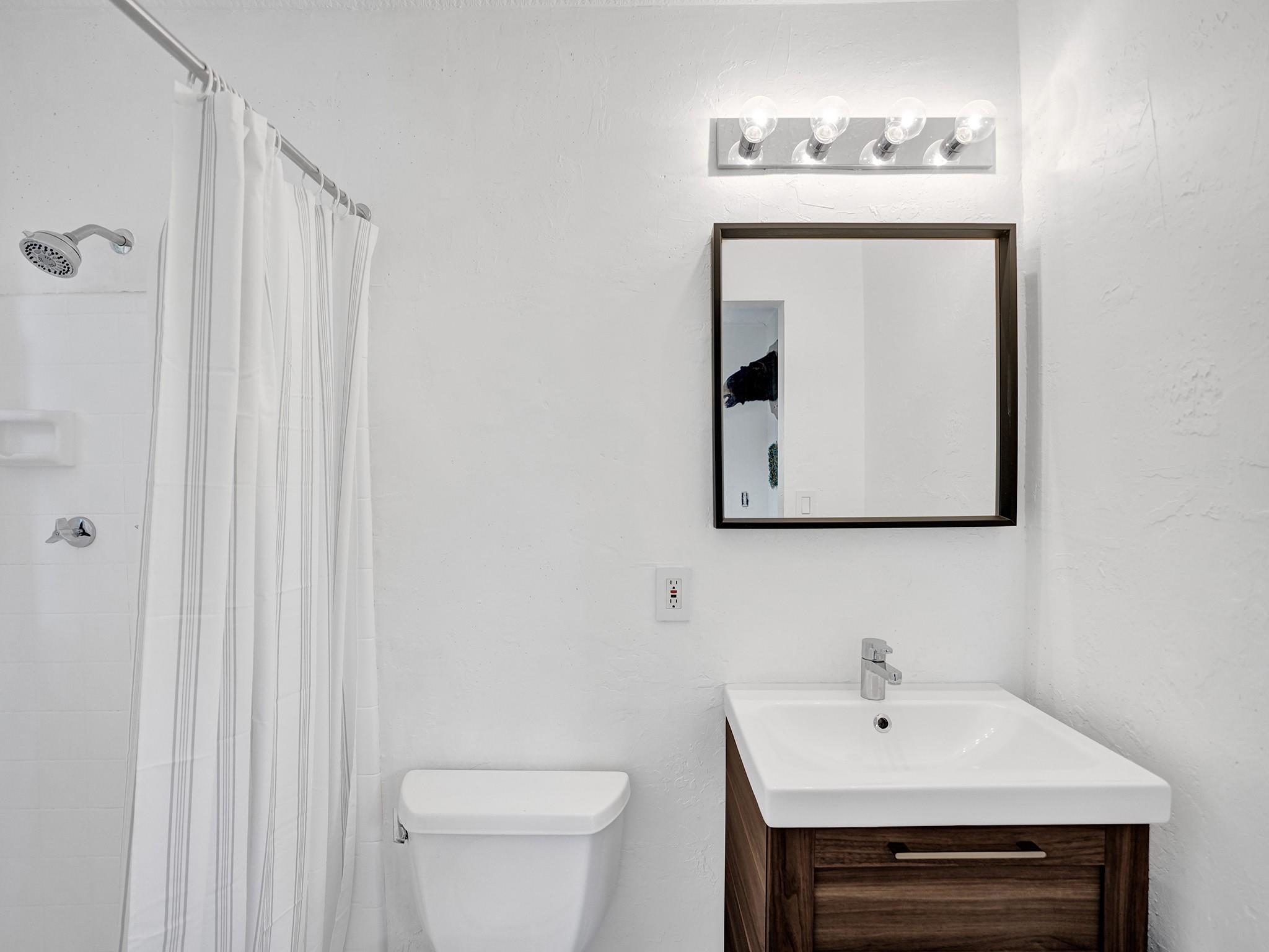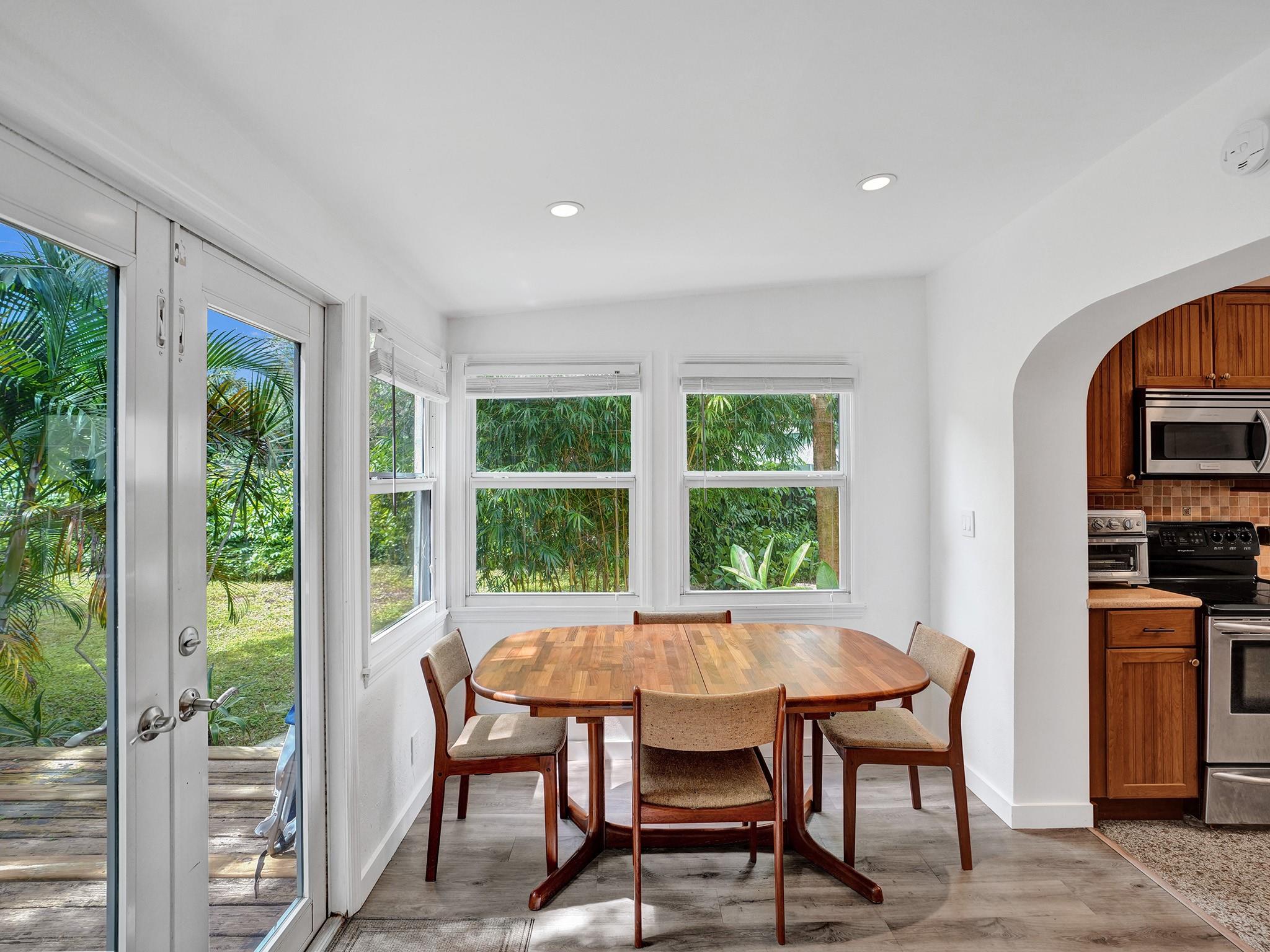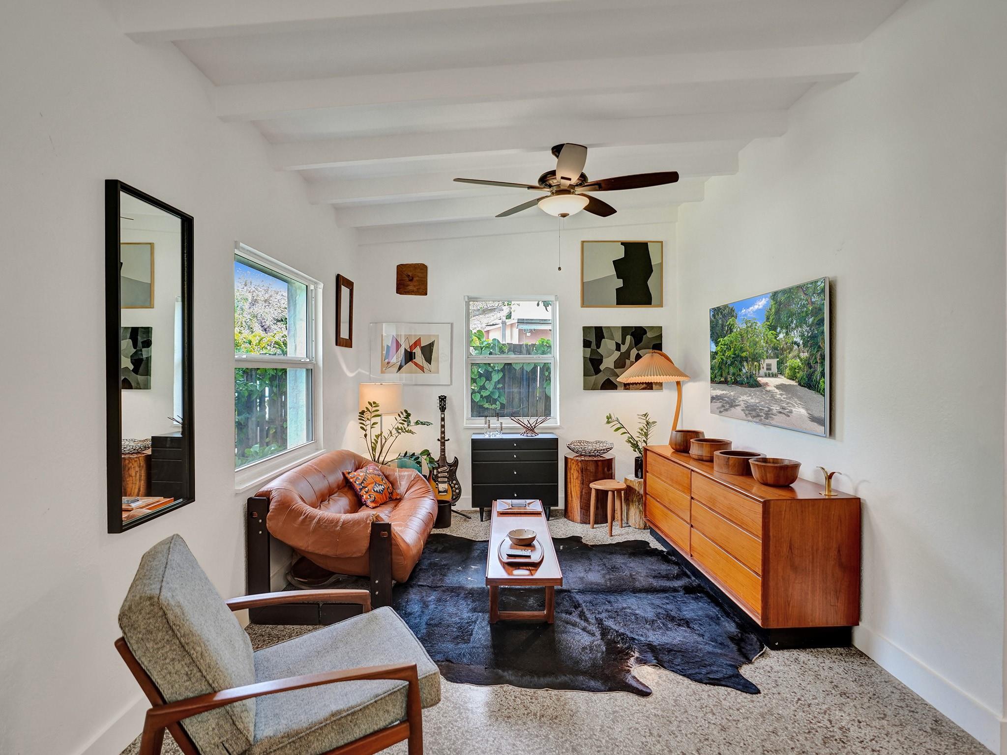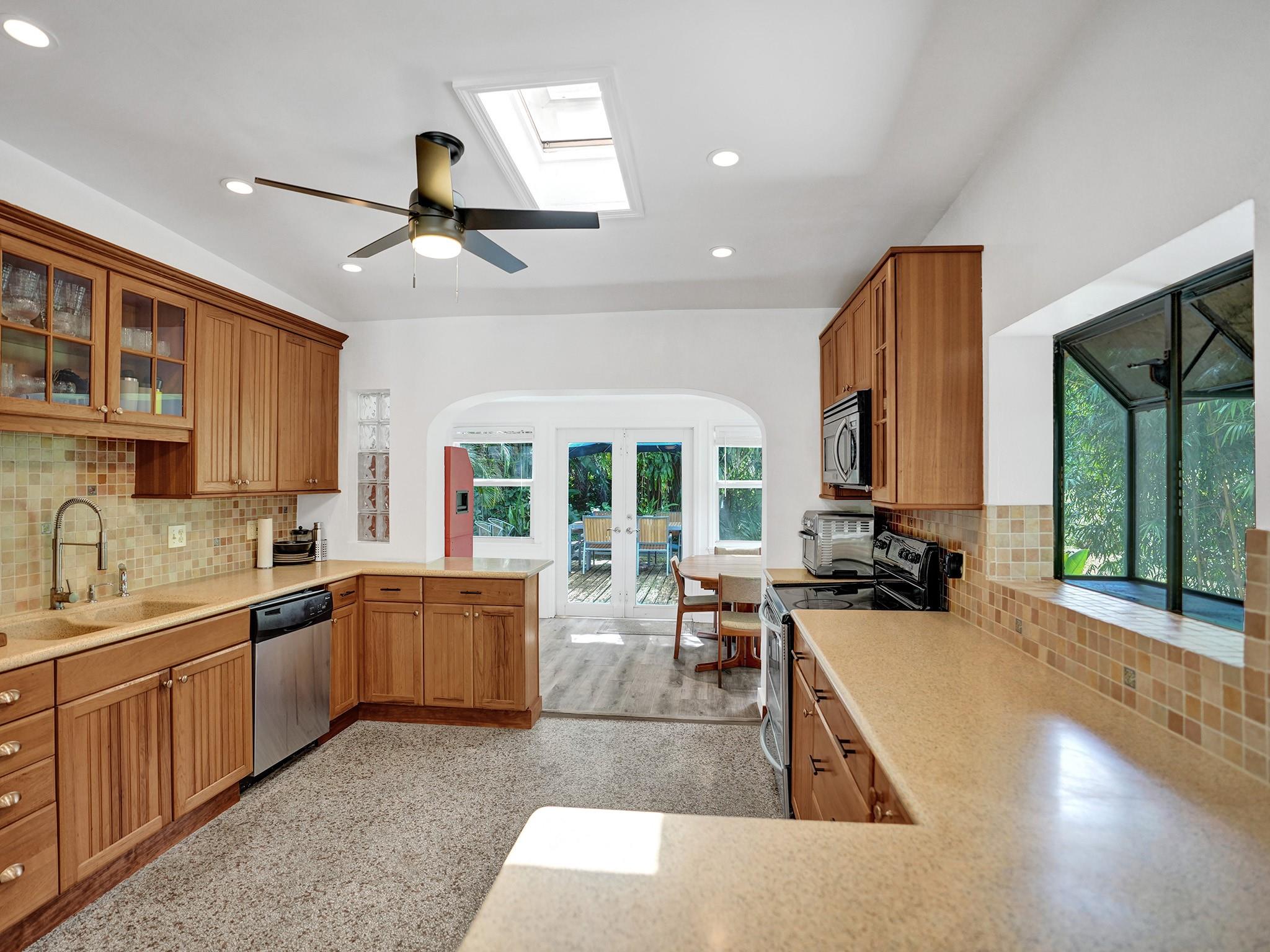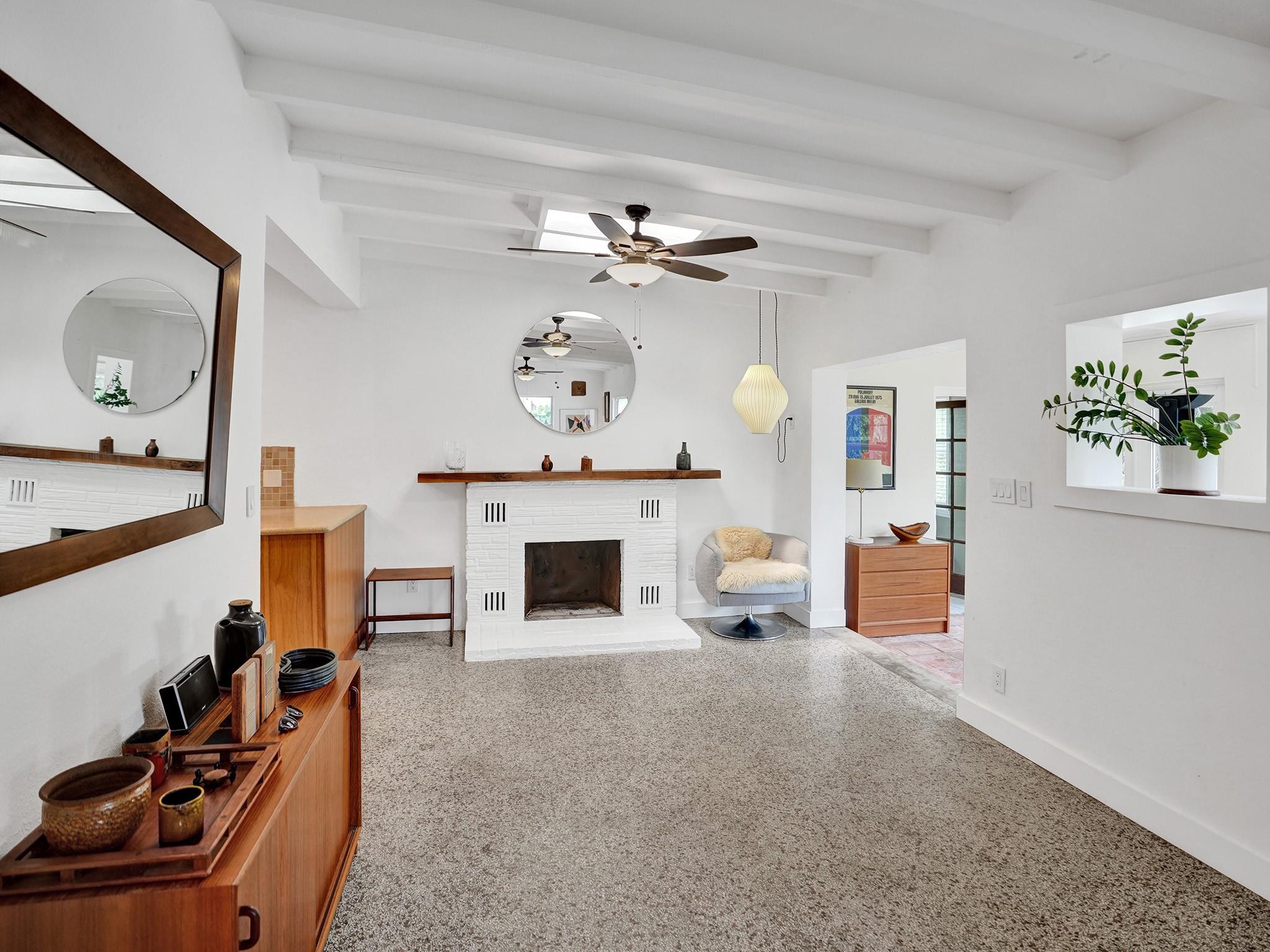 Mid Century Delight! 2 bed 2 bath Home in Sought After Shady Banks. Polished Terrazzo Floors, Exposed Beam/Vaulted Ceilings, Fireplace. Freshly Painted Interior& Exterior. New Roof 2023, Impact Windows/Doors. Big Open Kitchen w/ Great Storage. Tankless Water Heater(2022) Natural Light from the New Skylights. Primary Bedroom has Additional Sitting Area/Office Space w/ French Doors leading out to the Back Yard. Sunny Dining Area off the Kitchen Leads to Large Deck Area - Enjoy Morning Coffee & Evening Cocktails Big Backyard Surrounded by Mature, Tropical Landscape. This Home Offers the Perfect Tranquil Retreat but is Minutes from Downtown, Las Olas &the Beach. One Way In/Out, surrounded by the New River, No Through Traffic & 2 Parks Make this East Ft Lauderdale's Hidden Gem Neighborhood.