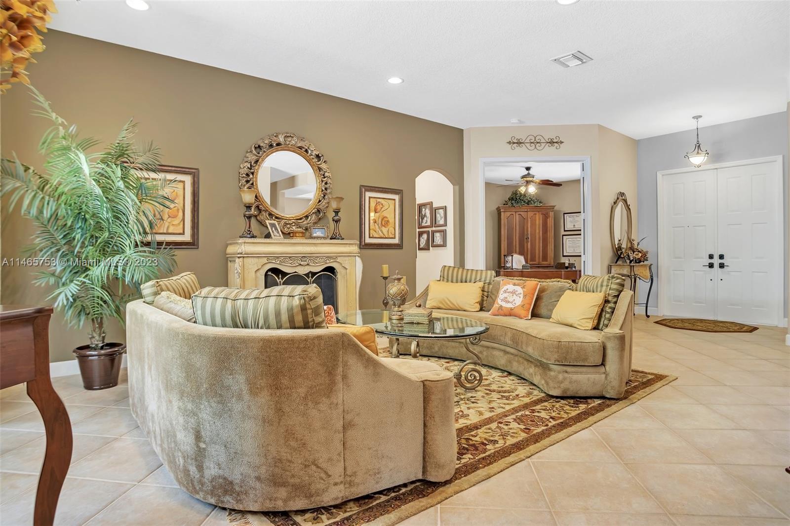 Impeccably maintained Cordoba model in Windsor Palms community. This home features 4 bedrooms, 3 bathrooms, plus an Office/Den, triple-split bedrooms, a large master bedroom with his and hers walk-in closets, formal dining room, a spacious kitchen with stainless-steel appliances, and a large family room with breakfast nook. Beautiful outdoor living area with heated pool, hot-tub, gorgeous landscaping, and lots of privacy! Also features mahogany hardwood floors in all bedrooms, security system, and a 3-car garage with built-in Gladiator steel storage cabinets. Conveniently located close to schools, shopping, and restaurants, with easy access to I-75. Bring your buyers, as this move-in ready home will not last!