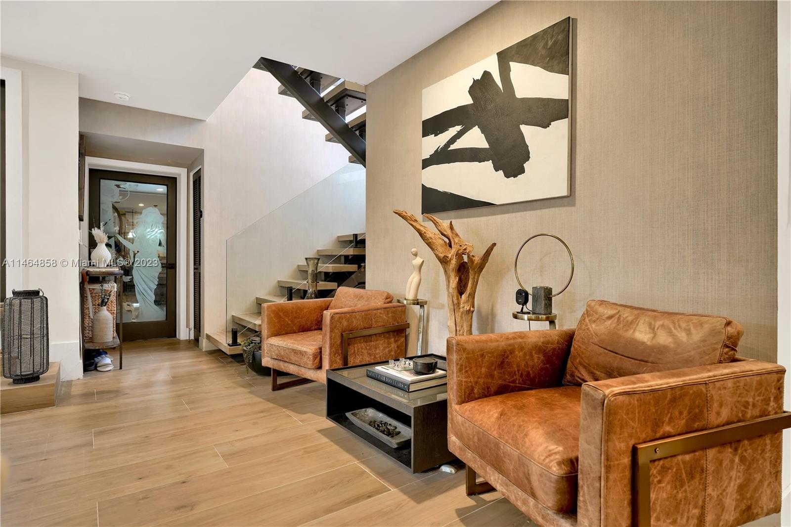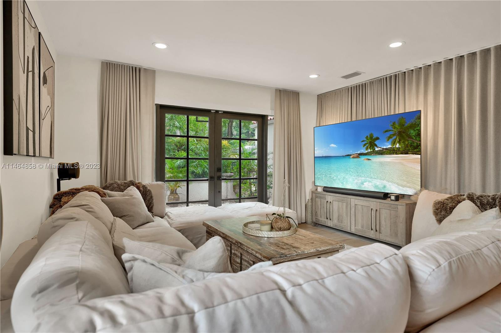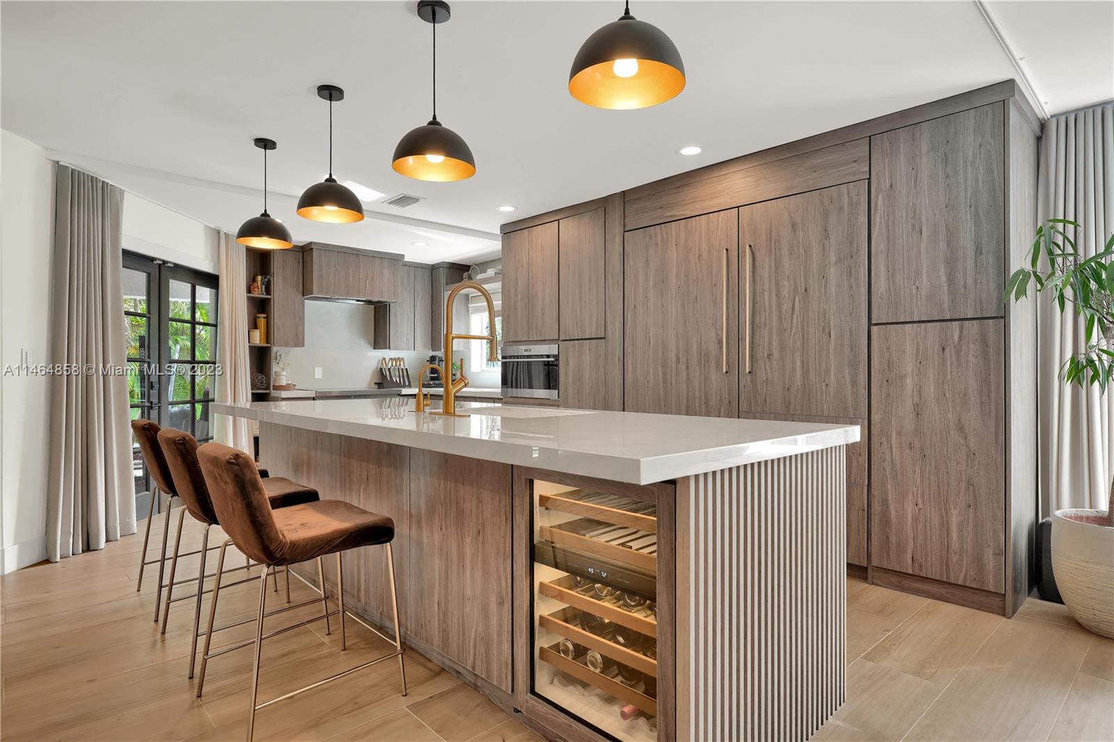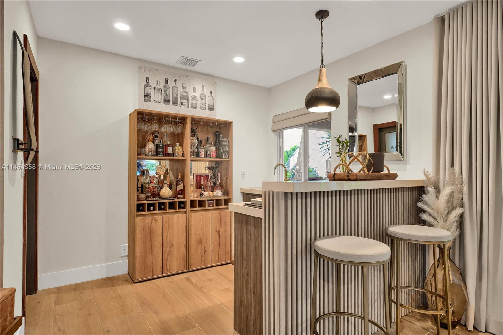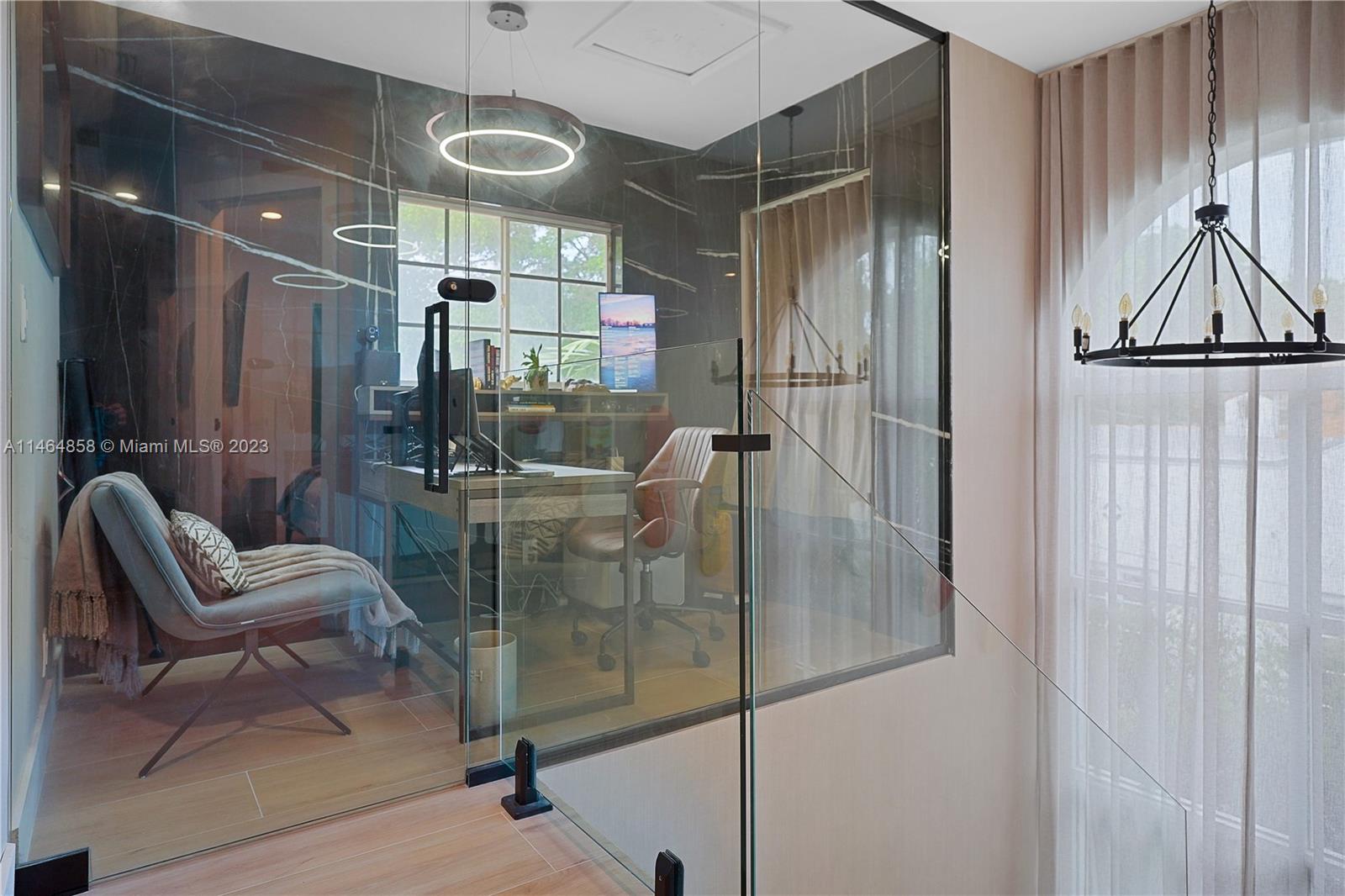 Exquisite Coral Gables Oasis, walking distance to The Plaza on Ponce de Leon and downtown Gables. This gem boasts a designer kitchen, Wolf/Subzero appliances including steam oven, wine cooler, oversized fridge/freezer, water filtration, glass-enclosed office, bathed in natural light, invites productive days. Unwind in the spa-like master bathroom, your personal retreat. So many luxuries...Kohler fixtures, 2 new A/C's, smart tech lighting, camera/surveillance/alarm system, new washer/dryer, Nest A/C control, textured straw wallpaper, wide plank ceramic floors, custom millwork, privacy curtain in family room, one car garage, room for a pool. Luxury and convenience converge in this charming sanctuary. Your dream home, waiting to embrace your every desire, awaits you in beautiful Coral Gables.
