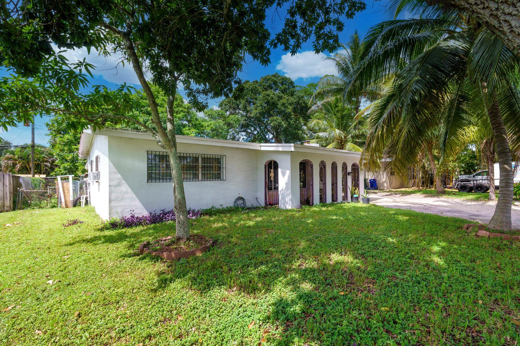 This home sits on such great yard space both front and back with great possibilities to add on (expand home) or build a carport or attached garage, needs your renovating touches, sun room, enclosed front patio, den/living room, ceramic tiled floors, 3 bedrooms and 2 bathrooms, 3rd bedroom can be a nice office space, kitchen w/granite counters, wood beam ceilings, fenced yard, lots of trees (coconut, ackee, mangos, neeseberry etc, Central location minutes to downtown, beaches, park, shopping, eateries, HCA Hospital, short drive to Ft Laud Golf & Country Club, No HOA, Come make this special home yours, As Is Contract Sale