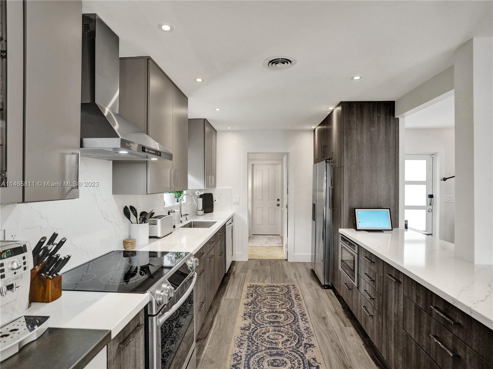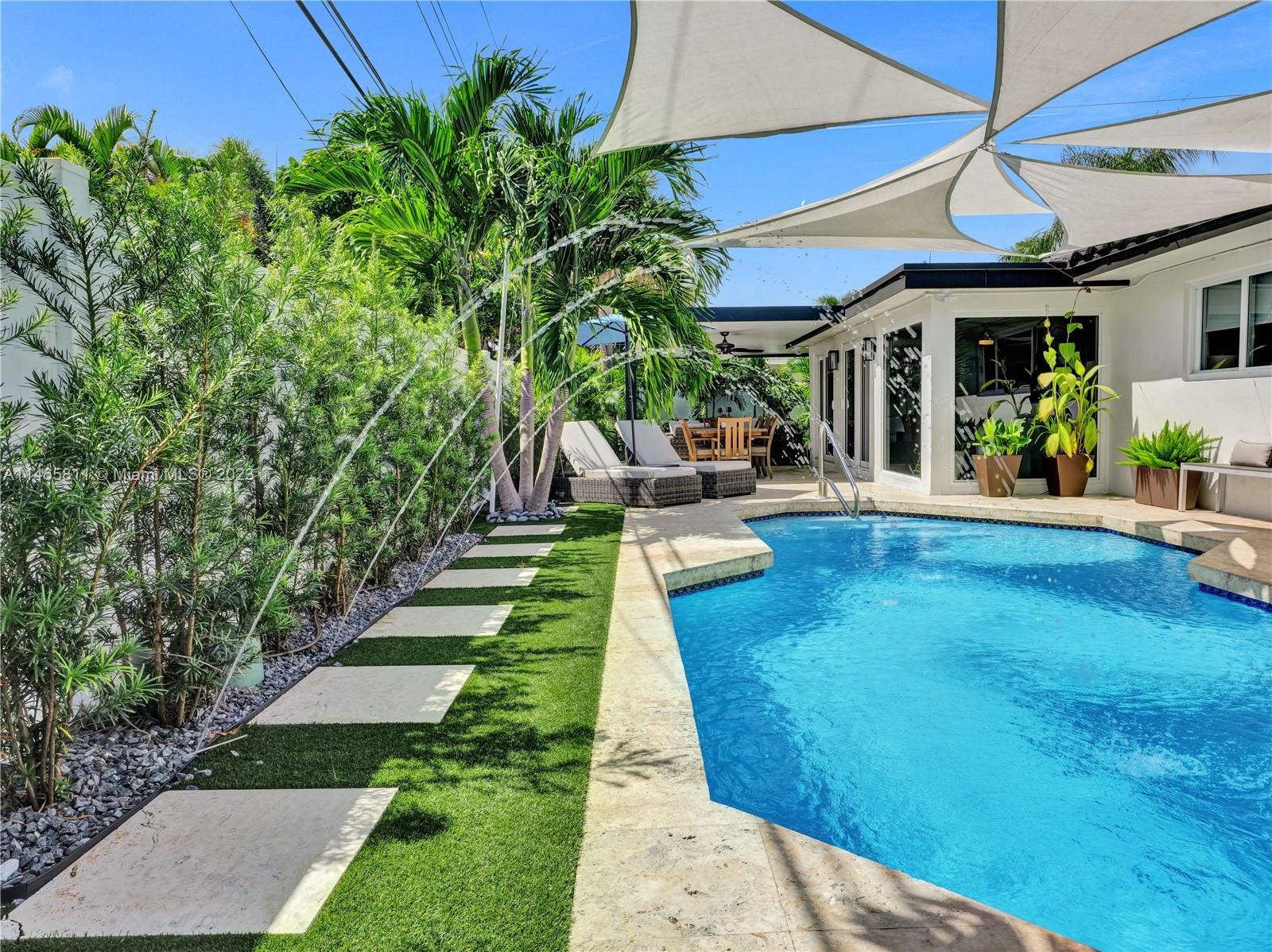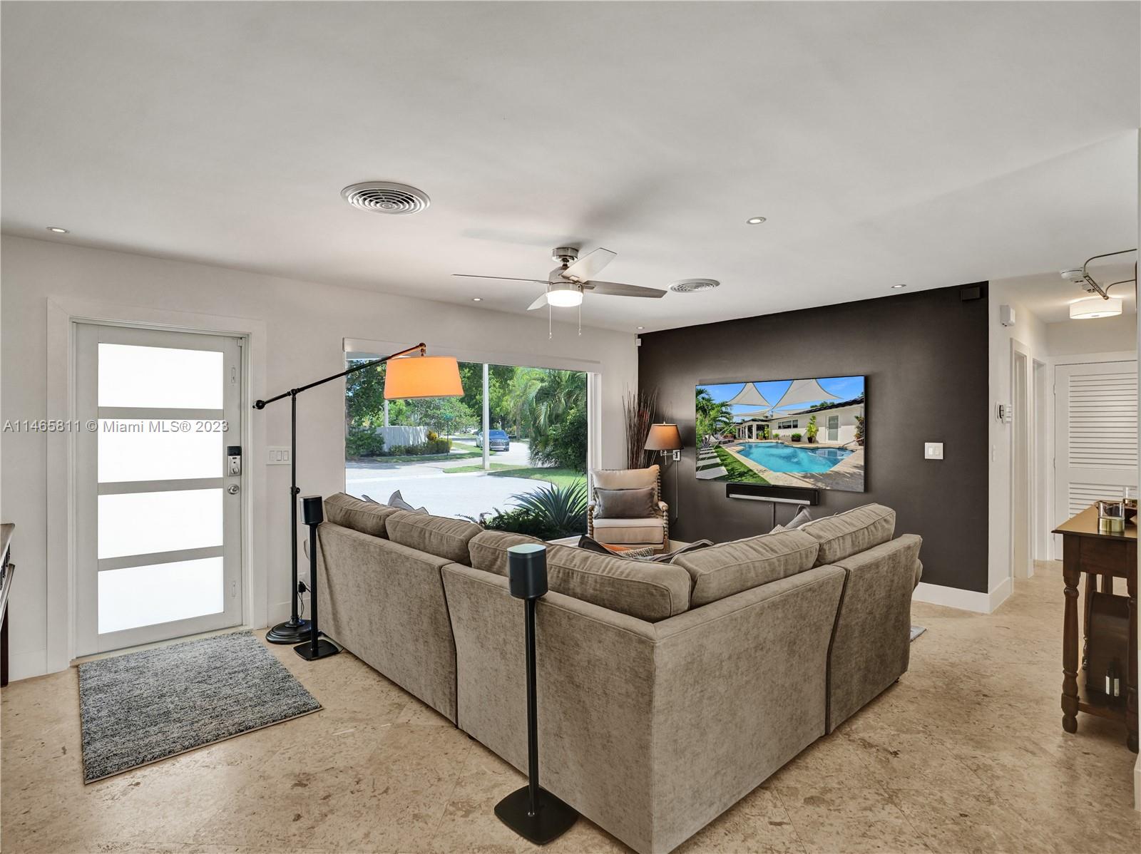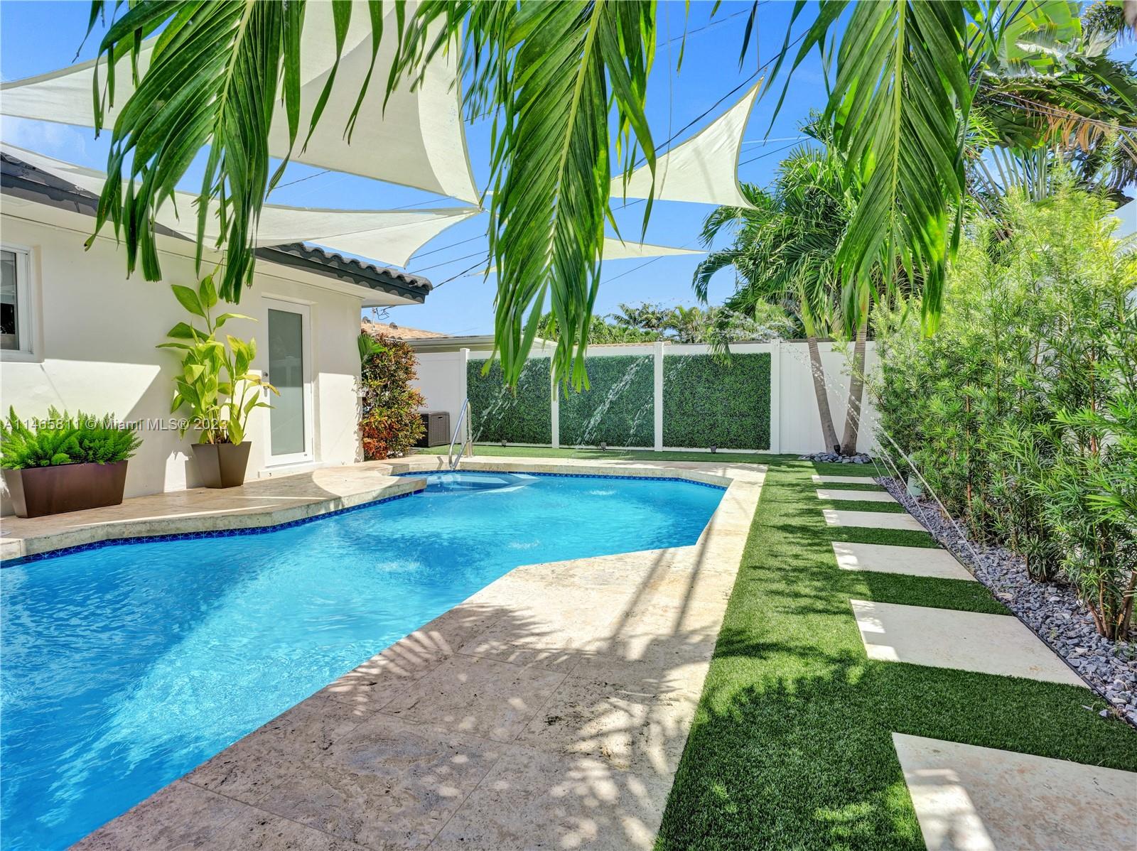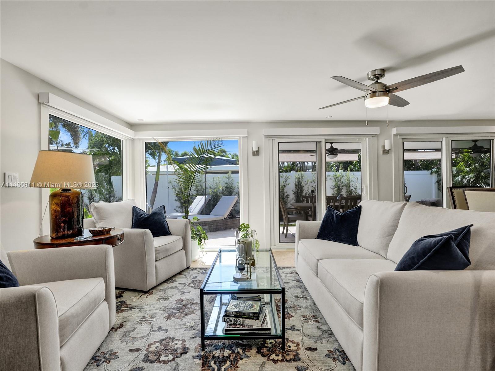 2/2 PLUS office! True tropical indoor/outdoor living in coveted Imperial Point – Minutes to Beaches. Open concept home with stone floors, Huge kitchen w/ quartz counters & separate bar area with 3-zone cooler & glass cabinets.