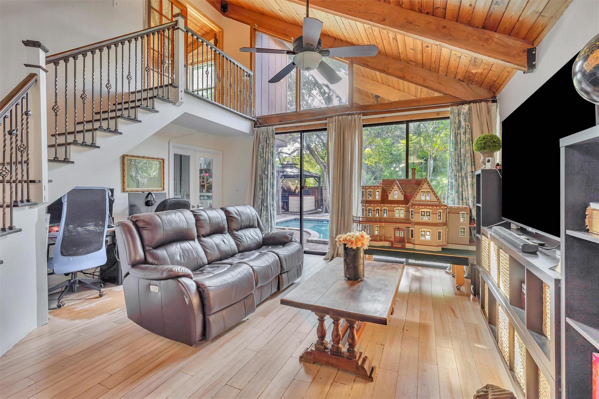 Distinctive and unique corner unit townhome has a single-family home feel! This hidden gem is located on a Cul-de-Sac in beautiful Palm Aire. Open concept floor plan has 3 bedrooms and 2 baths. Primary bedroom and loft are located on the second floor. The bedrooms have ample closet and storage space. The loft can be used as an office, playroom or nursery! The living area is light and bright and accentuated with vaulted and wood beam ceilings. Enjoy Florida outdoor living on the large, screened patio that's perfect for entertaining! Backyard bonus is your very own Private Swimming Pool! The property has a beautiful view of the nature preserve and the yard is fenced. Community is Pet Friendly! Roof 2022, Partial Impact Glass 2022, Electrical Panel 2022! Welcome Home!!!