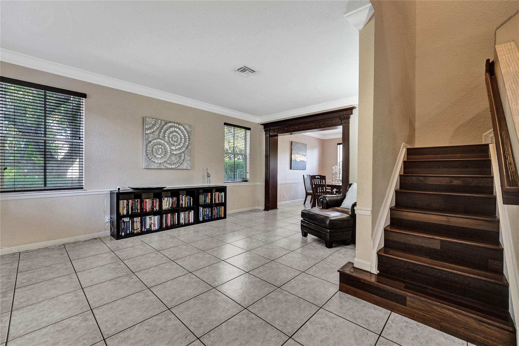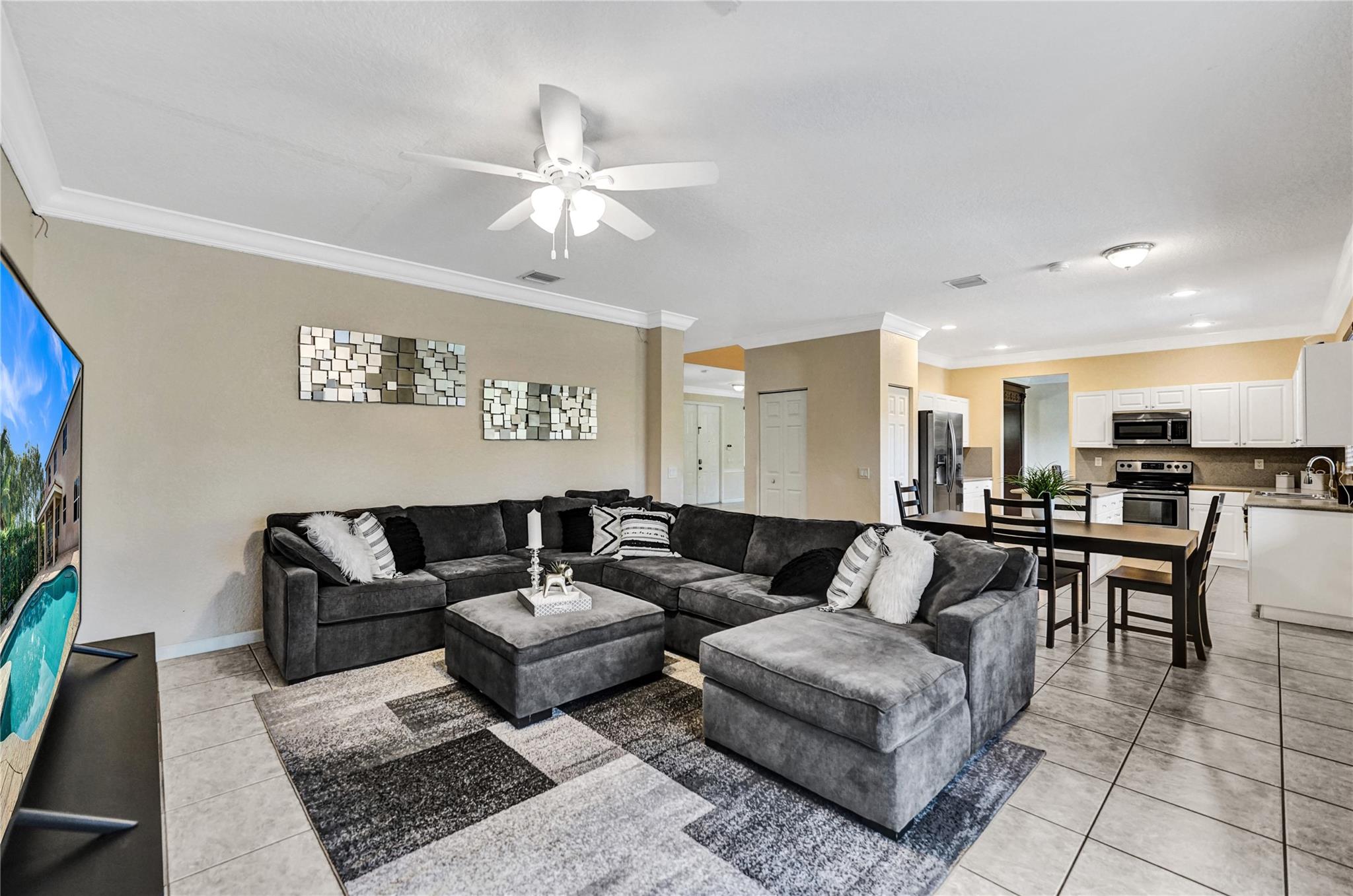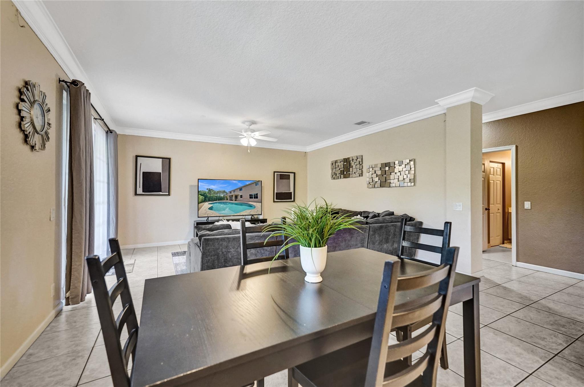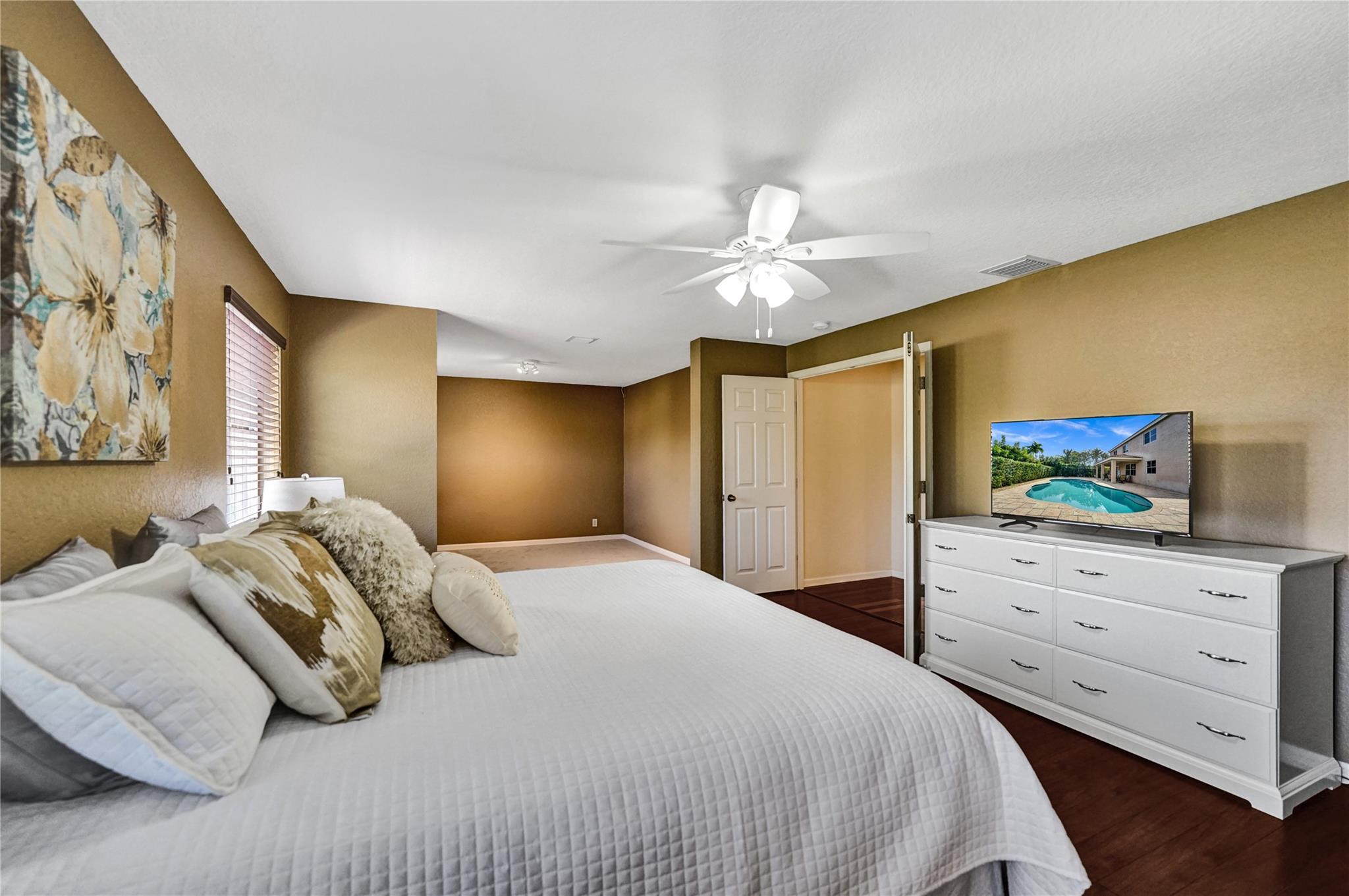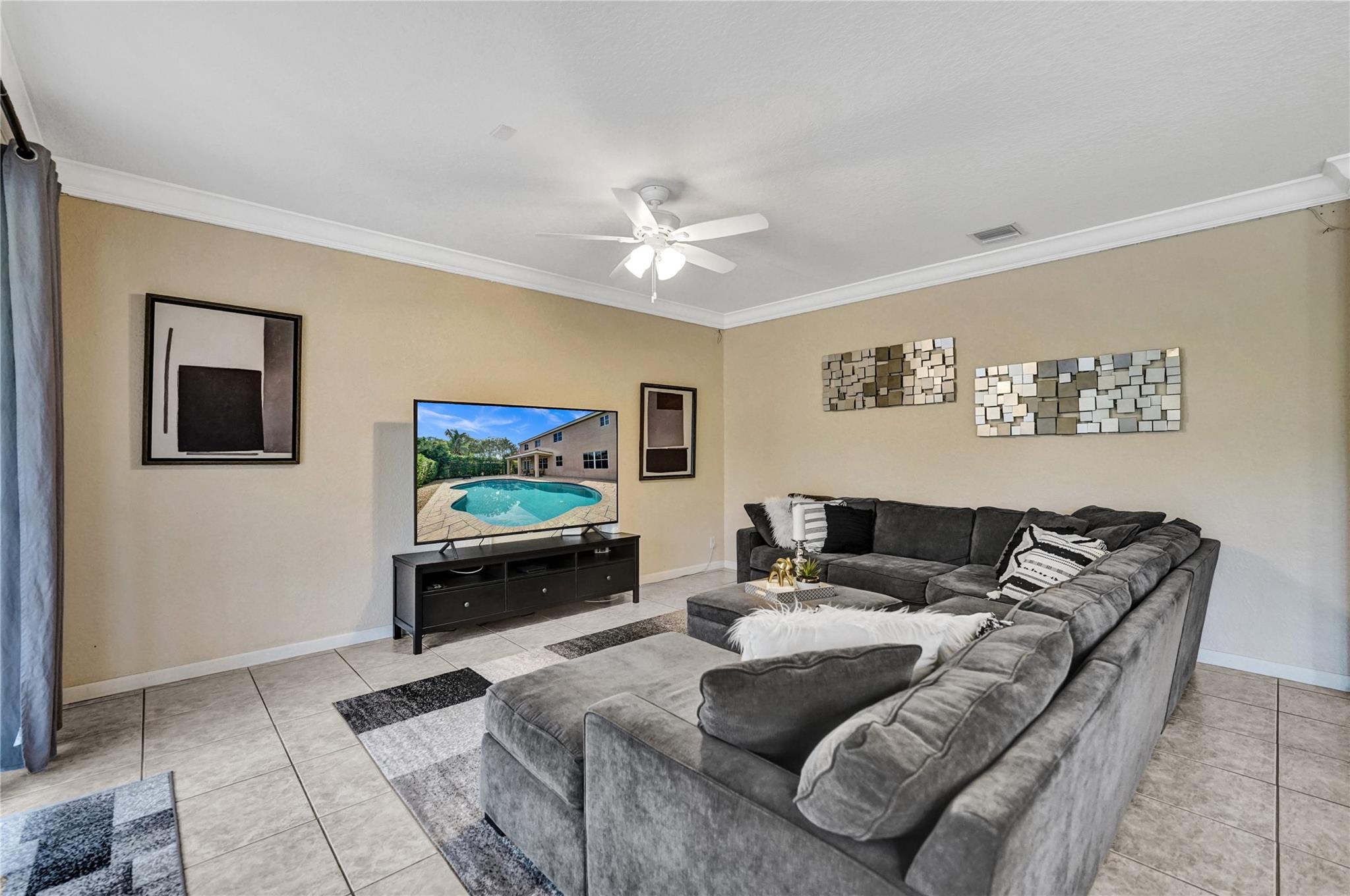 Incredible Lily model on a corner lot, boasting over 3K sqft of living area. This spacious home features 5 bedrooms, 4 full baths, and 2 bonus rooms, offering versatility and ample room for your needs. The upgraded kitchen with a center island is perfect for culinary enthusiasts. The formal dining room is adorned with elegant moldings, while the large family room with volume ceilings provides a comfortable gathering space. A bedroom and bathroom on the main floor offer convenience. Upstairs, a huge master suite with an oversized sitting area awaits, complemented by beautiful wood floors throughout. Step outside to an oversized covered paver patio, open pool, and private fenced yard. A perfect retreat for outdoor living.