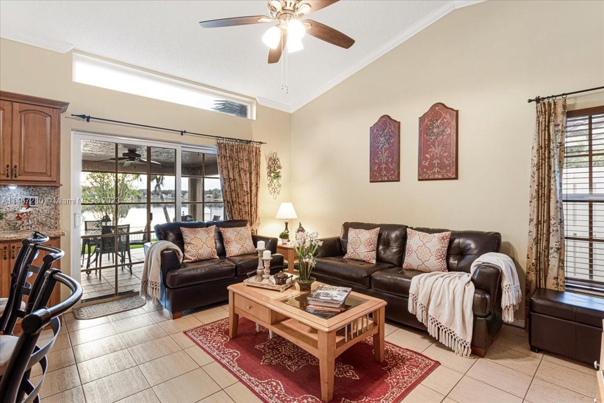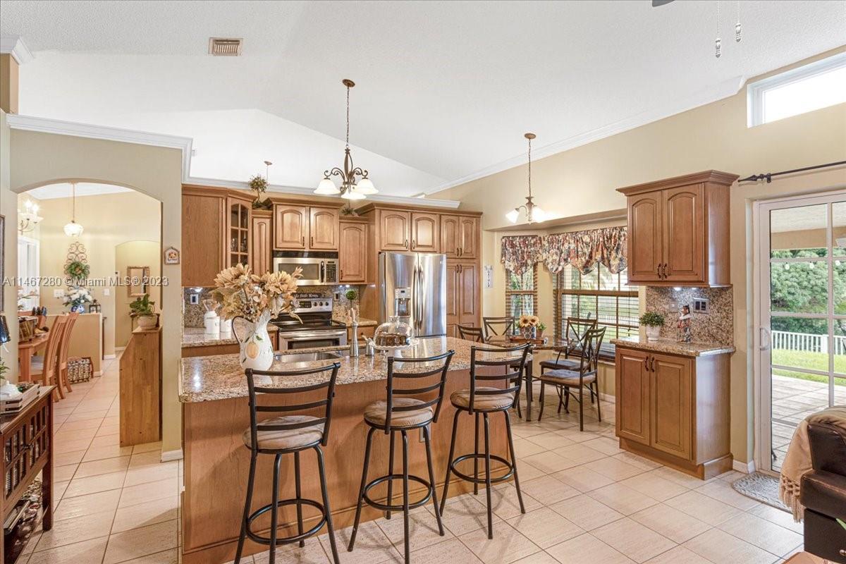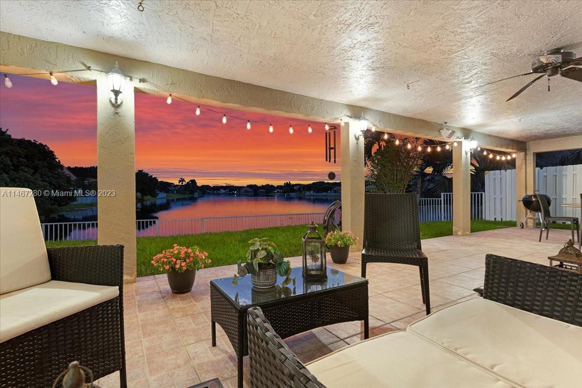 Florida Luxurious Life Style at its Best! Entertainment paradise located in the exclusive community of Flamingo Estates. This home sits on a lake front lot on a tropical paradise w/ breathtaking sunsets views from every living area. Split floor plan w/ 4 bedrooms 2 full bath & 2 car garage. Large open kitchen w/ island, wood cabinets & granite counters w/ stainless steel appliances. Master Bedroom retreat w/ large sliding class doors that overlooks the Lake. Master Bathroom w/ a shower & a roman tub. A large custom made covered terrace 54' 10" x 14' 7" that is just perfect for cooking & entertaining large parties.Roof is just 5yrs old, Impact windows & doors,A/C & Water Heater 2021. Low Association, just $66 per month. Come see & experience this Florida Tropical Paradise!