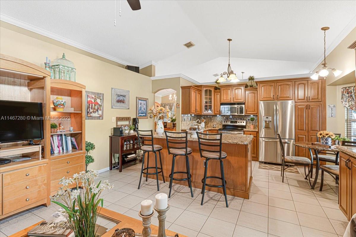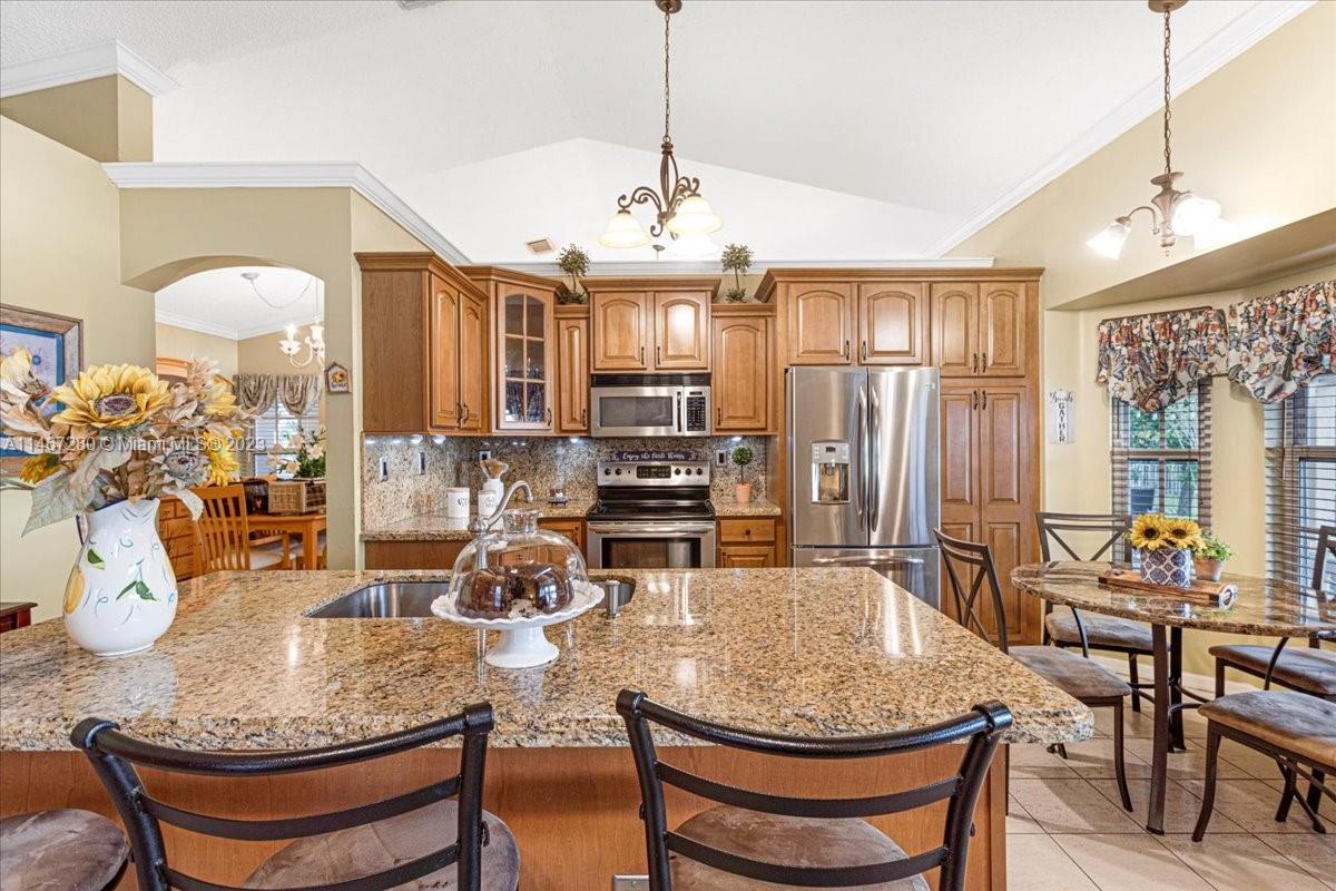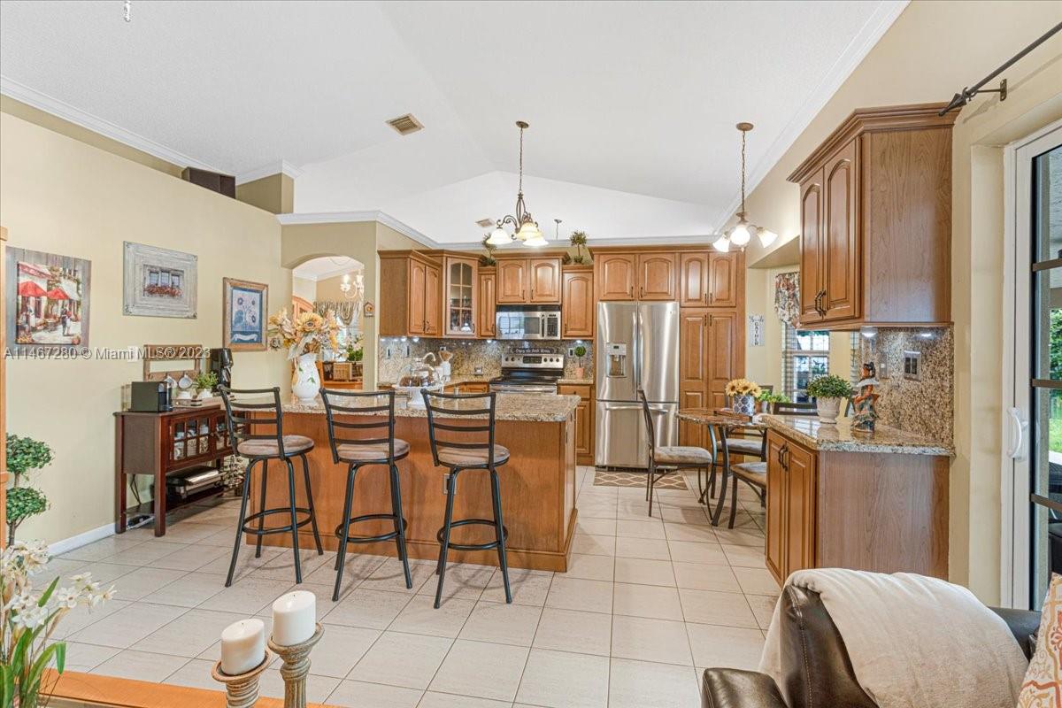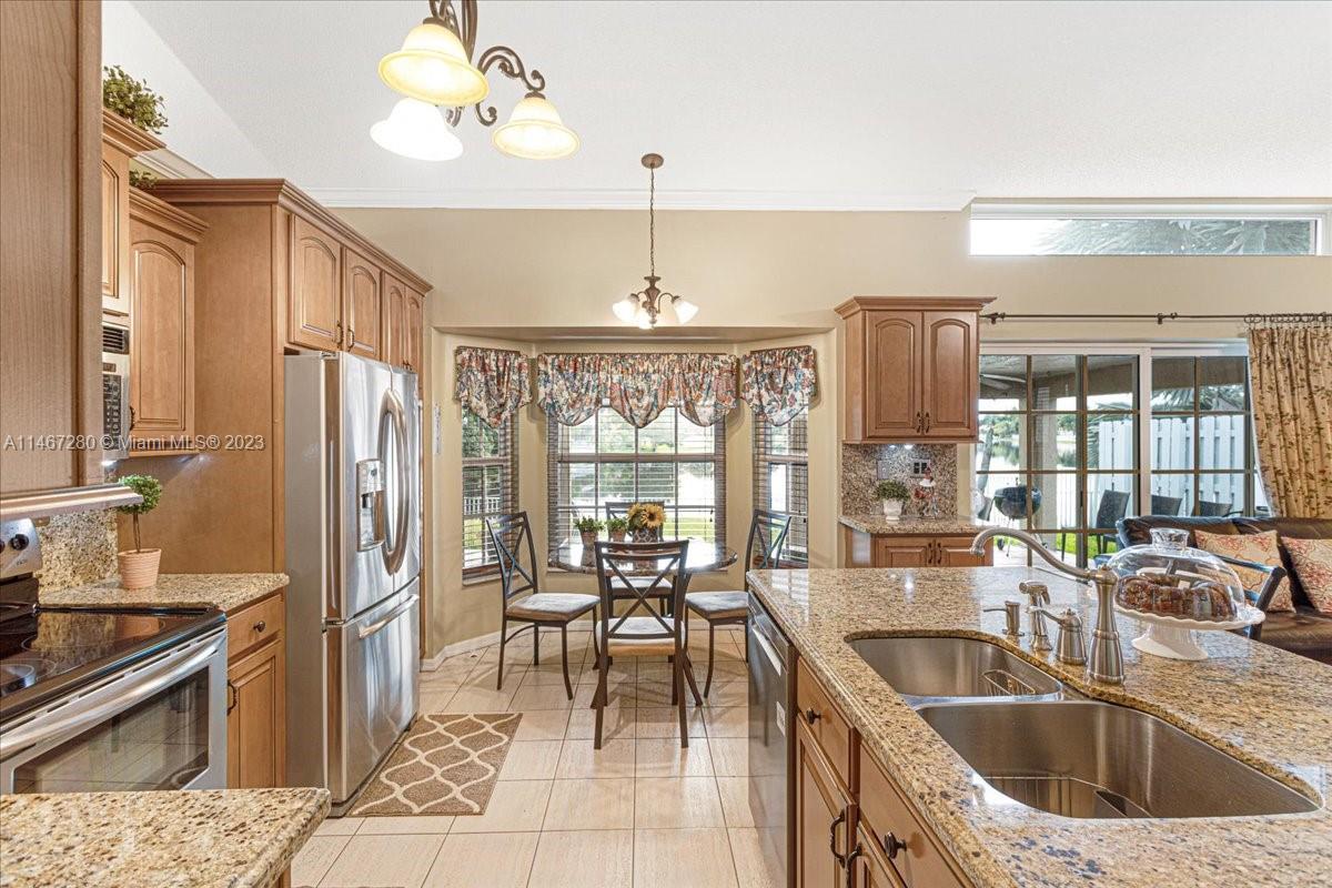 Florida Luxurious Life Style at its Best! Entertainment paradise located in the exclusive community of Flamingo Estates. This home sits on a lake front lot on a tropical paradise w/ breathtaking sunsets views from every living area. Split floor plan w/ 4 bedrooms 2 full bath & 2 car garage. Large open kitchen w/ island, wood cabinets & granite counters w/ stainless steel appliances. Master Bedroom retreat w/ large sliding class doors that overlooks the Lake. Master Bathroom w/ a shower & a roman tub. A large custom made covered terrace 54' 10" x 14' 7" that is just perfect for cooking & entertaining large parties.Roof is just 5yrs old, Impact windows & doors,A/C & Water Heater 2021. Low Association, just $66 per month. Come see & experience this Florida Tropical Paradise!