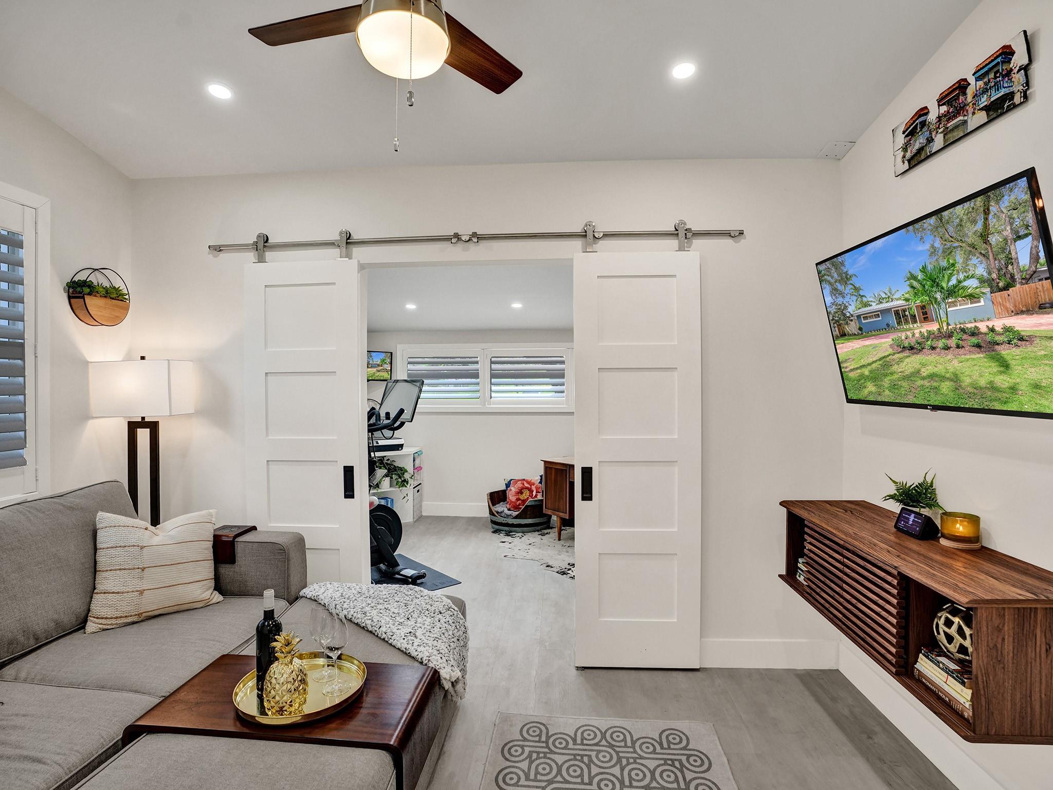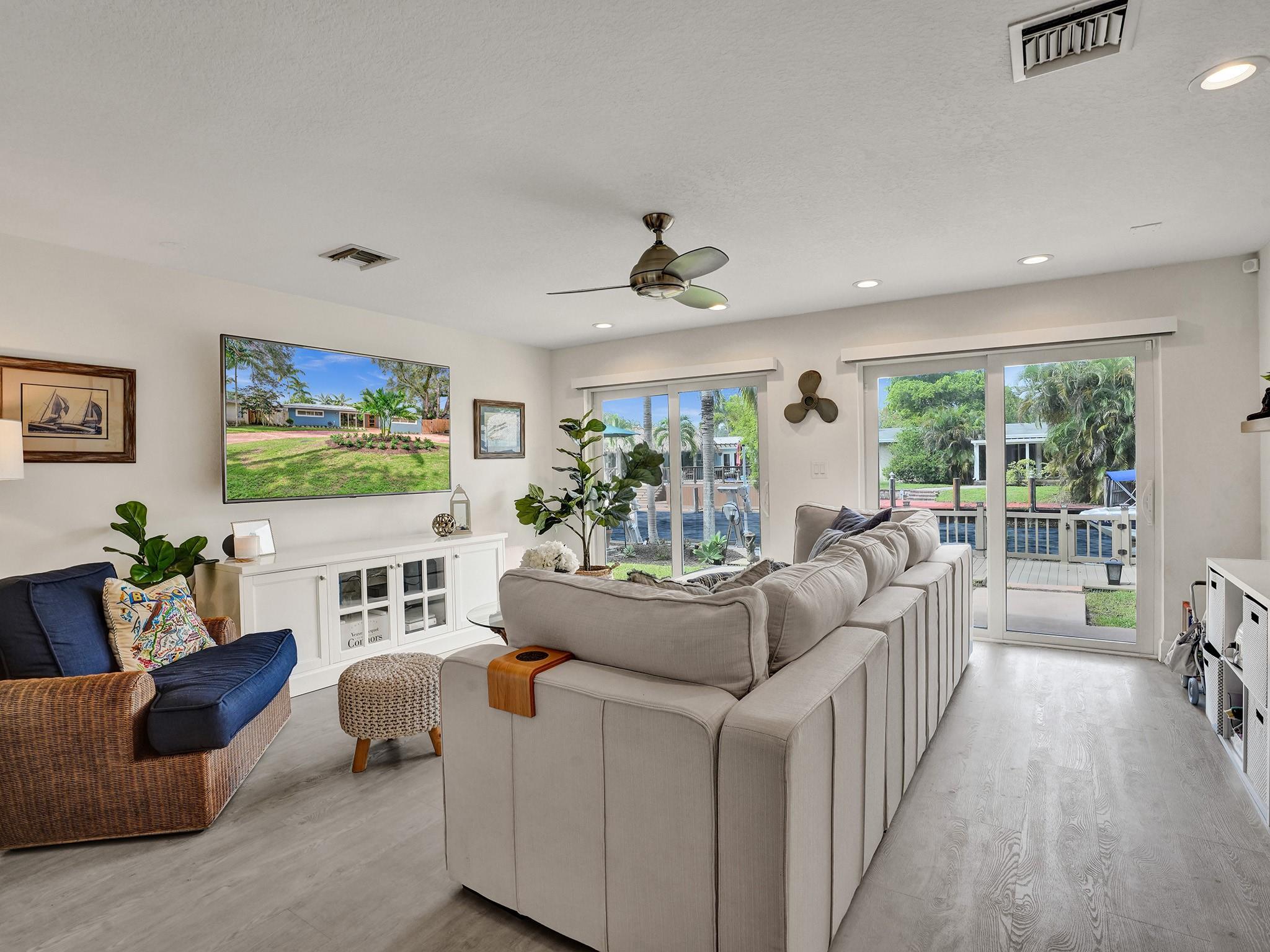 Rare opportunity to live directly on the park in Shady Banks in this Spacious 4 bedroom 4 bath home w. 46’ feet of deep water, ocean access and no fixed bridges. Metal roof 2021, impact windows and doors 2022, exterior lighting, 2 bathrooms updated, Plantation shutters/remote blinds, recessed lighting and more. Gourmet kitchen includes large bar and counter space great for entertaining. 4th bedroom bath is an In-law suite with private entrance! Patio doors lead to tranquil backyard with water views, boatlift and deck area perfect for entertaining. Shady Banks has a 5 Acre Park and community complex, walking trail, exercise path, basketball, baseball, volleyball, baseball and tennis courts. Quiet one way in - one way out neighborhood. Minutes to beach, downtown and airport! No HOA