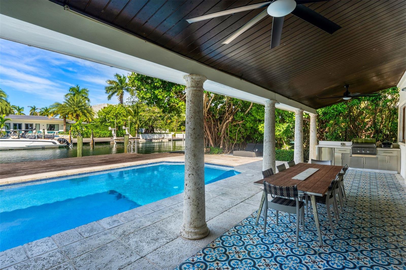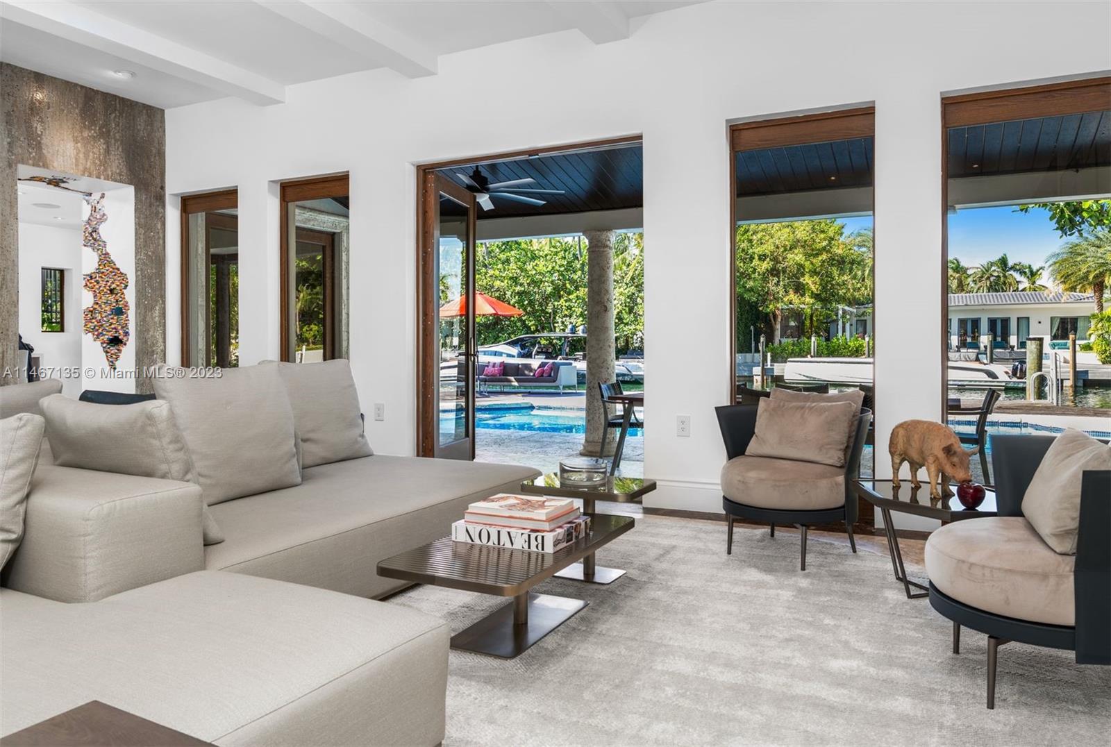 Enjoy coveted Sunset Island living in this beautiful Santa Barbara style waterfront residence on Sunset Island IV, the most walkable of the 4 islands. Experience your private sanctuary, where an expansive 208ft of pristine water frontage opens to reveal a dock and boat lift accompanied by a summer kitchen & 26ft long pool. The property showcases a gourmet kitchen with Sub-Zero appliances, wine cooler, private gym, sun-filled Master Suite with tranquil sitting areas. The 23,237 SF lot is also the perfect canvas to build the home of your dreams with unparalleled linear feet on water. Steps away from all that Sunset Harbour has to offer: sunrise yoga at Modo, breakfast at Pura Vida, coffee at Panther and fresh croissants from neighborhood favorite, True Loaf Bakery.
