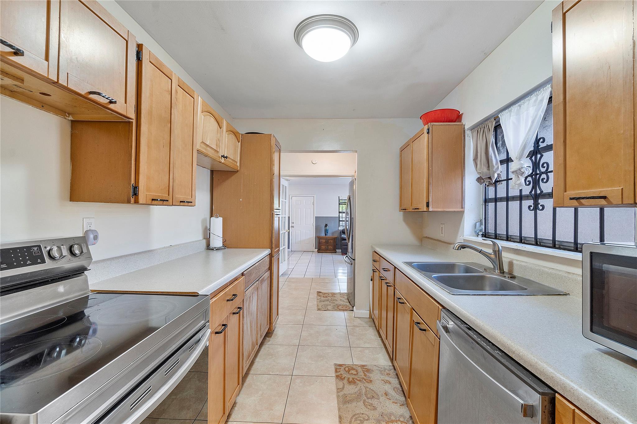 Seller wants QUICK CLOSING!One of the largest single family homes in convenient South Middle River area of Fort Lauderdale that offers 4 bedrooms 2 full baths with over 2000 sf on an interior fenced lot. Huge living room, dining room and a seperate great room with a 3 way split bedroom layout for privacy plus a large interior laundry room. No carpet! Smooth ceilings and 6 panel doors! Large covered patio and a sun deck plus a shed. Newer appliances including a French door SS refrigerator and an extra refrigerator. Primary bedroom is an ensuite with updated white cabinet and stone surface. Close to downtown, highways , beaches, Las Olas, Wilton Manors, restaurants and shopping. Great for investors for a rental or Airbnb. Plenty of room to entertain and large driveway. Tons of potential!