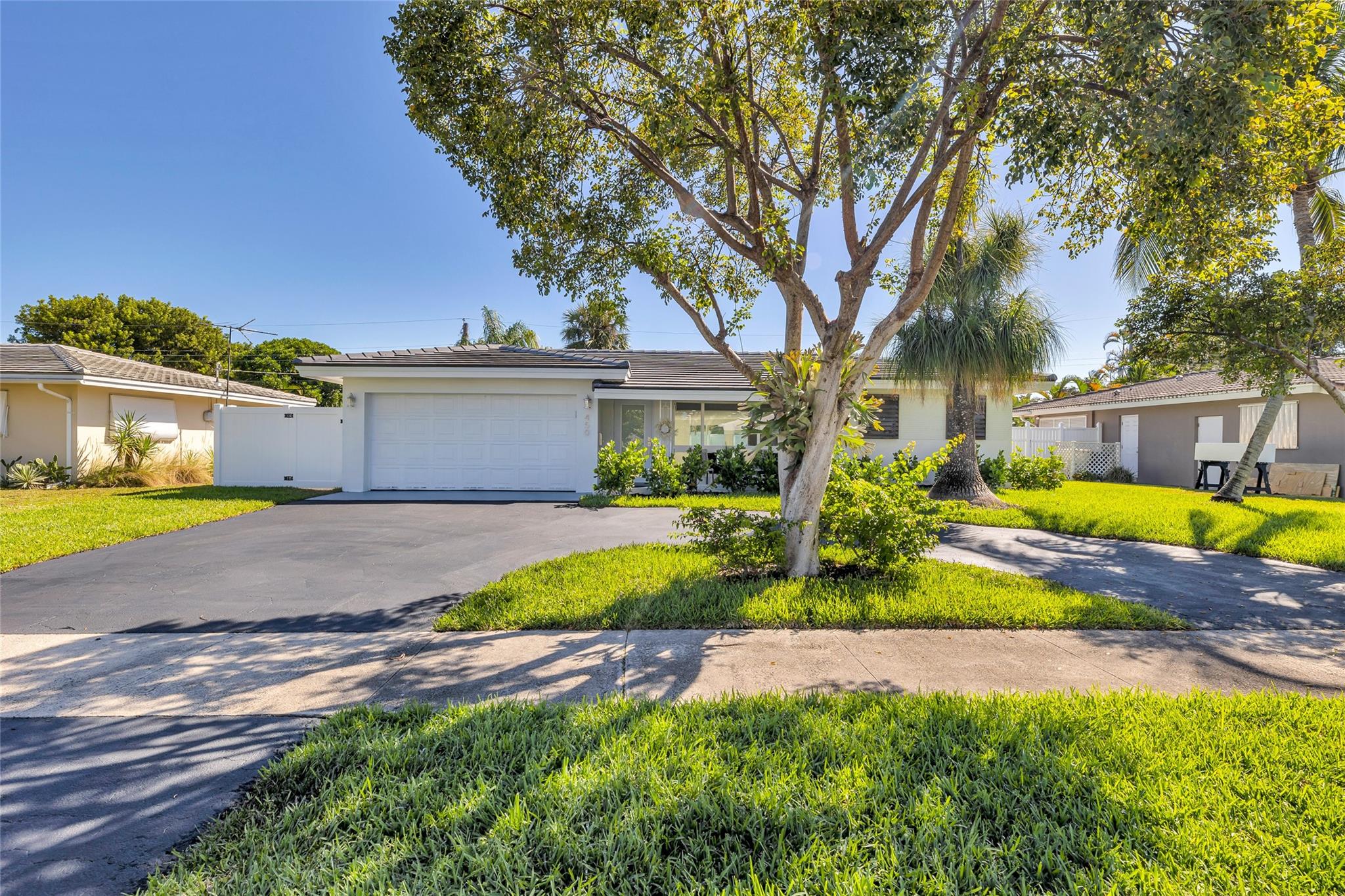 Welcome home! Here is your chance to live in the highly sought after Garden Isles neighborhood of East Pompano Beach. Surrounded by million dollar waterfront homes, this beautiful and spacious 2 bedroom 2 bath home is a gem. Garden Isles is a well maintained and incredibly safe golf cart neighborhood with sidewalks, wonderful neighbors, and an active, yet relaxed energy, only minutes from the beach. This home boasts a brand new concrete tile roof, new white PVC fence, 2 car garage, beautiful finishes throughout, new tile flooring, new appliances & a fresh coat of paint. The large fully fenced backyard has room for a pool. This one is a must see!