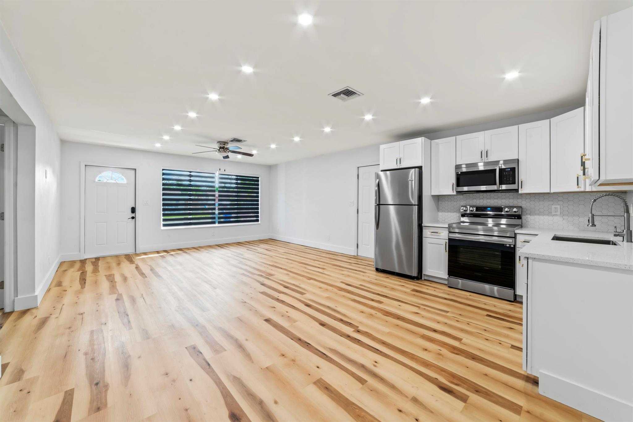 This Hollywood, FL gem boasts 3 bedrooms, 1 bath, and a host of modern updates. Enjoy the benefits of a new roof, ductwork, AC system, and impact windows. The interior features elegant quartz countertops and brand-new stainless steel appliances. Step outside to a screened patio and a spacious backyard, perfect for a future pool. Plus, a utility room for your washer and dryer needs. Don't miss this stylish and practical home!