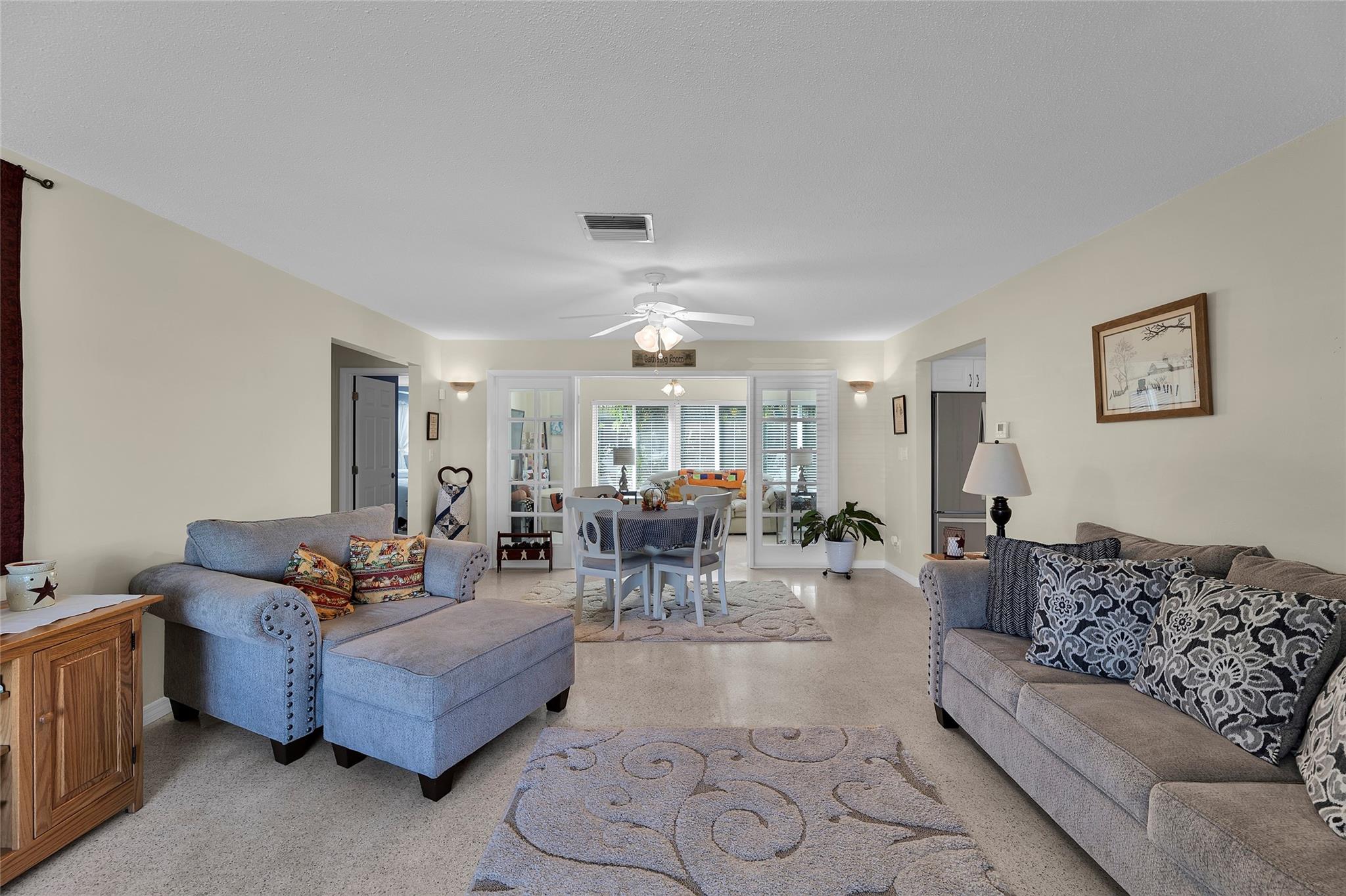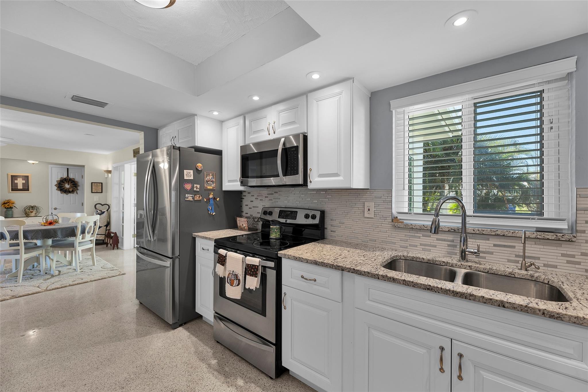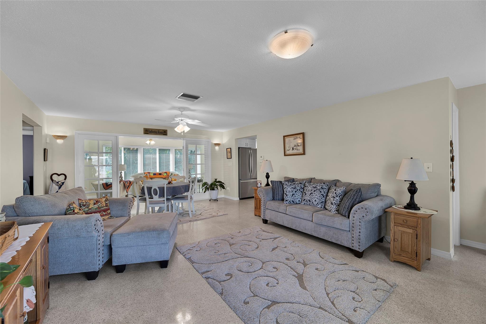 LOVELY and IMMACULATE 2/2 home with 1 car GARAGE in Leisureville. Play a round of GOLF in this 55+ community, then enjoy sunning by the POOL and monthly activities at the CLUBHOUSE! This FLOOR PLAN is the LARGEST of all the models with 1457 SQ FT! NEW IMPACT WINDOWS and DOORS. Newly REMODELED KITCHEN with white cabinets, granite countertops and stainless appliances. Updated baths. Multi-use FAMILY ROOM can be a den or sunroom. Beautiful, maintenance free terrazzo floors complete this WONDERFUL HOME, priced BELOW MARKET VALUE!