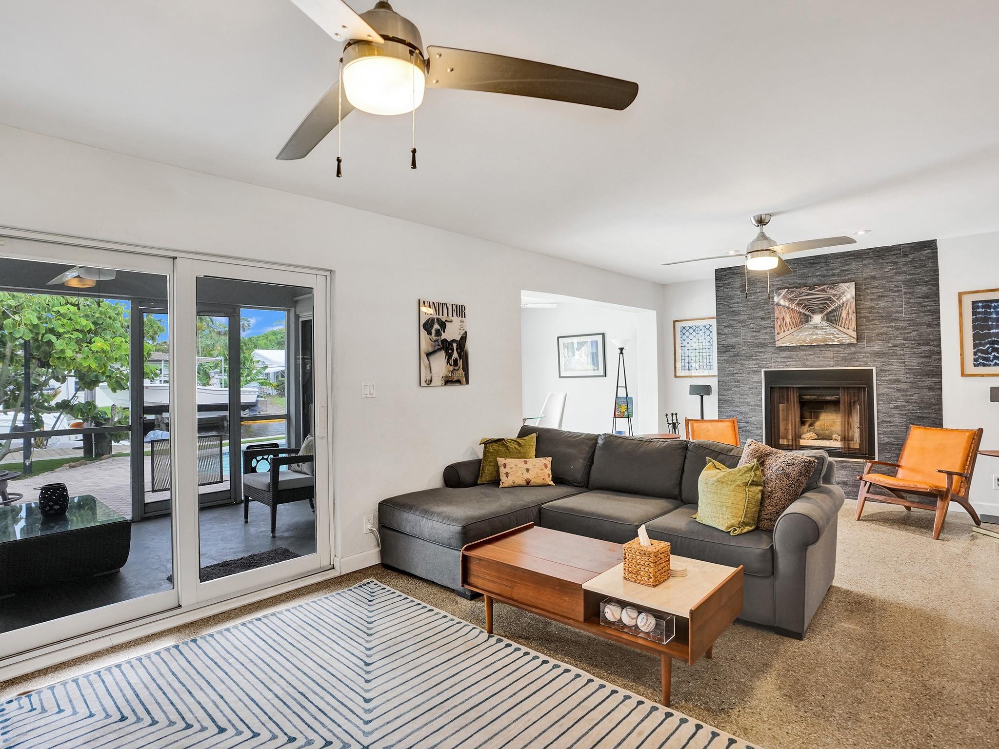 Slide open the electric gate and step inside this adorable renovated 65' waterfront home in Citrus Isles. Enjoy entertaining indoors and outdoors in this open floor plan home featuring renovated kitchen with quartzite Macaubas countertops, gas stove, stainless steel appliances, large island and spacious living area. The center of the home is a beautiful wood burning fireplace leading toward the expanded dining area and screened patio just before you reach the pool and dock (featuring new deck and sea wall cap). Entertain in the pool or by the fire pit under the stars, no fixed bridge access to the New River, Intracoastal and the ocean. The Citrus Isles is a small secluded neighborhood nestled just south of downtown Fort Lauderdale with easy access to downtown, I-95 and the airport.