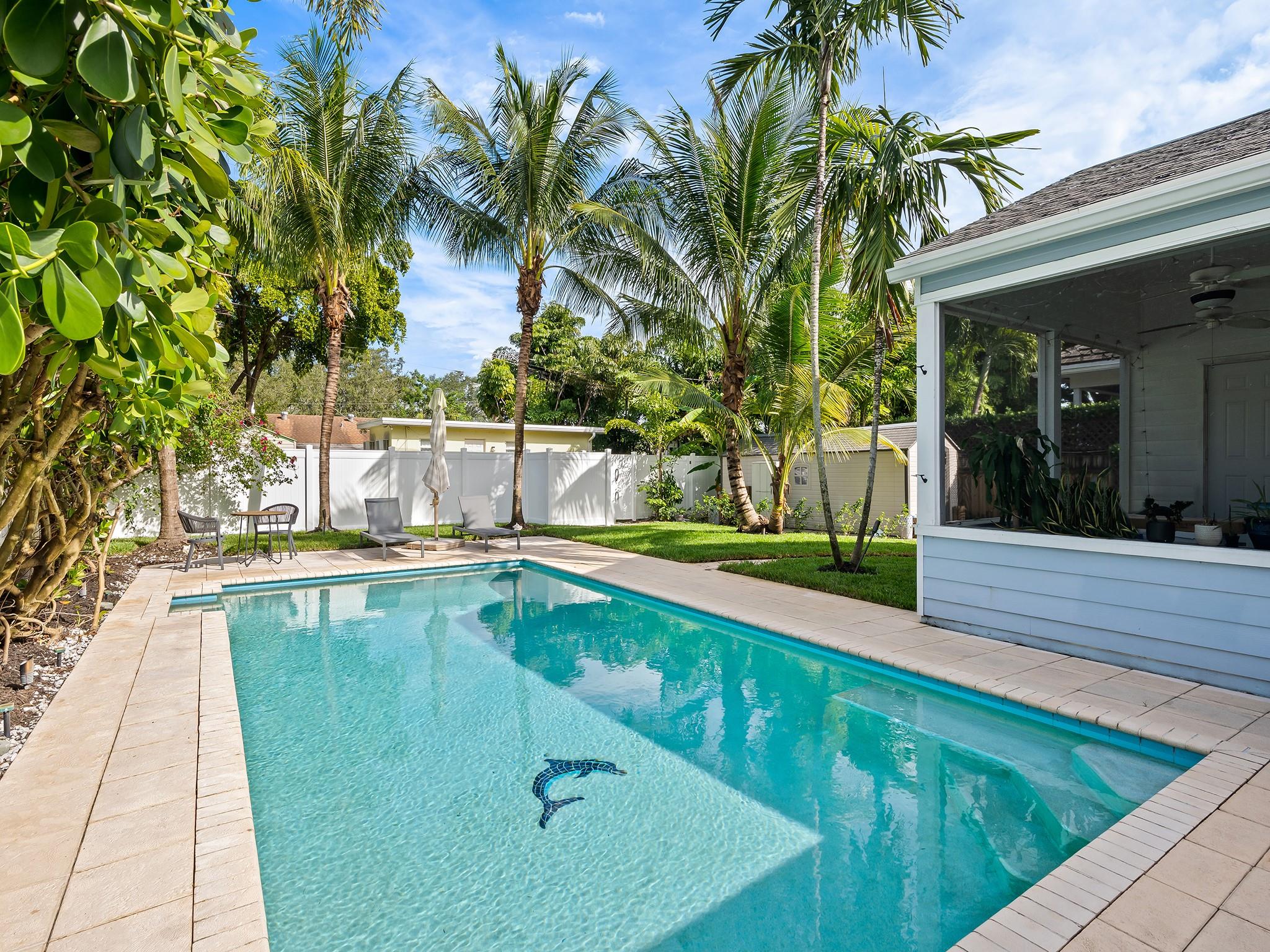 Classic Victoria Park home featuring 4 bedrooms, 3 bathrooms and an expansive backyard perfect for entertaining, sprawling on 7800 sqft of land with lush tropical landscaping, a gleaming pool and large screened porch. With modern finishes yet still retaining vintage charm, this home has over 1900 square feet of living space, an updated kitchen, and a sizeable primary suite with a beautifully updated primary bath. The fourth bedroom is currently configured as an office. Impact windows, plantation shutters, updated plumbing and electrical, privacy fence, shed, exterior landscape lighting—this home has it all and so much more.