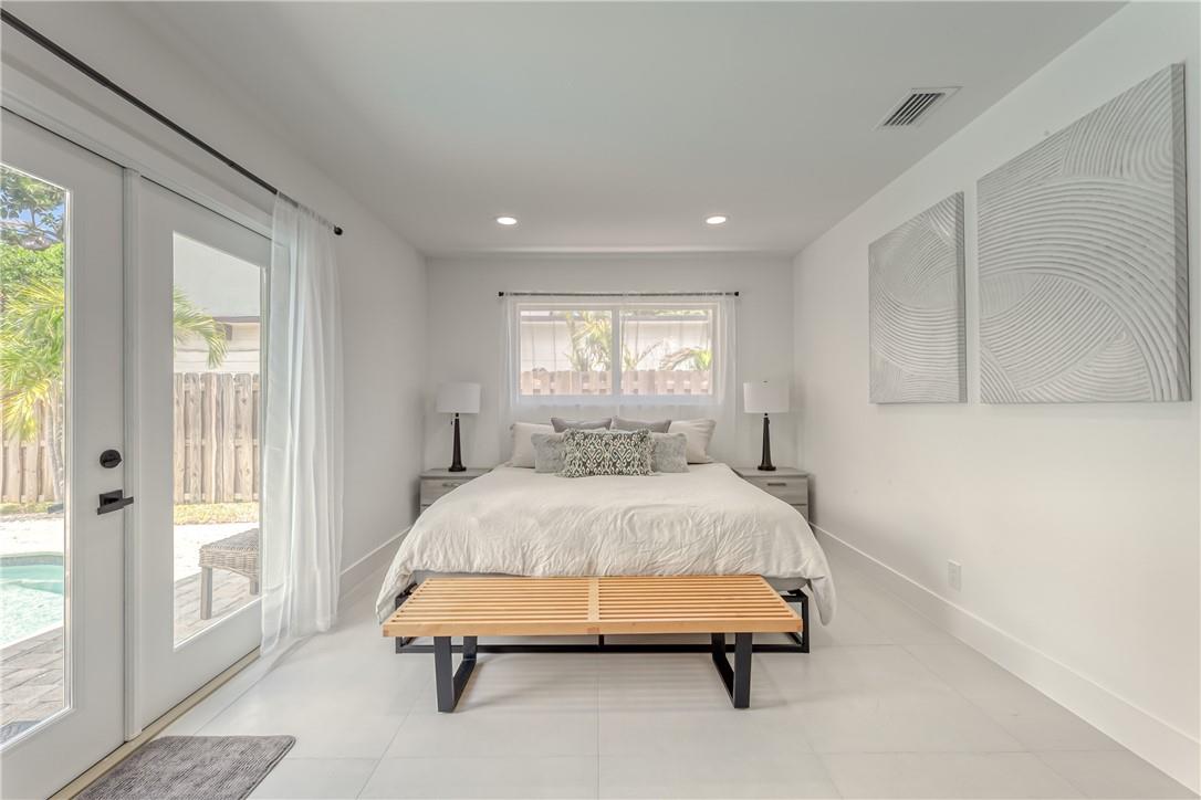 A rare, gorgeous and modern gem near the Kester Park neighborhood of Old Pompano. Beautifully updated throughout with high end finishes, large profile La Fenice ICON Italian tile flooring, huge custom walk-in master closet, new appliances, Impact windows and doors, complete with a stunning backyard oasis with pool and al fresco dining area. The master bedroom boasts impact french doors leading right out to your private pool area as well as a massive ensuite bathroom with oversized shower and Speakman shower fixtures. Walk, bike or golf cart to the Pompano Community Park, Kester Park, Pompano Beach Golf Course, Canine Corner Dog Park, the Pompano Beach Amphitheater, the Pompano Beach Pier or any of the amazing restaurants or shops along the up & coming E Atlantic Blvd. A true gem.