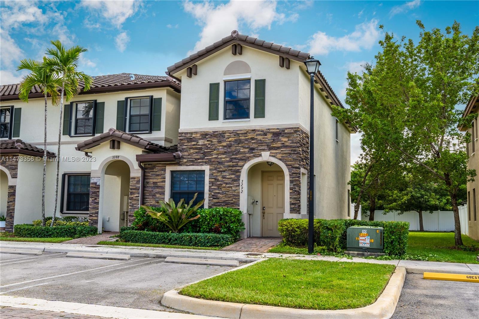 Discover modern living in this 3-bed, 2.5 bath corner townhouse in Bonterra. Enjoy all the amenities in this pristine community. Newer construction boasts updated stainless steel appliances, glass tile mosaic backsplash, and a newer Trane A/C. Enjoy the spacious, high-ceilinged interior with waterproof luxury vinyl flooring on the second floor. Outside, a vast green area beckons for kids to play. Your dream home awaits.