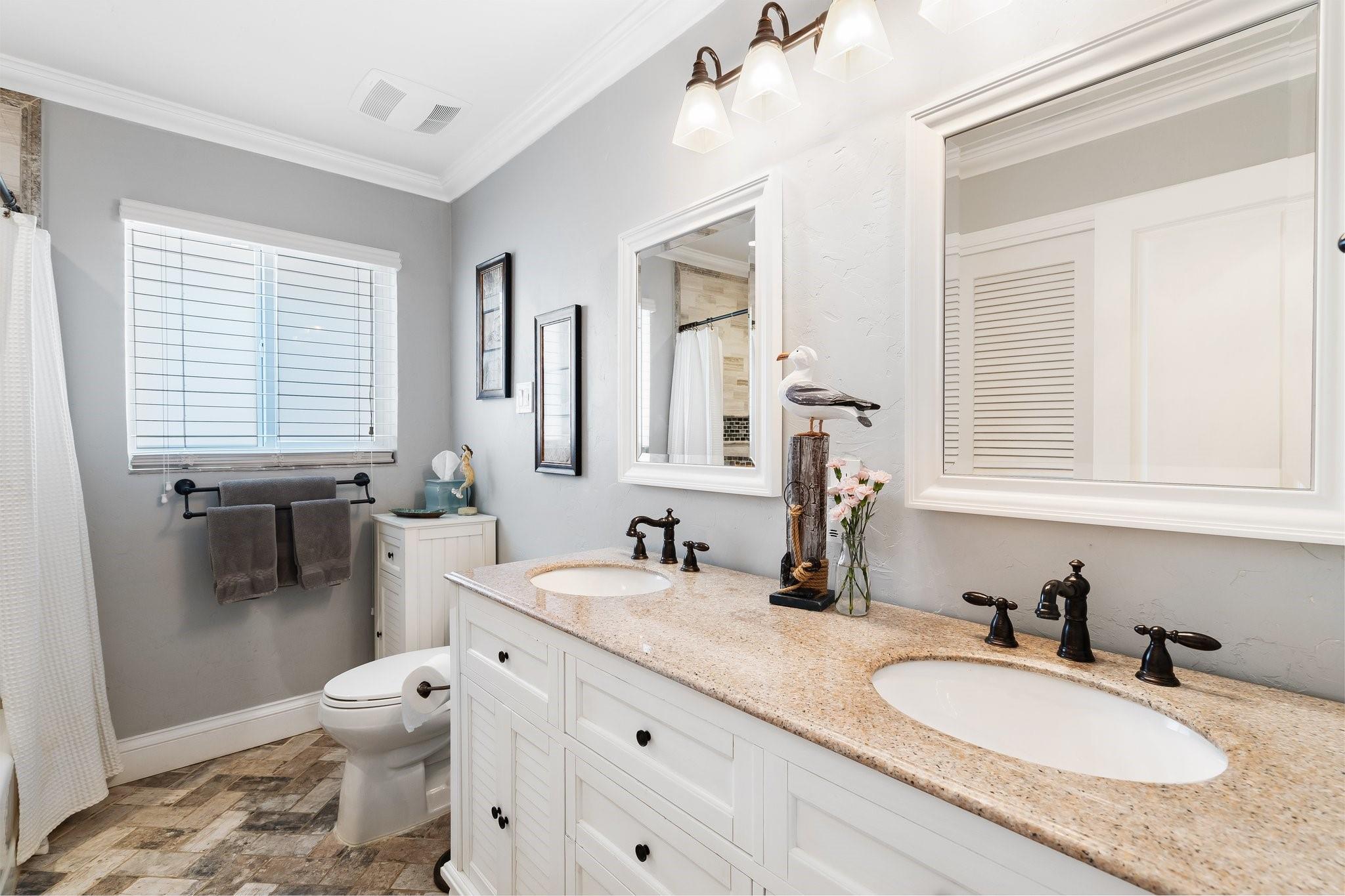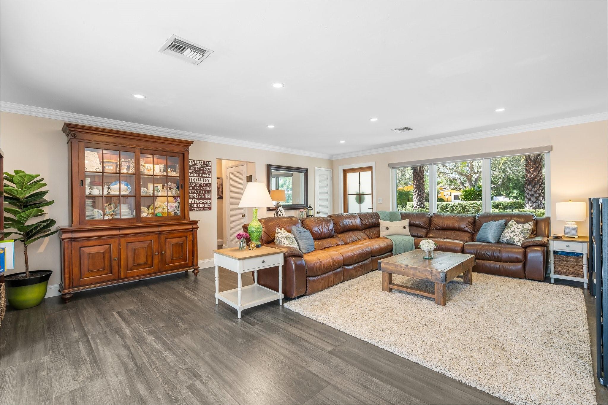Nestled on a peaceful street in the coveted Knoll Ridge, find a 3-bedroom, 2-bath residence, meticulously renovated from top to bottom. Its open concept seamlessly integrates a split bedroom layout, hurricane-impact windows and doors, and a modern chef's kitchen with a gas range. Expansive living areas are illuminated by abundant natural light from the large windows. This beautifully landscaped residence warmly welcomes you with elegant Sylvester palms at the front, and a majestic oak tree in the back. Beautiful travertine pavers enhance the property's allure, wrapping gracefully from front to side and throughout the backyard. Additional features include: a tankless gas water heater, newer AC, 2 car garage & large storage shed. Near the top private schools, beach, airport and downtown.