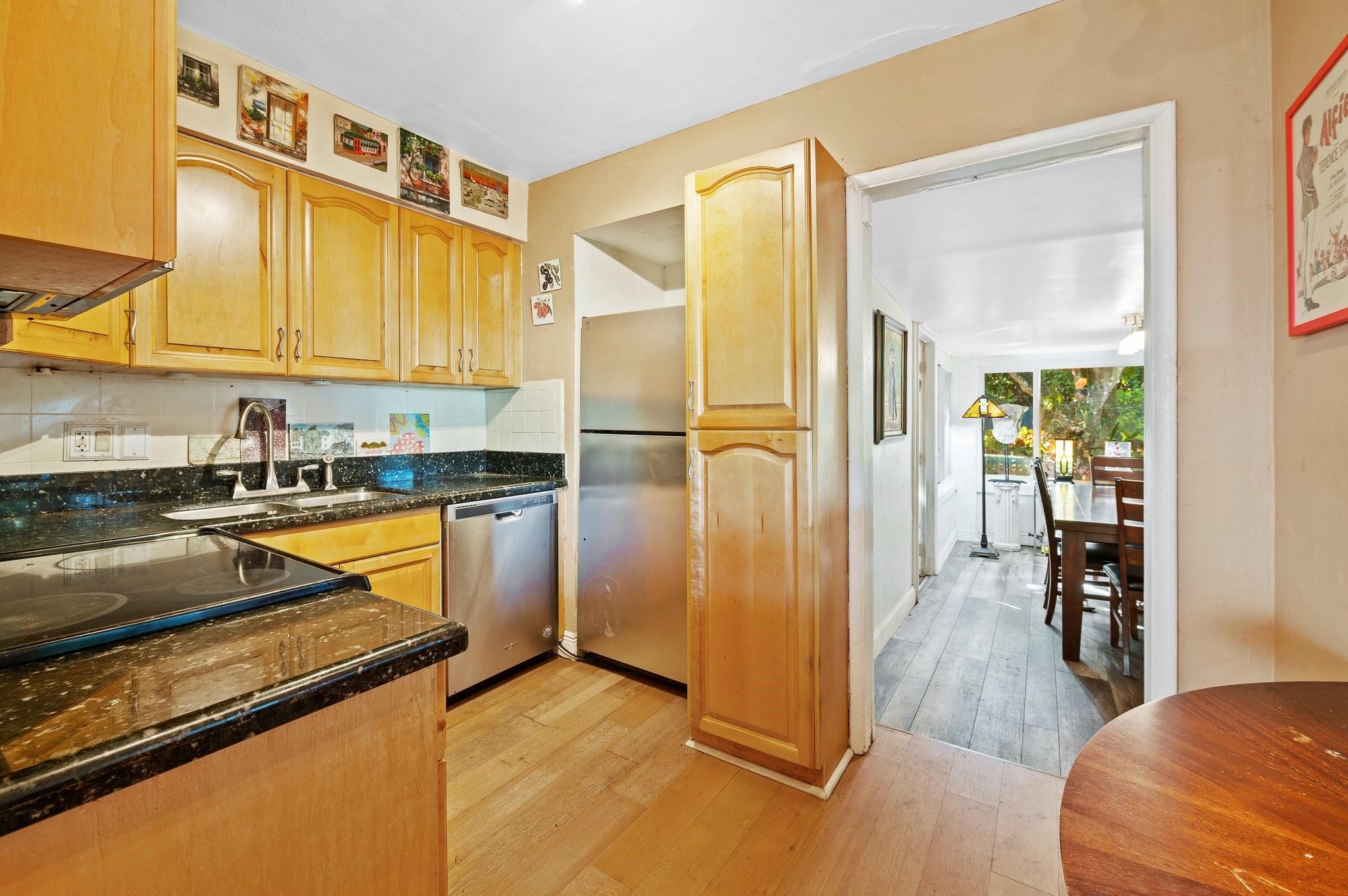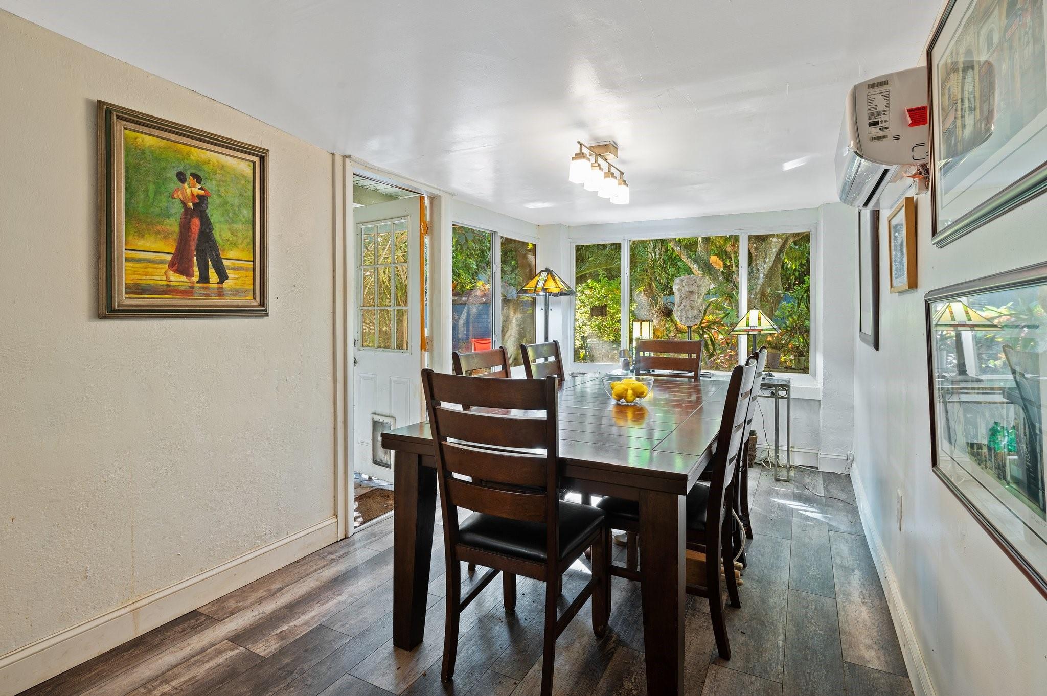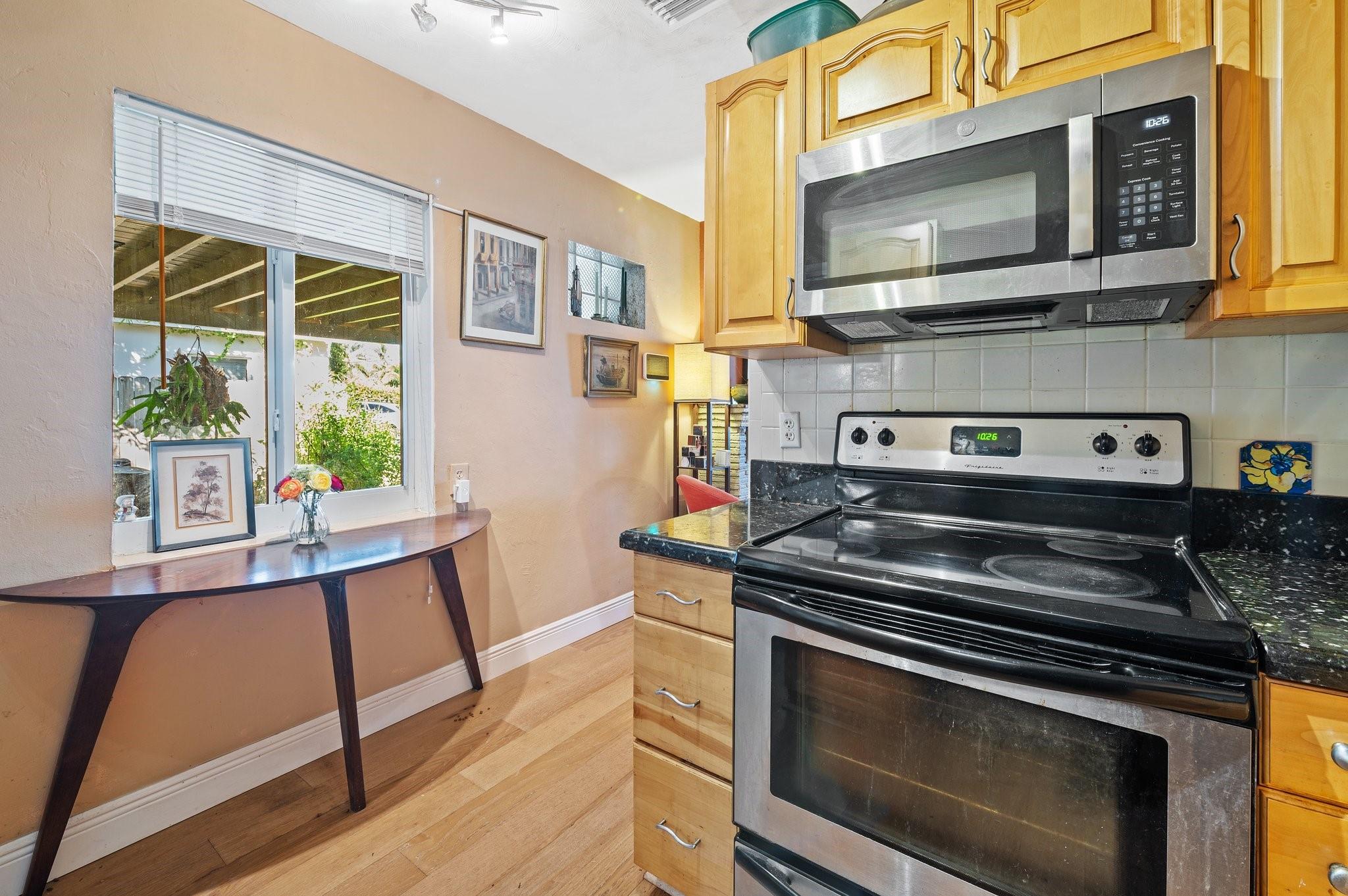 Experience the charm of this 2-bed, 1-bath treasure in Middle River Terrace. An updated kitchen with granite countertops and stainless-steel appliances awaits you. A separate dining room and den provides additional living space. Enjoy the natural light from impact windows, cozy up by the fireplace, and relish the warmth of wood floors throughout. The spacious backyard, a beautifully landscaped haven with a grilling area, invites outdoor delight for entertaining or for you and your pets. This single family home with no HOA allows the freedom to live your way. With a new roof, updated bathroom, water heater, washer/dryer, and an unbeatable location just half a mile from Wilton Drive, this home offers a perfect blend of comfort and convenience.