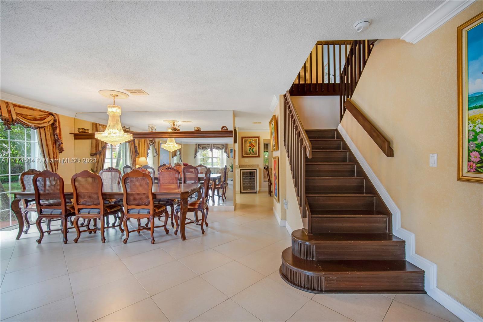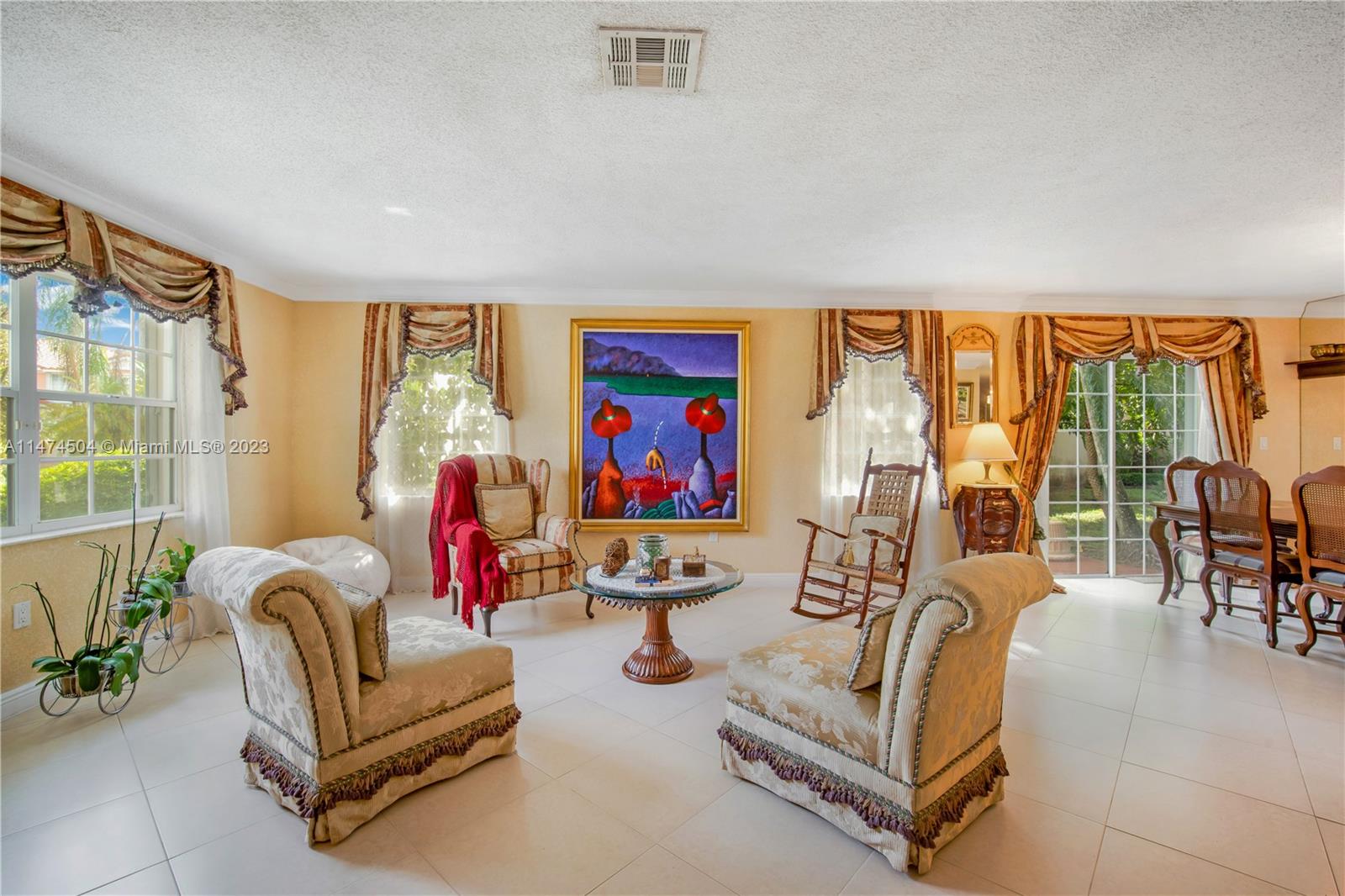 Welcome to the pinnacle of luxury living in the prestigious Doral Dunes! This 4-bedroom, 5-bathroom gem boasts white tile floors downstairs, parquet floors upstairs, a remodeled kitchen, and a gorgeous landscaping-covered terrace that is truly the heart of this home, perfect for entertainment. Step outside to the patio with room for a pool, offering possibilities for leisure and relaxation amidst stunning landscaping. The lush greenery creates an oasis of natural beauty, for your outdoor gatherings and personal sanctuary. Your dream home awaits in this beautiful residence, designed to elevate your quality of life. Don't miss this opportunity to embrace the Doral experience! It's an invitation to a life of comfort, style, and convenience in one of Doral's most sought-after neighborhoods.