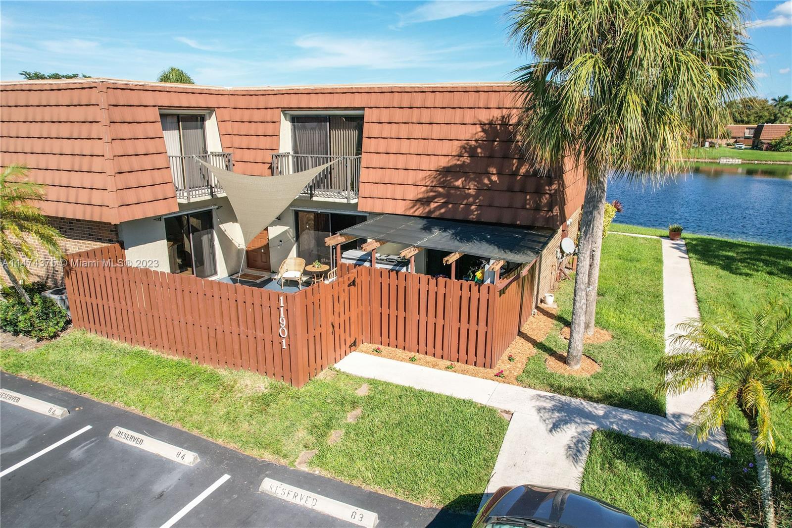 Townhouse in cul de sac in sought after The Village at Lake Pine II, Davie. Beautiful 3 bedroom / 2.5 bathroom, two-story home, including one bedroom downstairs. Tastefully updated with new ceramic tile flooring, updated paint, stainless steel appliances (2018) , and newer A/C unit (approx. 2017). Large master suite with his and her closets, dual sinks and balcony. Fenced courtyard patio with additional awning space. Lakefront building with garden views. Well-maintained community tucked away down quiet street. Community includes pool, basketball courts, and tennis courts. Outstanding location close to shopping, major roadways, and top school zone. OPEN HOUSE - Saturday 10/28 - 11a-2p & Sunday 10/29 - 12p-3p